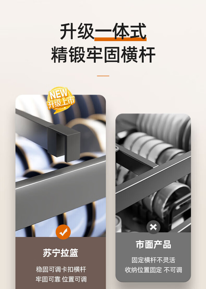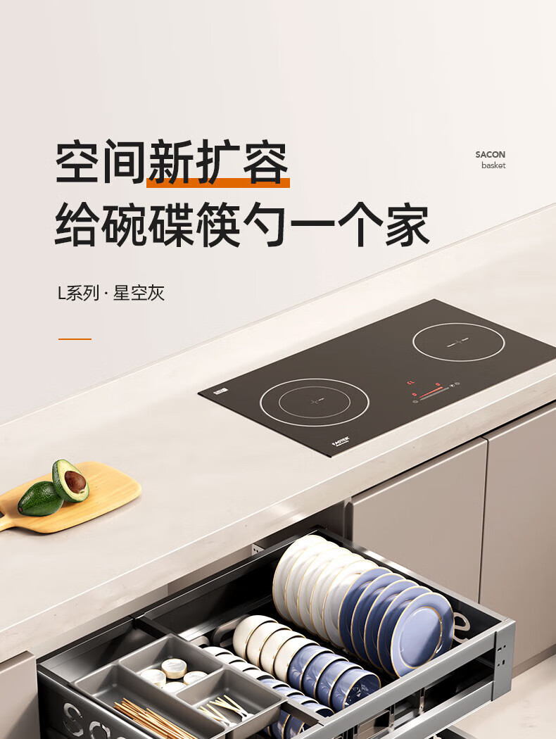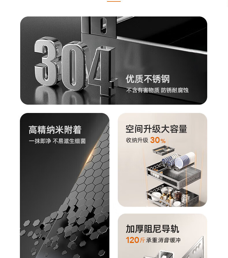Kezitu Suning pull basket kitchen cabinet 304 stainless steel double layer drawer type dish rack dish storage kitchen cabinet bowl 500 cabinet nano gun ash-double layer affordable model