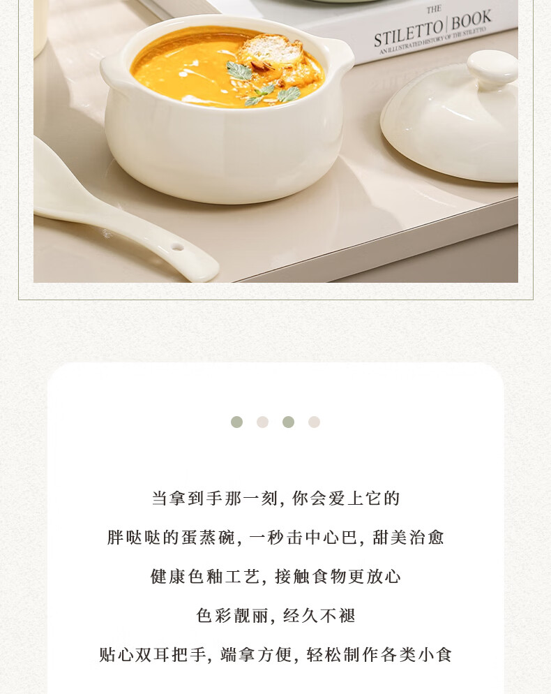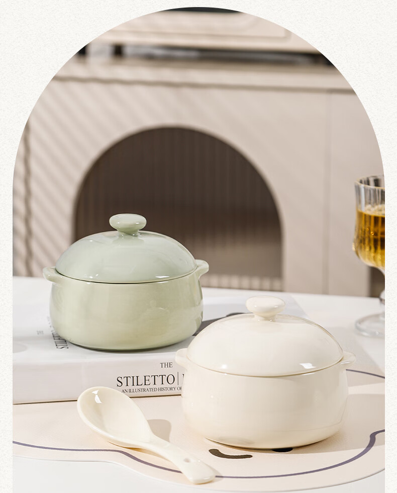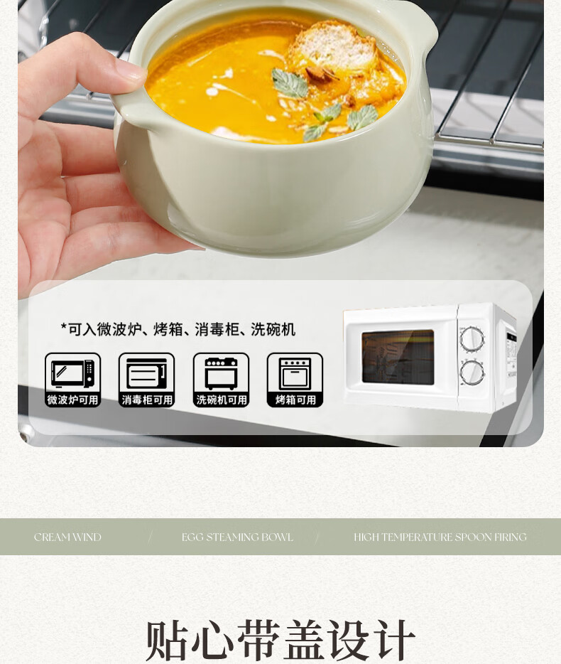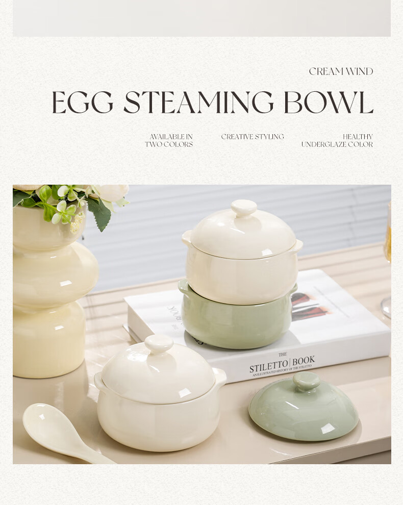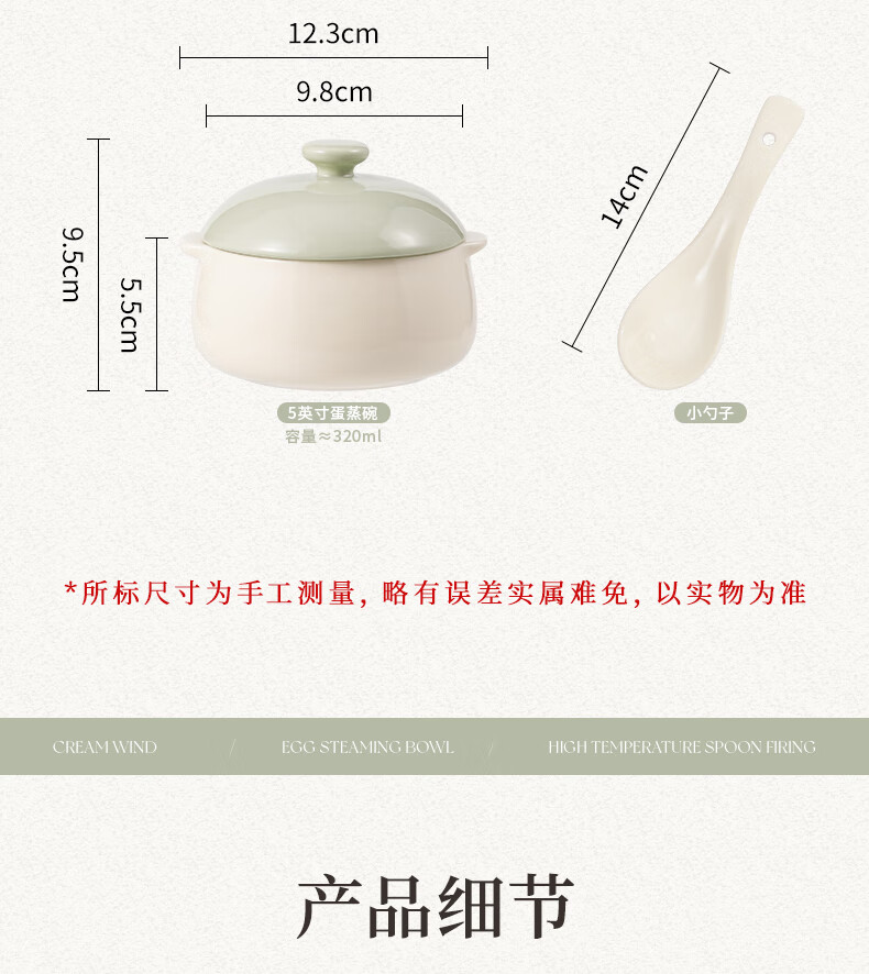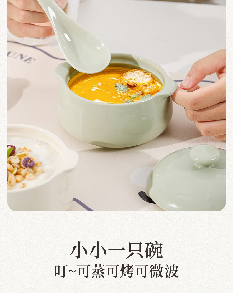 MZXM Japan imported quality double-eared ceramic household steamed egg custard with lid, special steaming bowl for baby and children's complementary food, milk green - 5-inch double-eared bowl with lid, smooth glaze and easy to clean