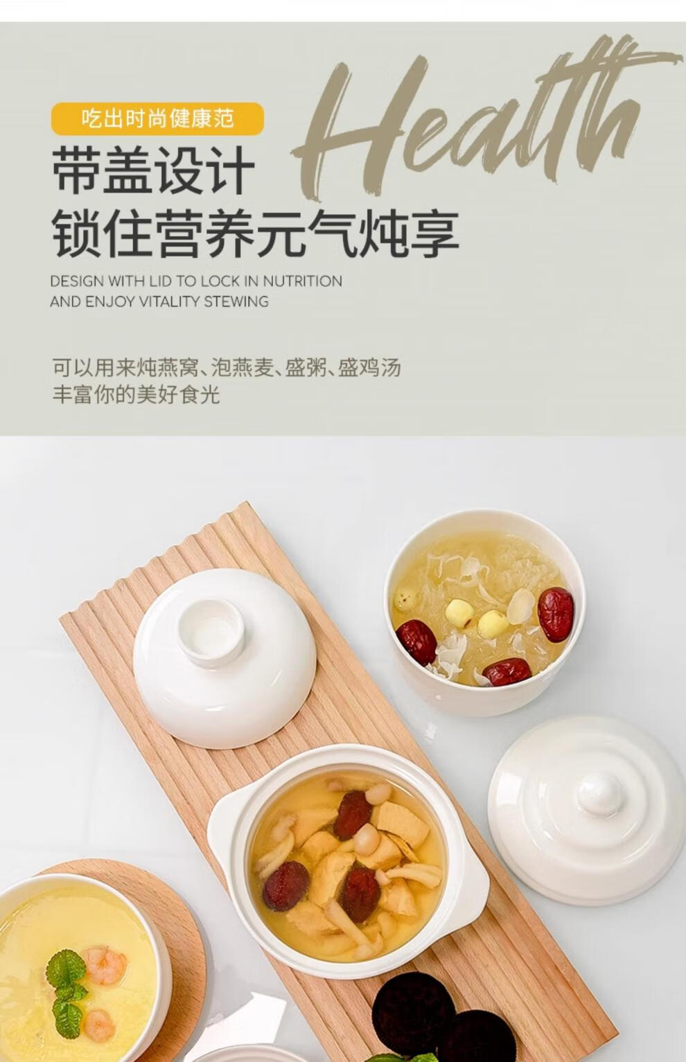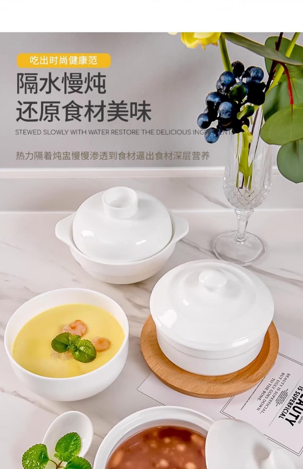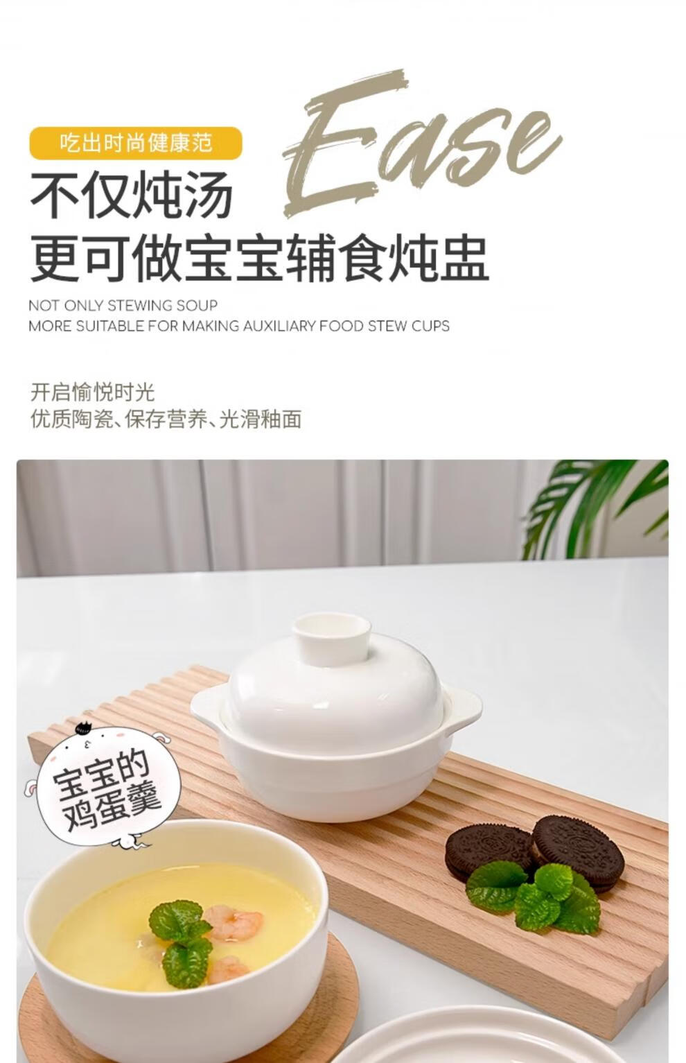 MZXM Japan imported quality small steamed egg bowl bird's nest water-proof stew for one person household baby sub-bowl baby steaming bowl pottery baby stew pot capacity 350 ml