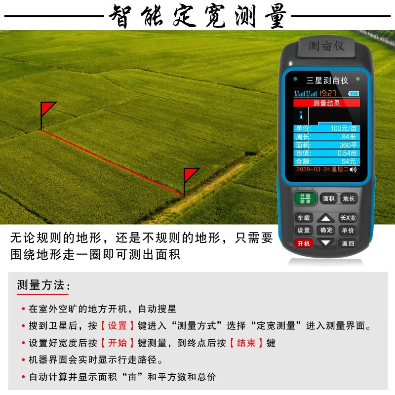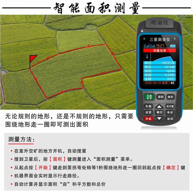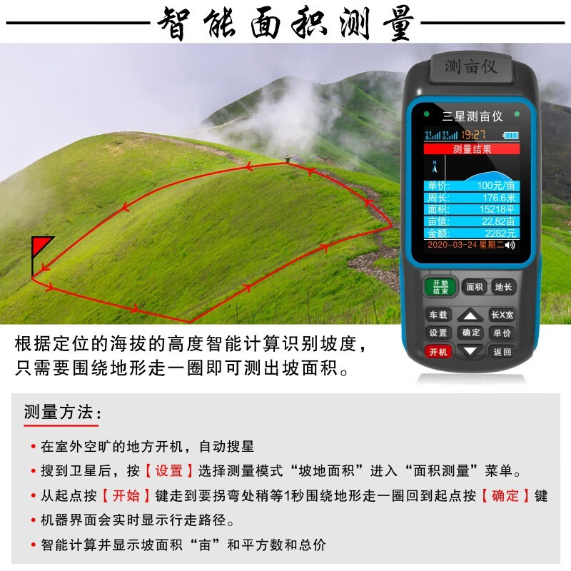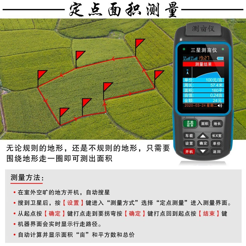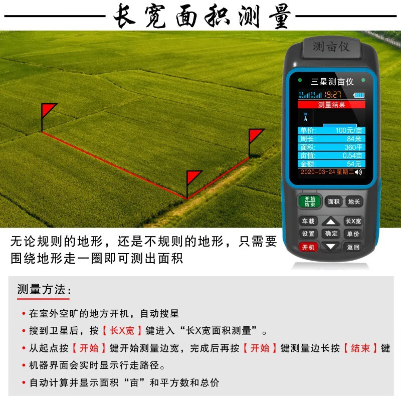 Acre measuring instrument high-precision handheld GPS land area measuring instrument harvester vehicle-mounted land measuring instrument JSD-B double star dual battery voice broadcast