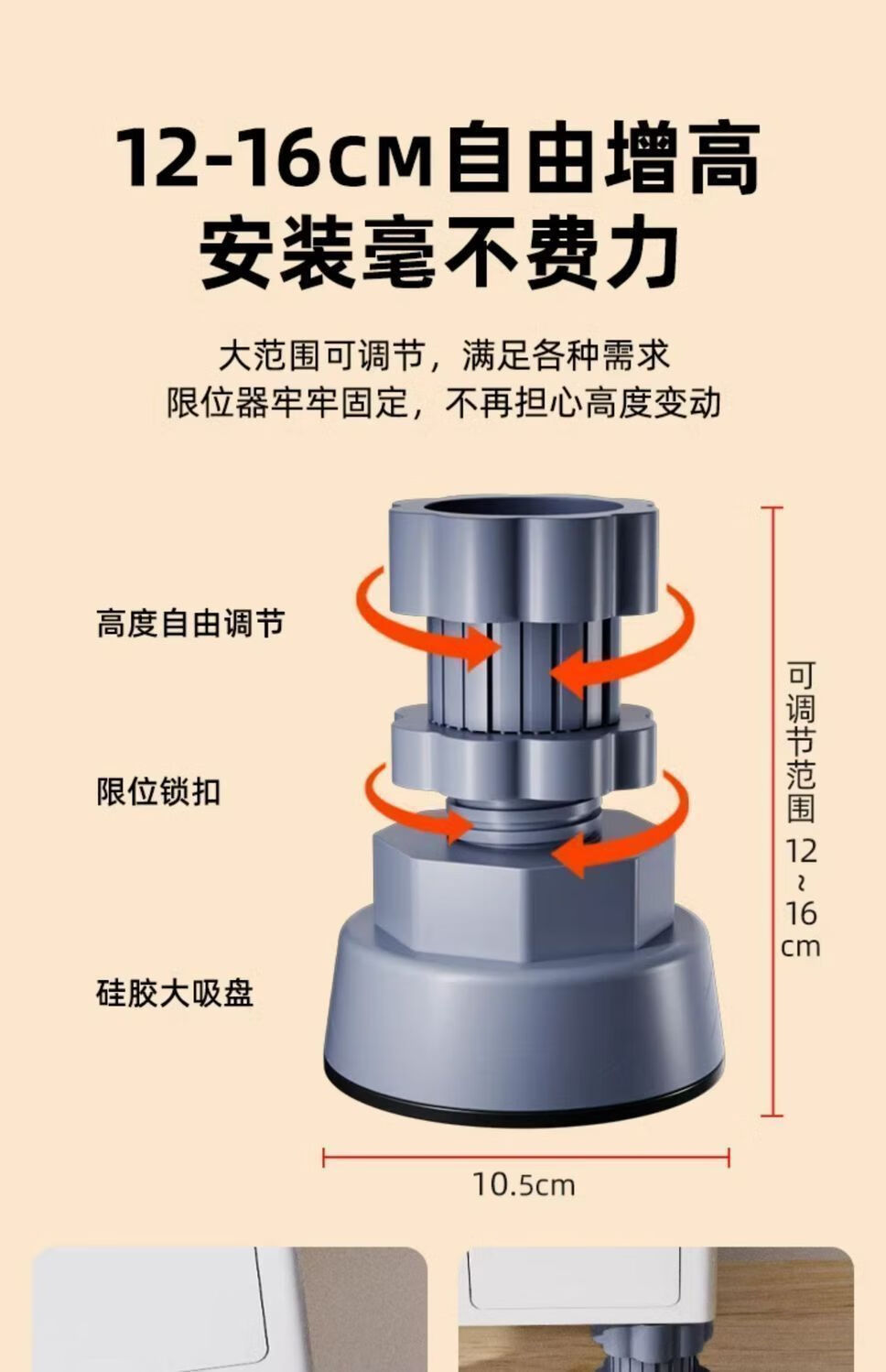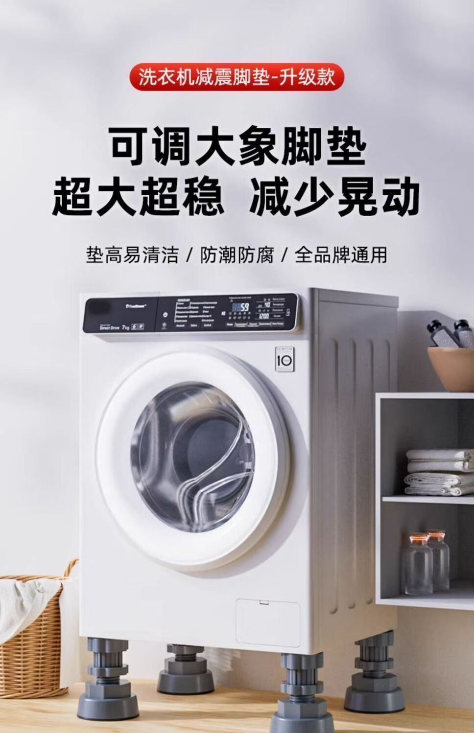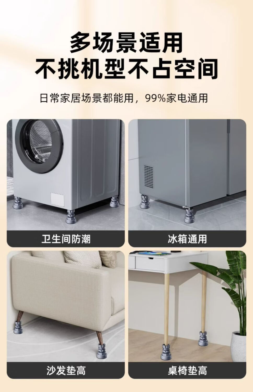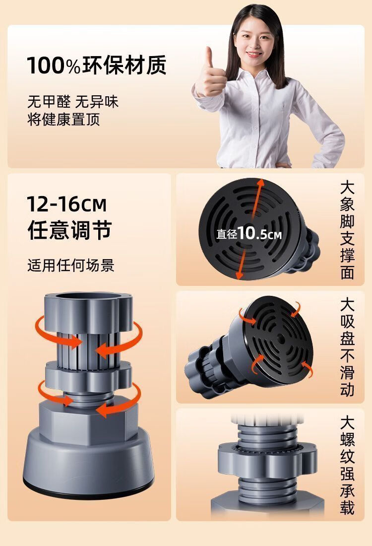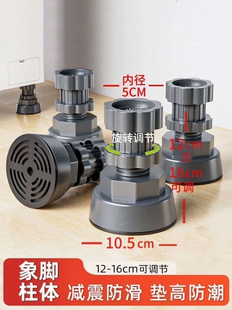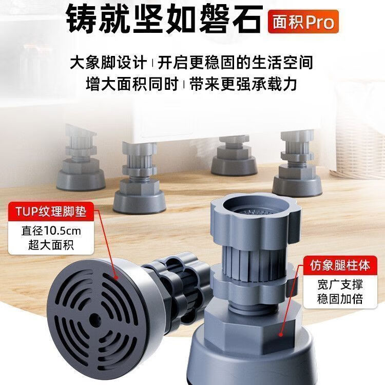 Universal foot pad for washing machine base, high anti-slip shock-absorbing pad, high moisture-proof refrigerator silent pulsator drum, 4 pack, freely adjustable