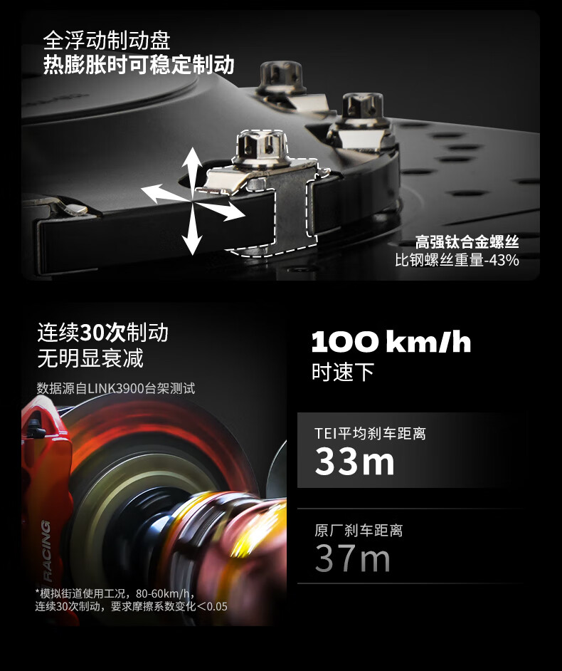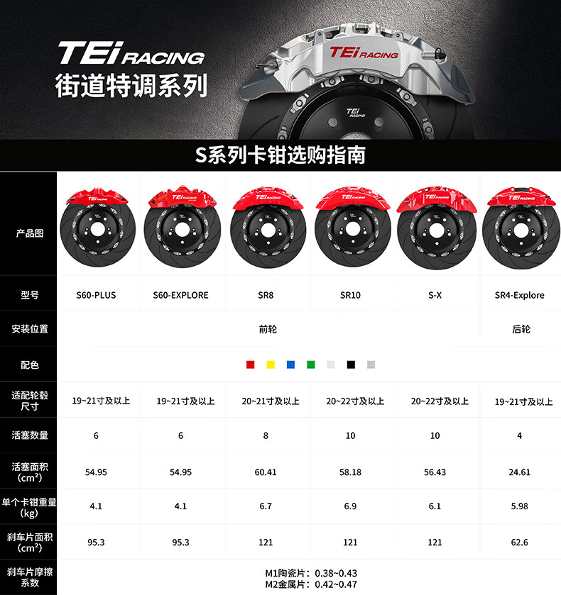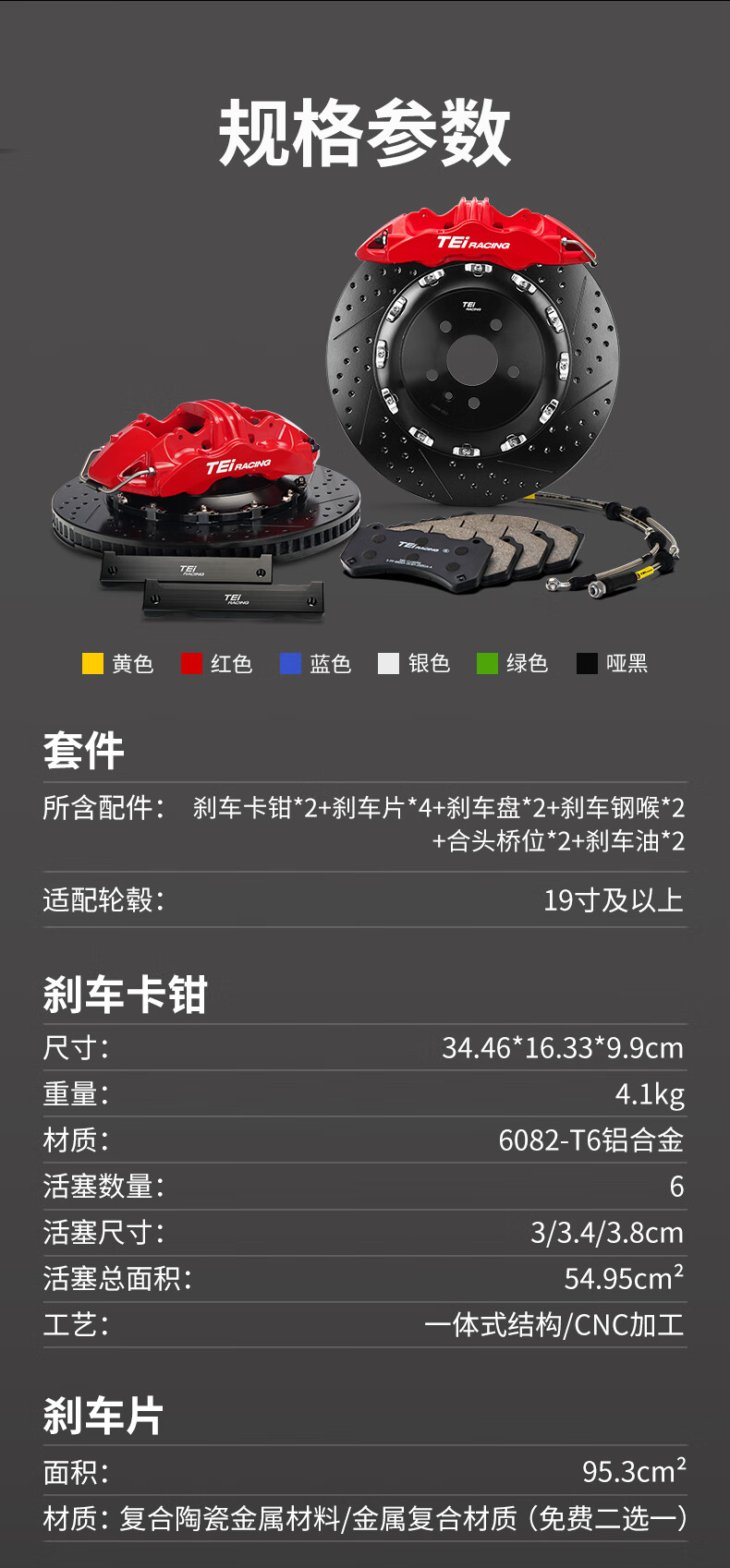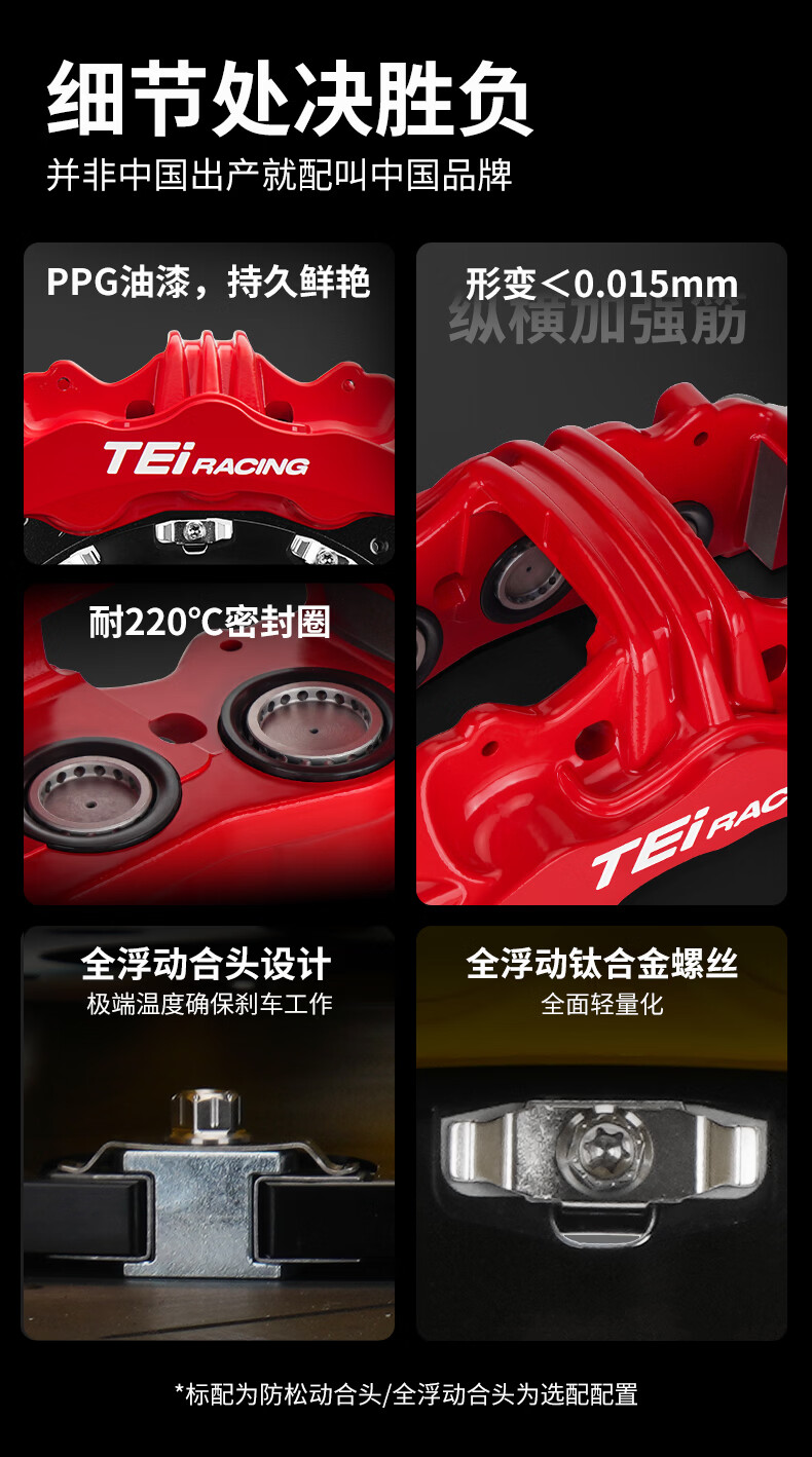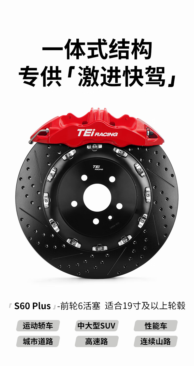 TEI brake caliper modified front wheel S60 Plus large six-piston one-piece structure street car brake upgrade kit S60 Plus with 400 discs (adapted to 20-inch wheels) and a pair of high-carbon alloy discs