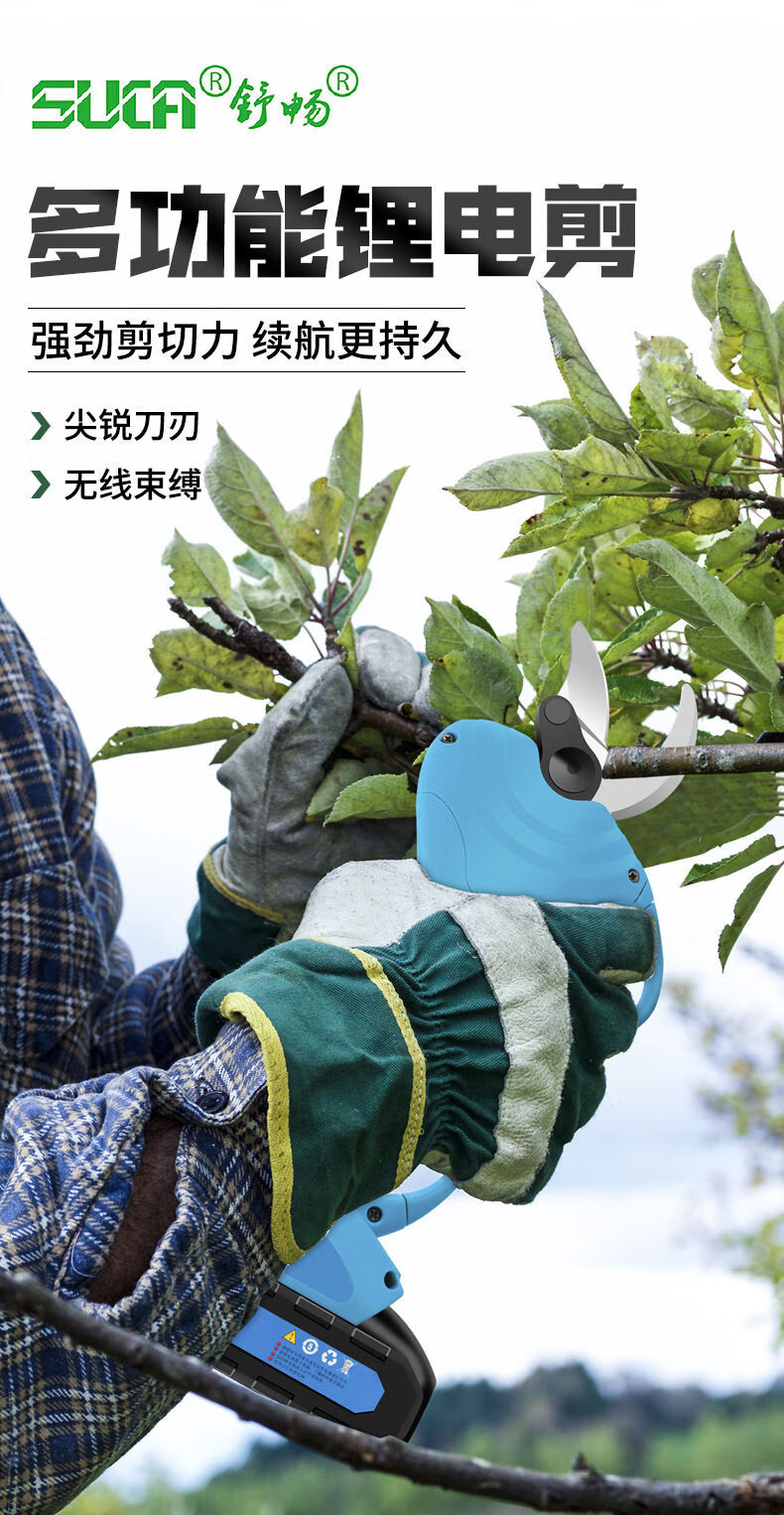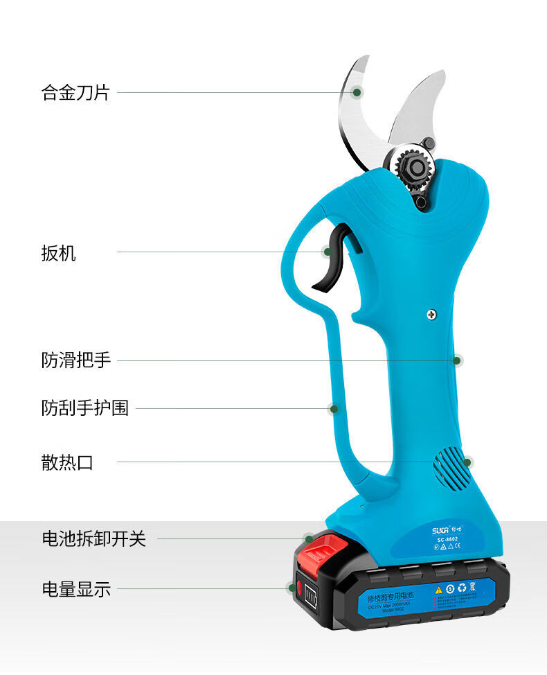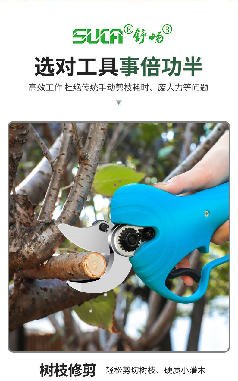 Shuchang large opening electric pruning shears rechargeable high-altitude garden electric shears fruit tree thick branch extension pole telescopic Shuchang 8601 pruning diameter 2.5 cm 2 electric one charge comes with blade + waist bag