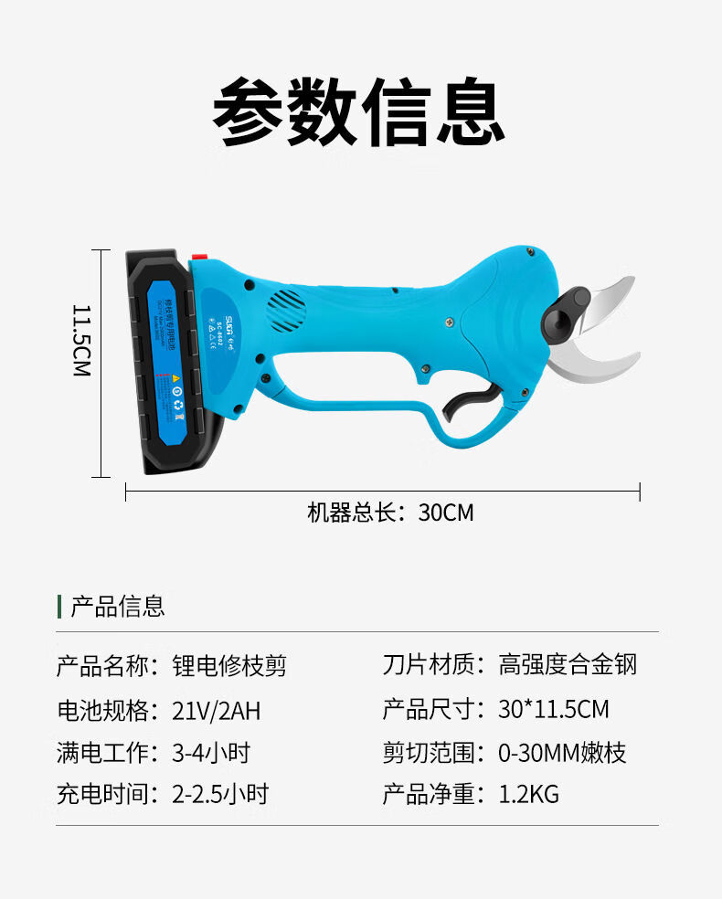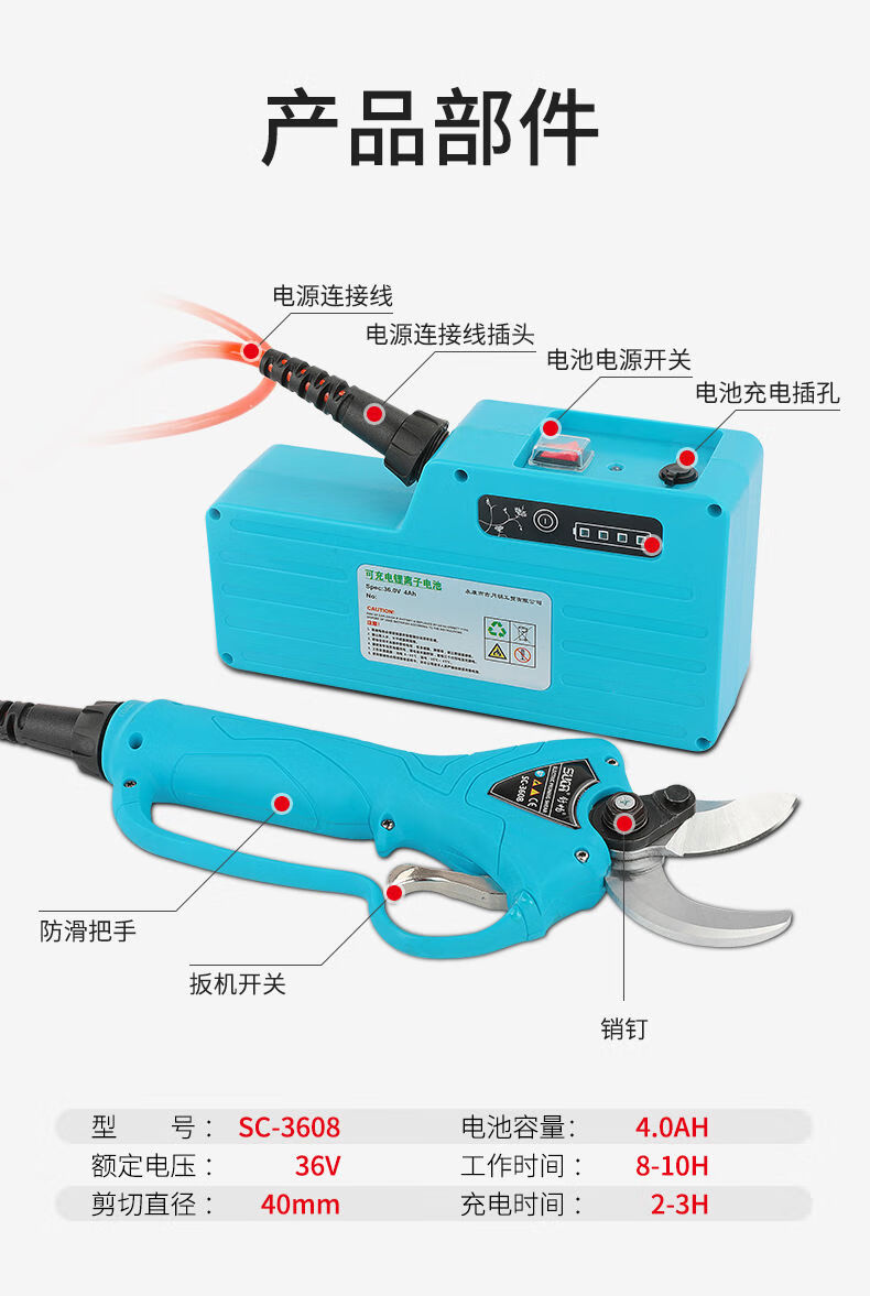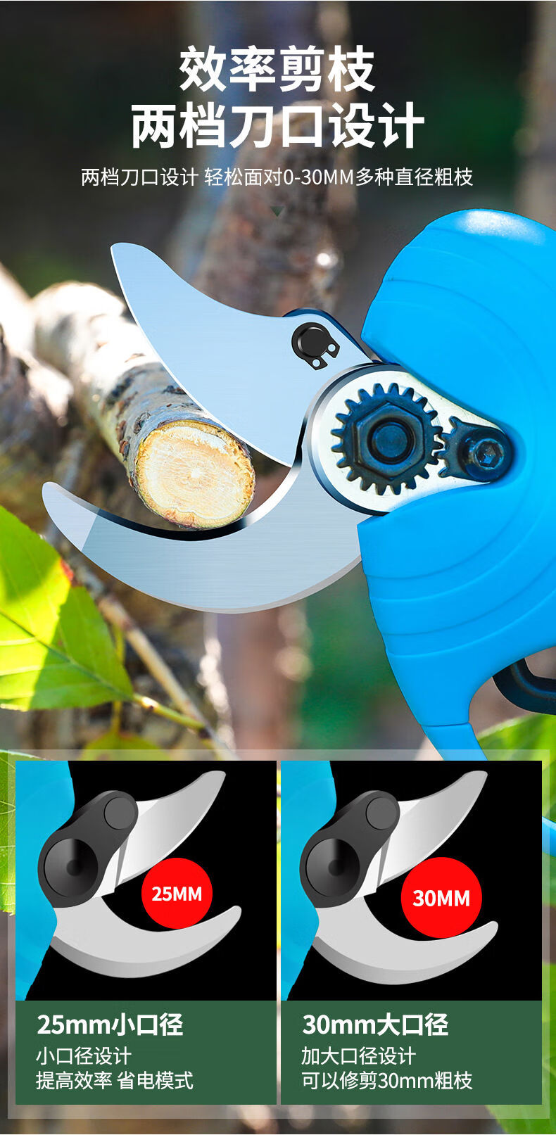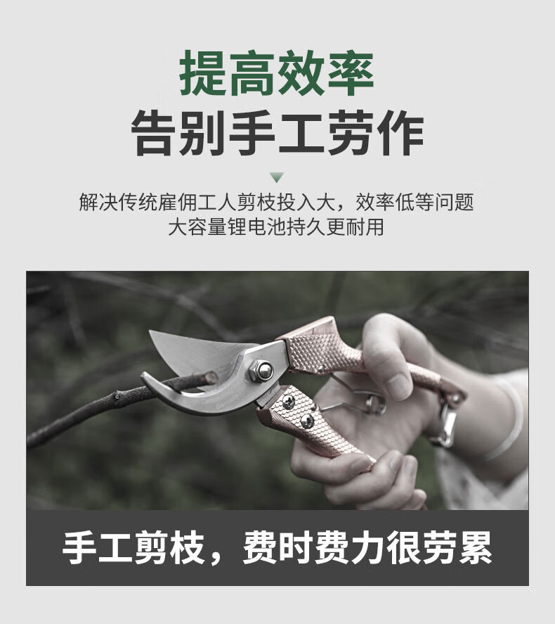 Shuchang large opening electric pruning shears rechargeable high-altitude garden electric shears fruit tree thick branch extension pole telescopic Shuchang 8601 pruning diameter 2.5 cm 2 electric one charge comes with blade + waist bag