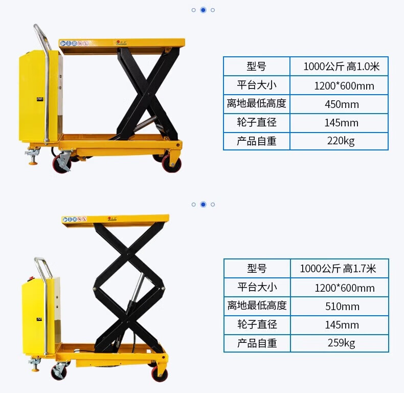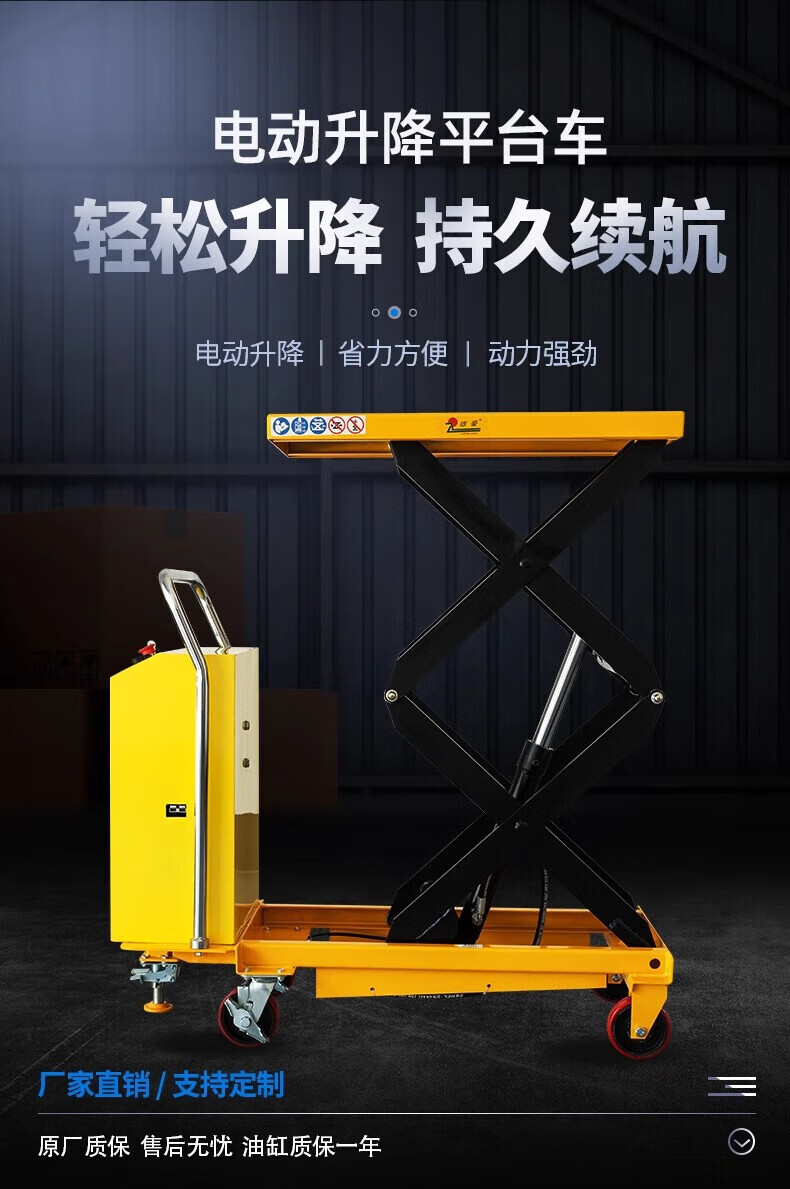 Movable electric lift, hydraulic lifting platform car, small fully automatic platform car, fixed lifting platform, electric lifting 150 kg, 0.72 m