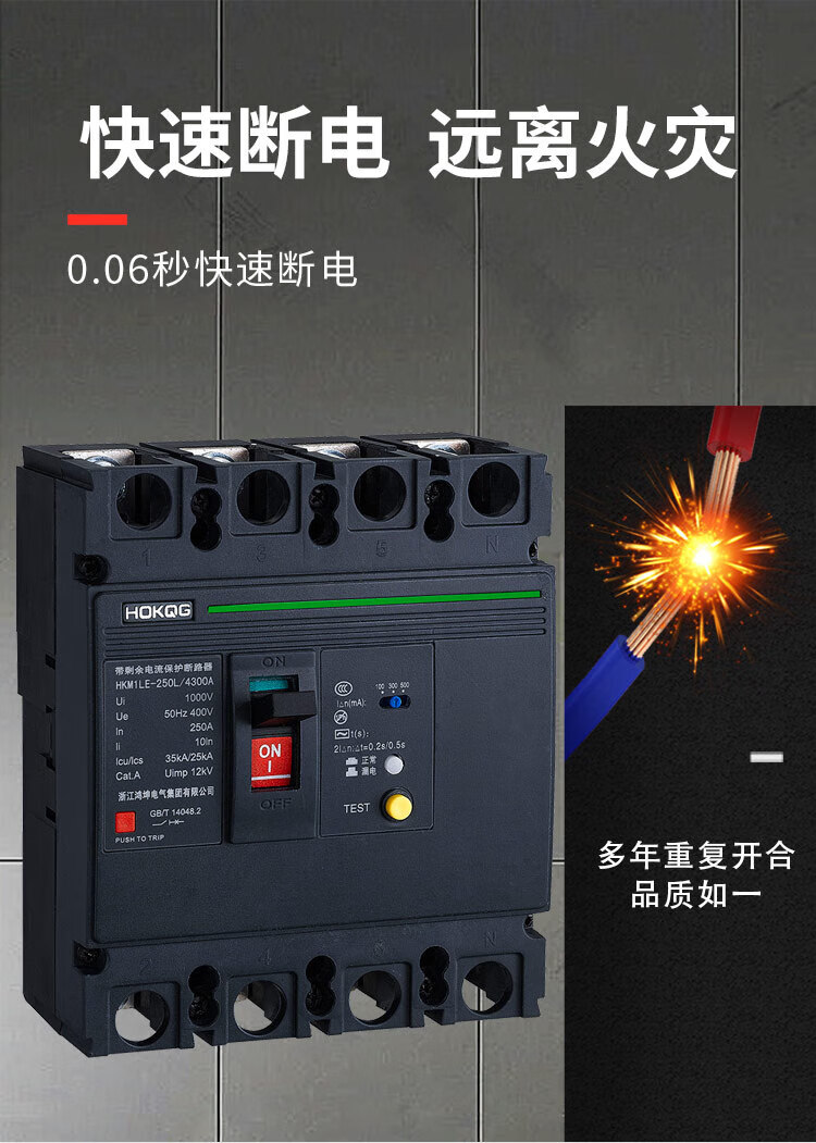 4P plastic case three-phase electric 380v switch protector air switch 100a250a three-phase four-wire leakage circuit breaker 16A 4p