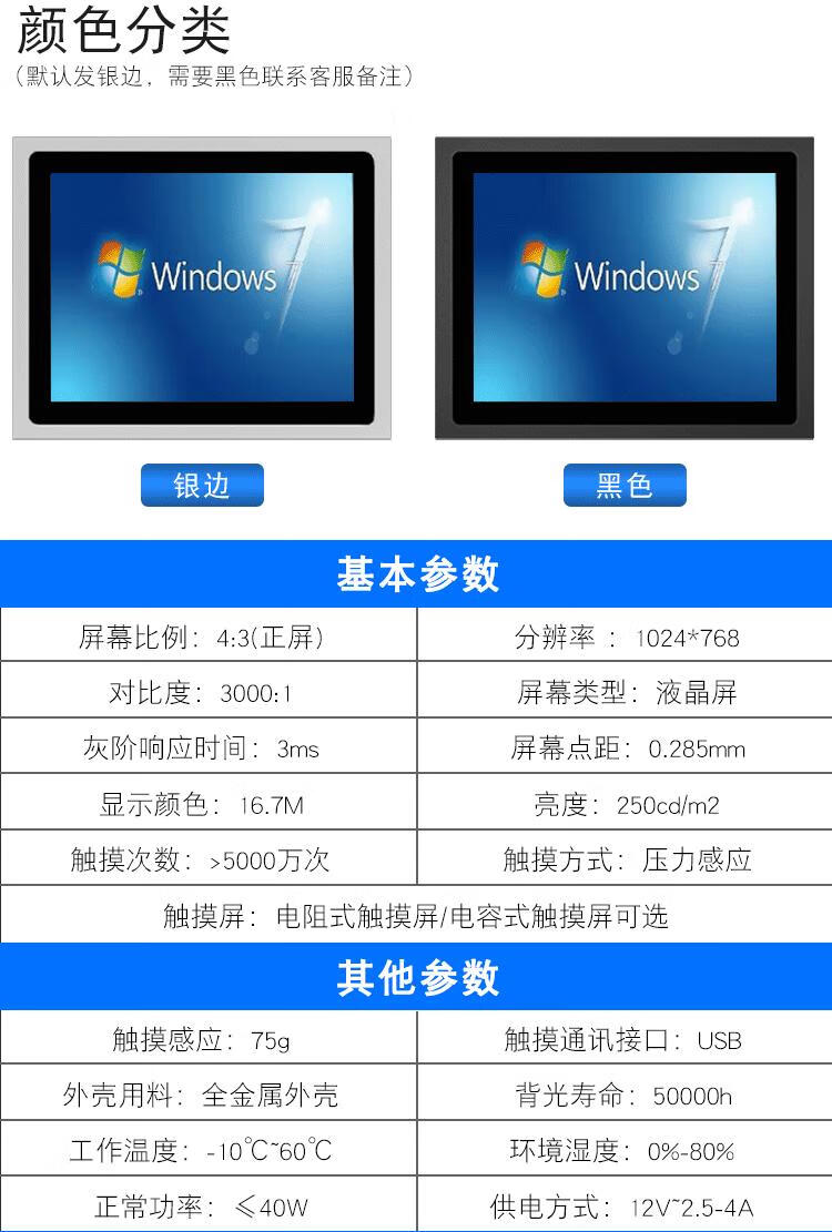 Industrial all-in-one machine embedded 10/12/15/17 capacitive resistive touch screen display industrial computer touch 12-inch resistive screen display (computer not included)