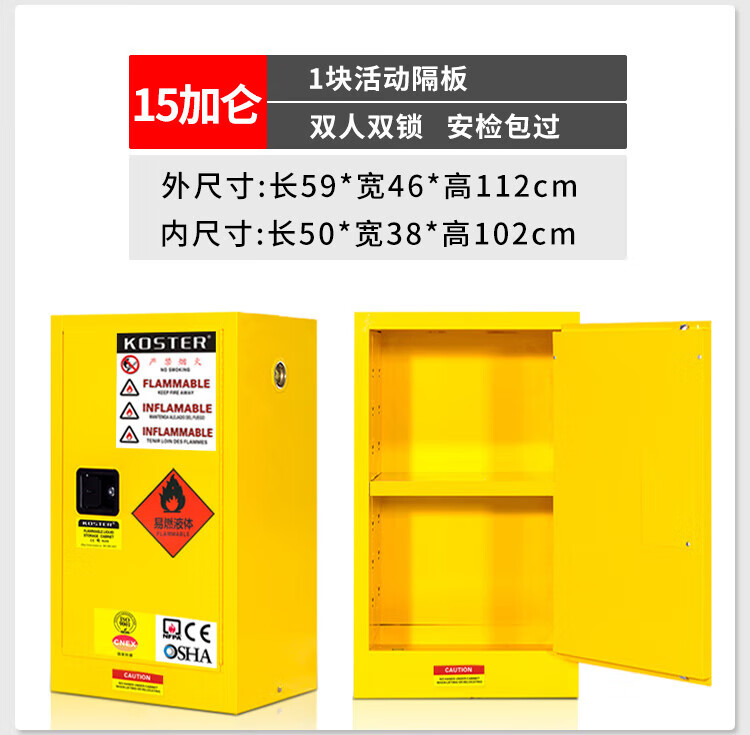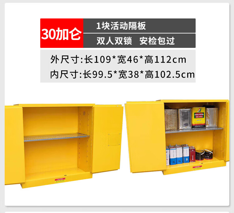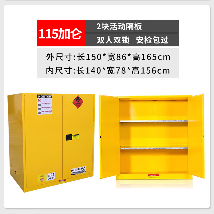 Industrial fire and explosion-proof cabinet hazardous chemicals safety cabinet 12-gallon flammable liquid alcohol storage cabinet explosion-proof box 115-gallon thick yellow/special exhaust fan available