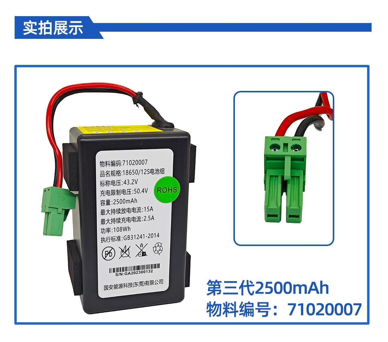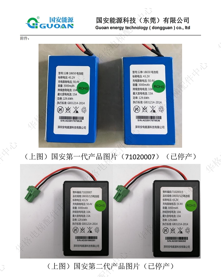 SF Guoan Energy 71020007 71020019 18650/12S lithium battery pack elevator accessories 71020007/2000 mAh SF Free Shipping