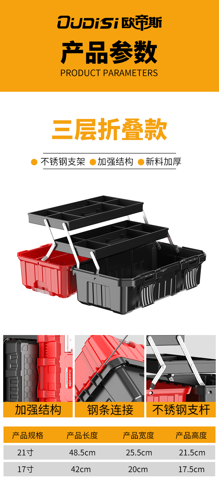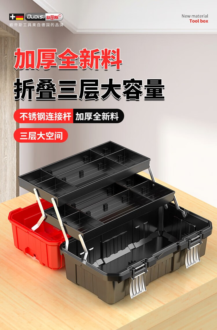 Otis tool box storage box household multi-functional industrial grade three-layer folding electrician special hardware tool box parts box thickened 21-inch folding tool box