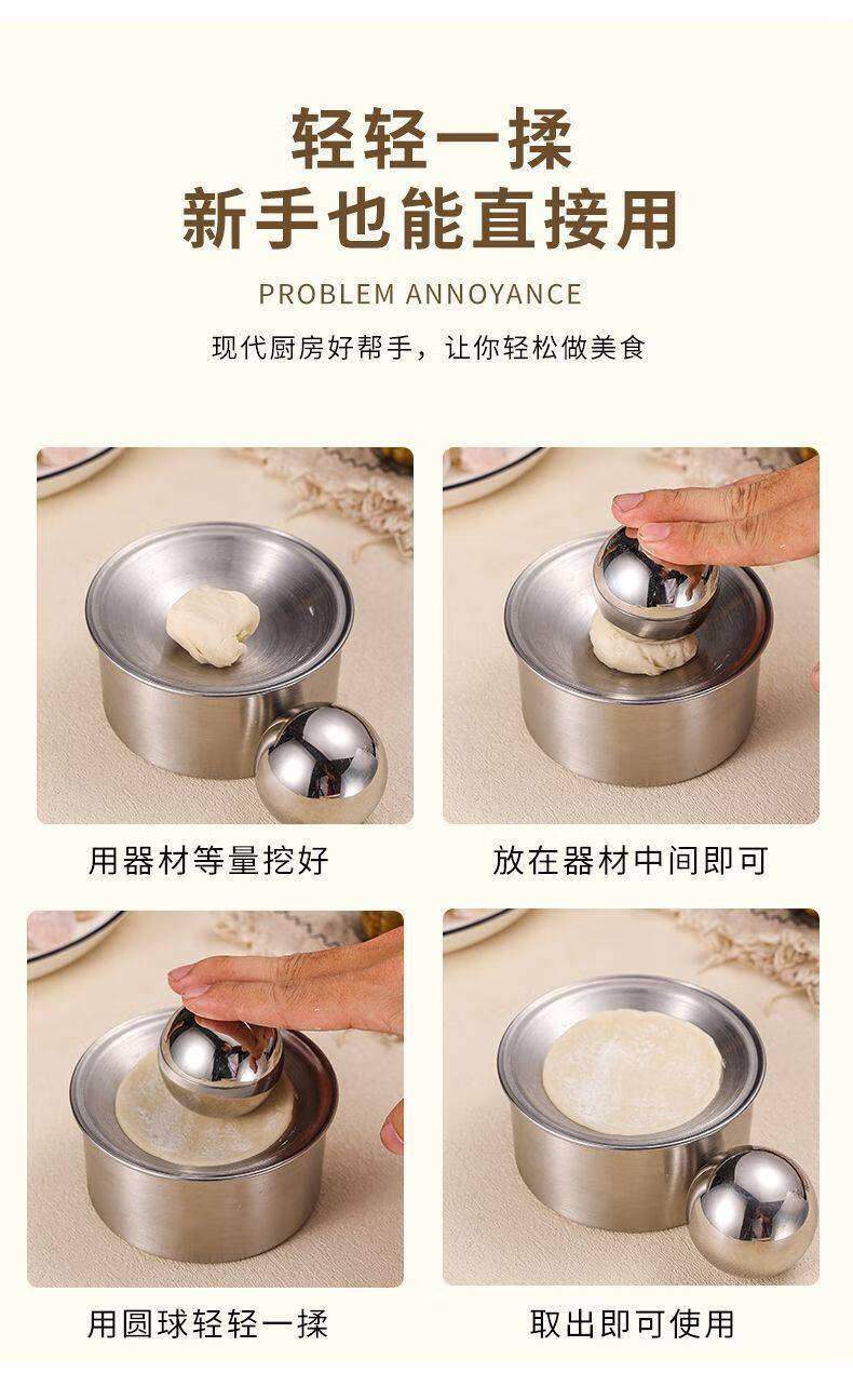 Yonghuan 304 stainless steel dumpling wrapper household dumpling wrapper rolling ball round tool dumpling wrapper mold 1 set upgrade of the wrapper to overall stainless steel non-stick skin