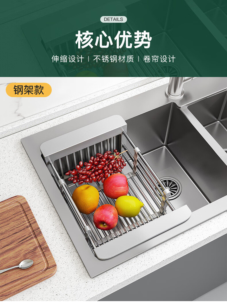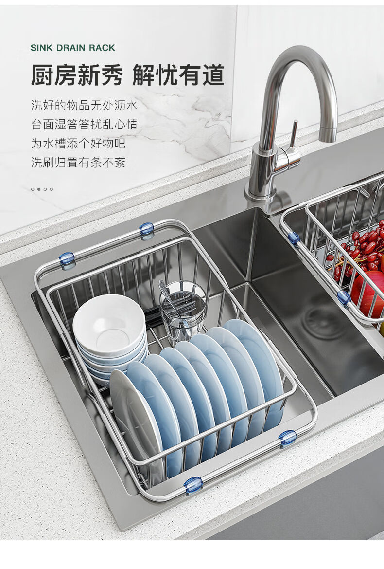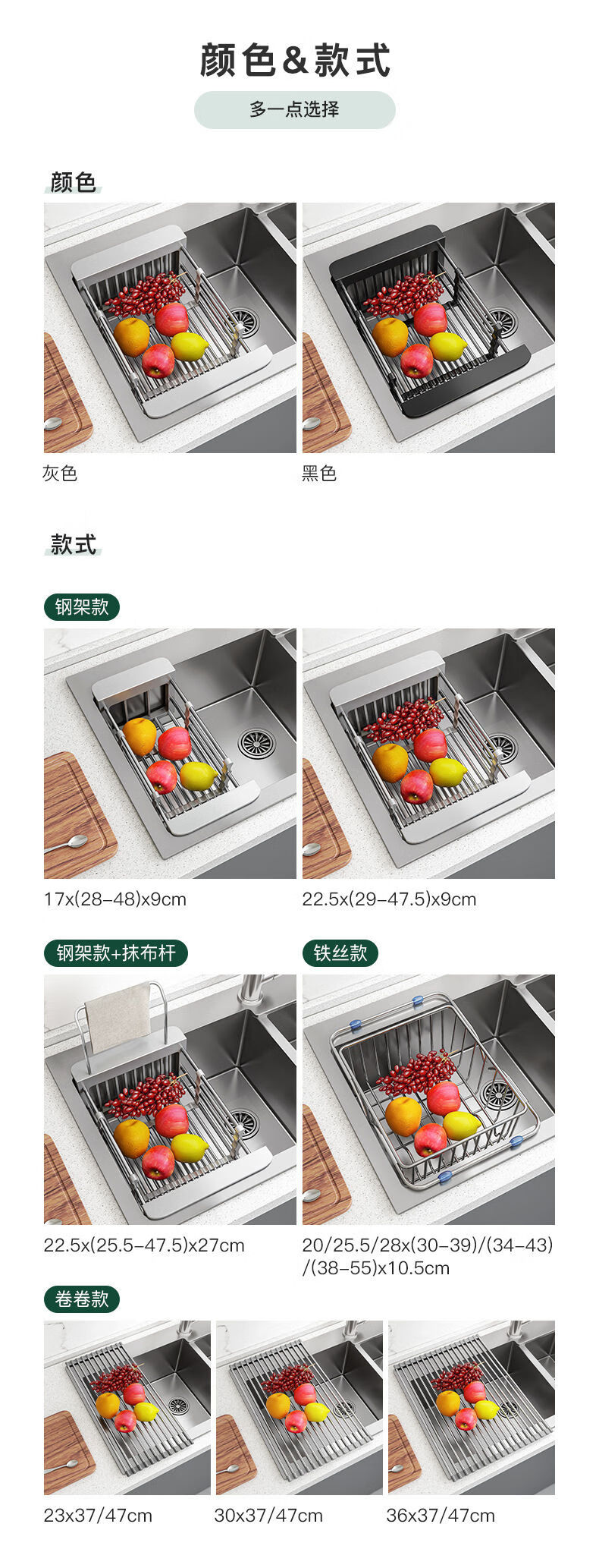 Wen Yijia sink sink drain rack washbasin drain basket 304 stainless steel drain pool filter retractable kitchen basket regular style 1 pack 304 drain basket large gray