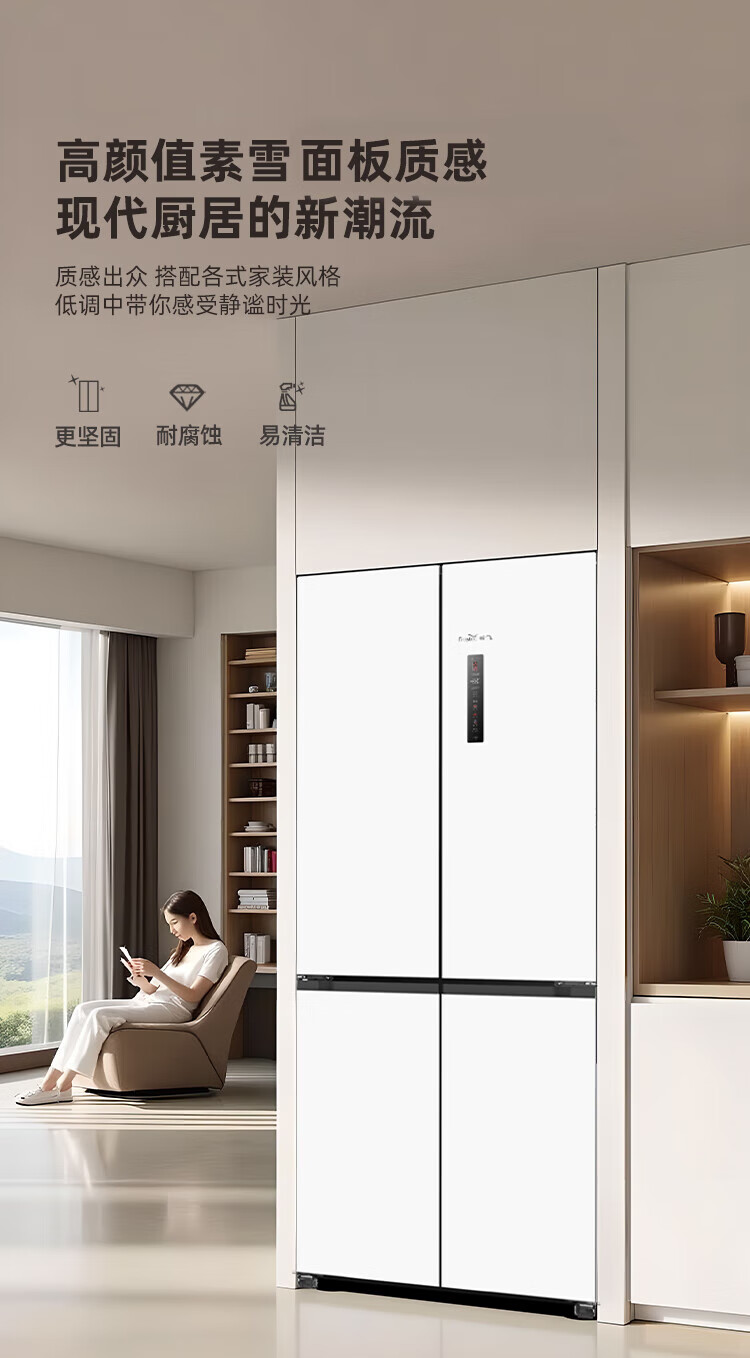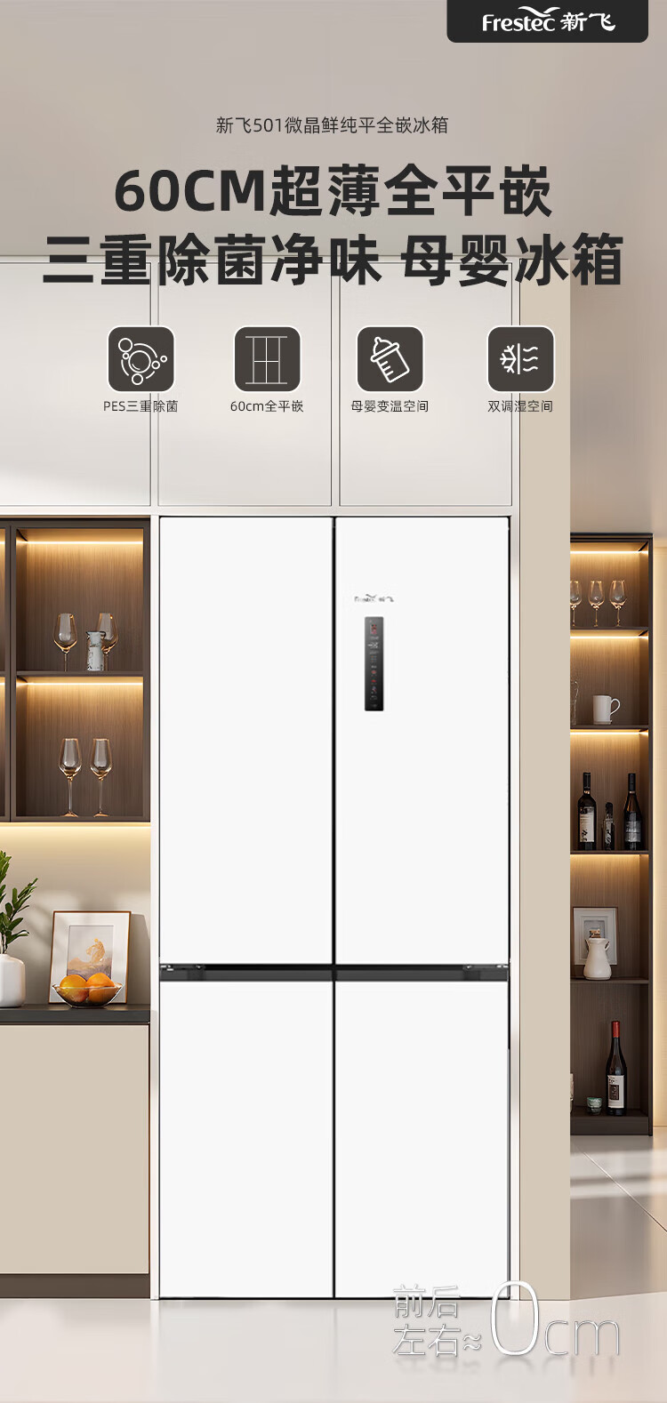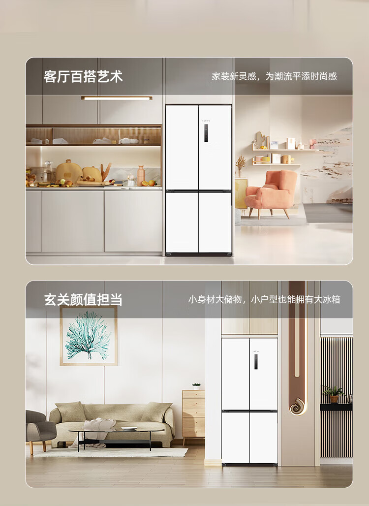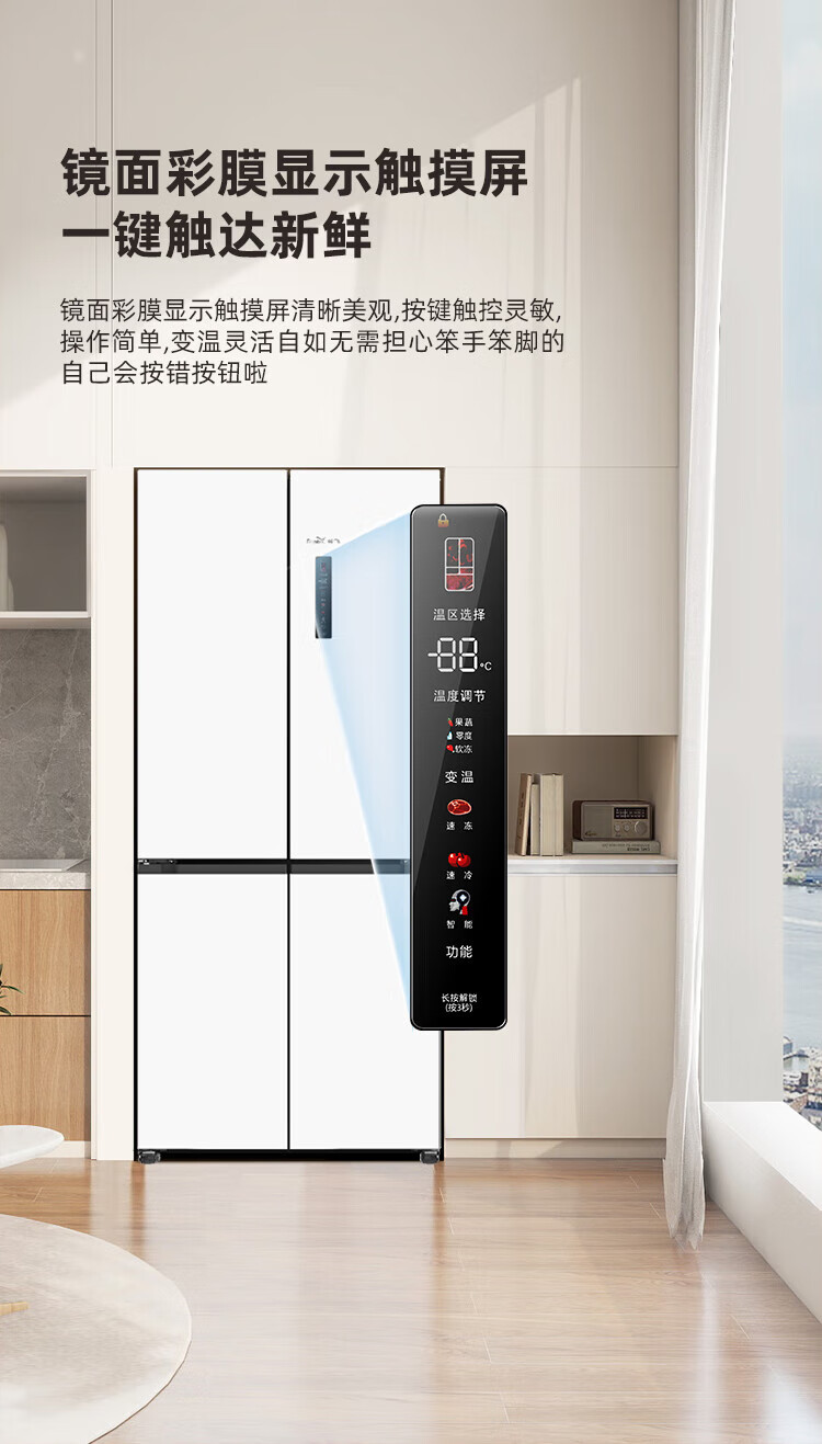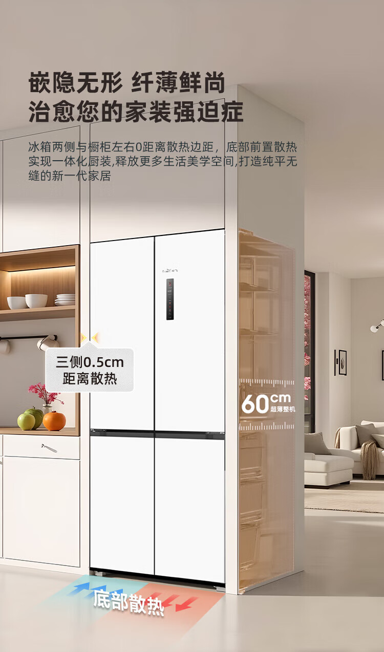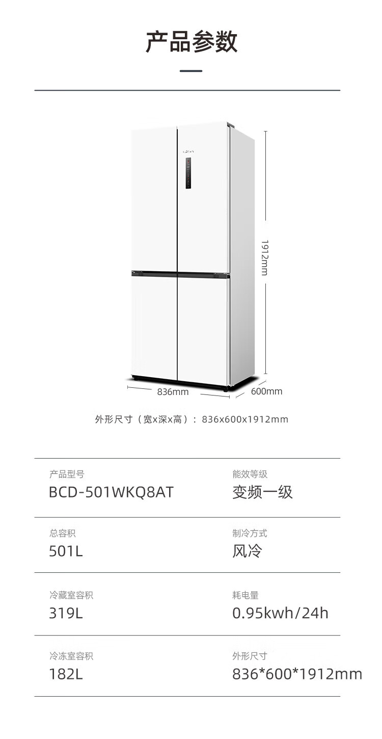 Xinfei (Frestec) 501L ultra-thin built-in cross-door refrigerator, full-space active sterilization, first-level flat-mounted mobile ice making compartment, air-cooled, frost-free, large capacity BCD-501WKQ8AT 501 liter French multi-door refrigerator ~ first-level frequency conversion