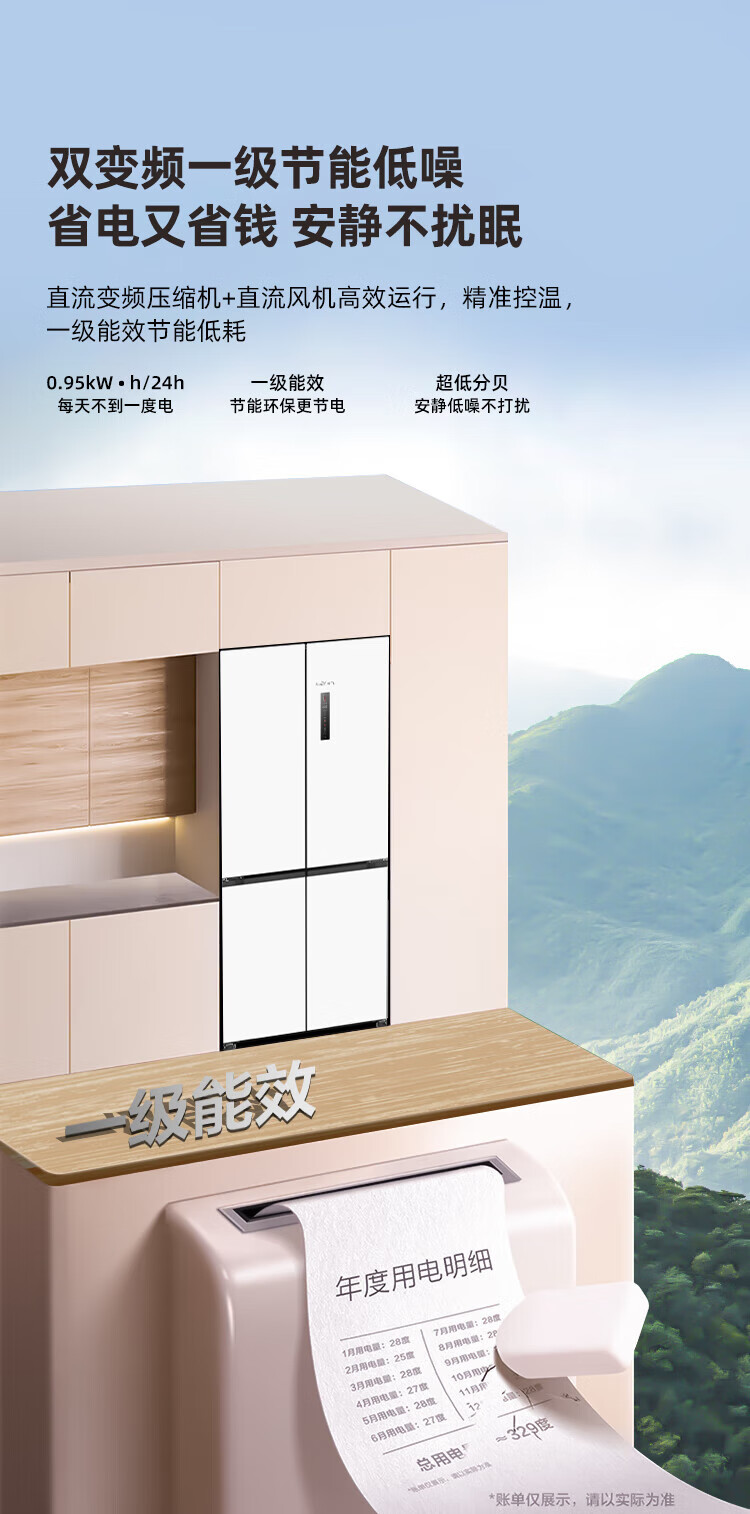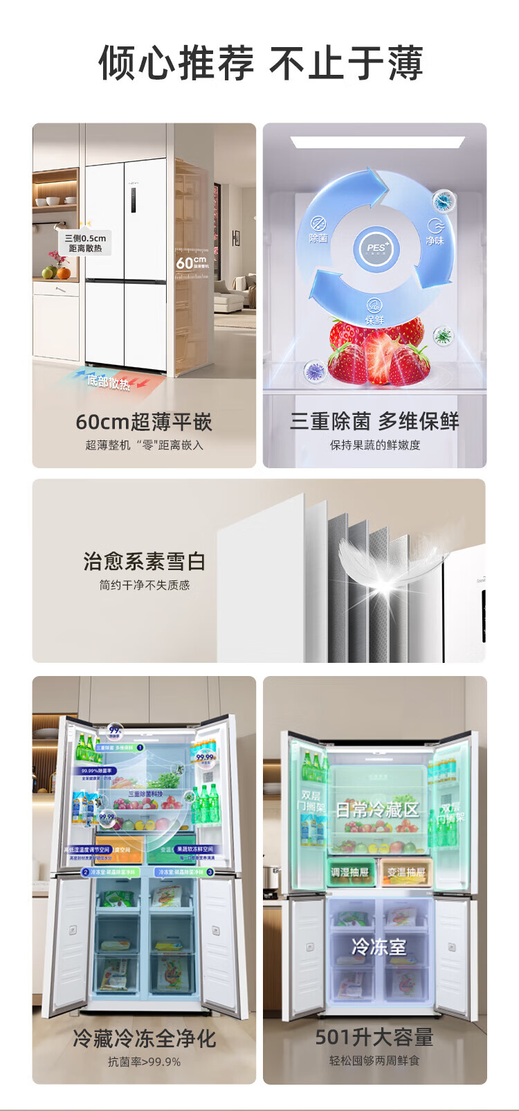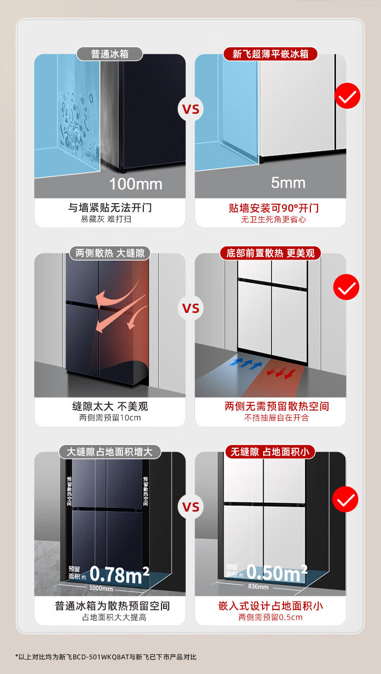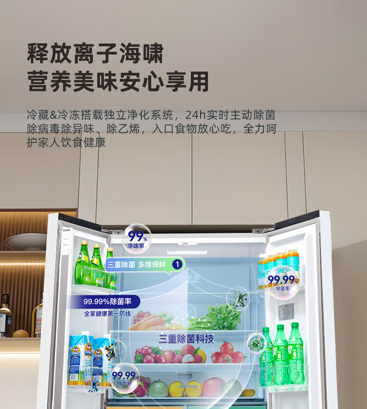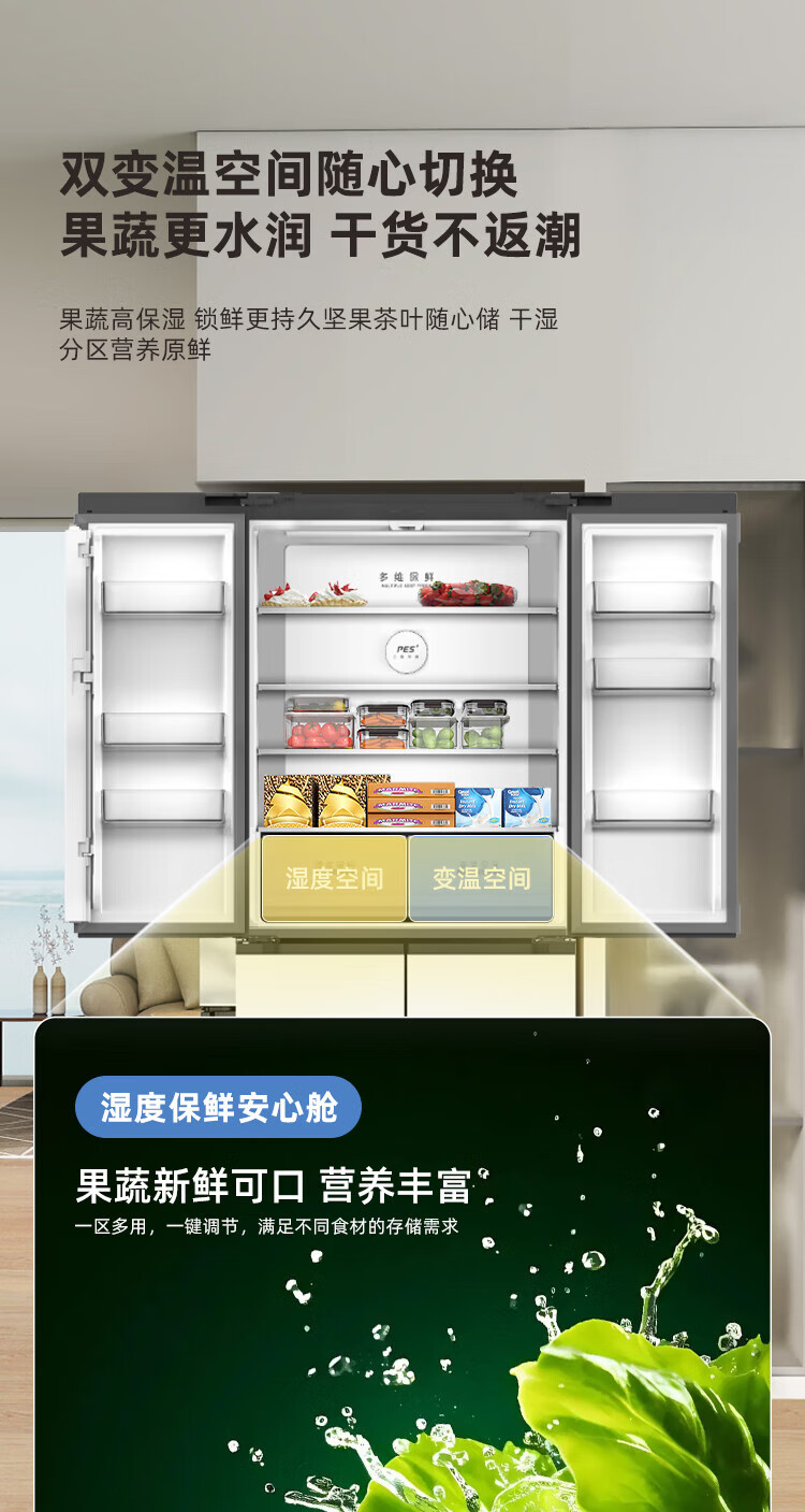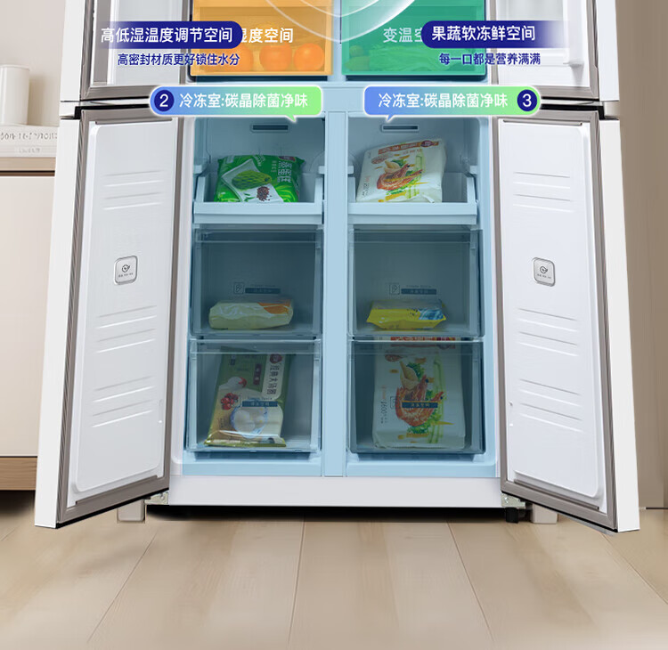Xinfei (Frestec) 501L ultra-thin built-in cross-door refrigerator, full-space active sterilization, first-level flat-mounted mobile ice making compartment, air-cooled, frost-free, large capacity BCD-501WKQ8AT 501 liter French multi-door refrigerator ~ first-level frequency conversion