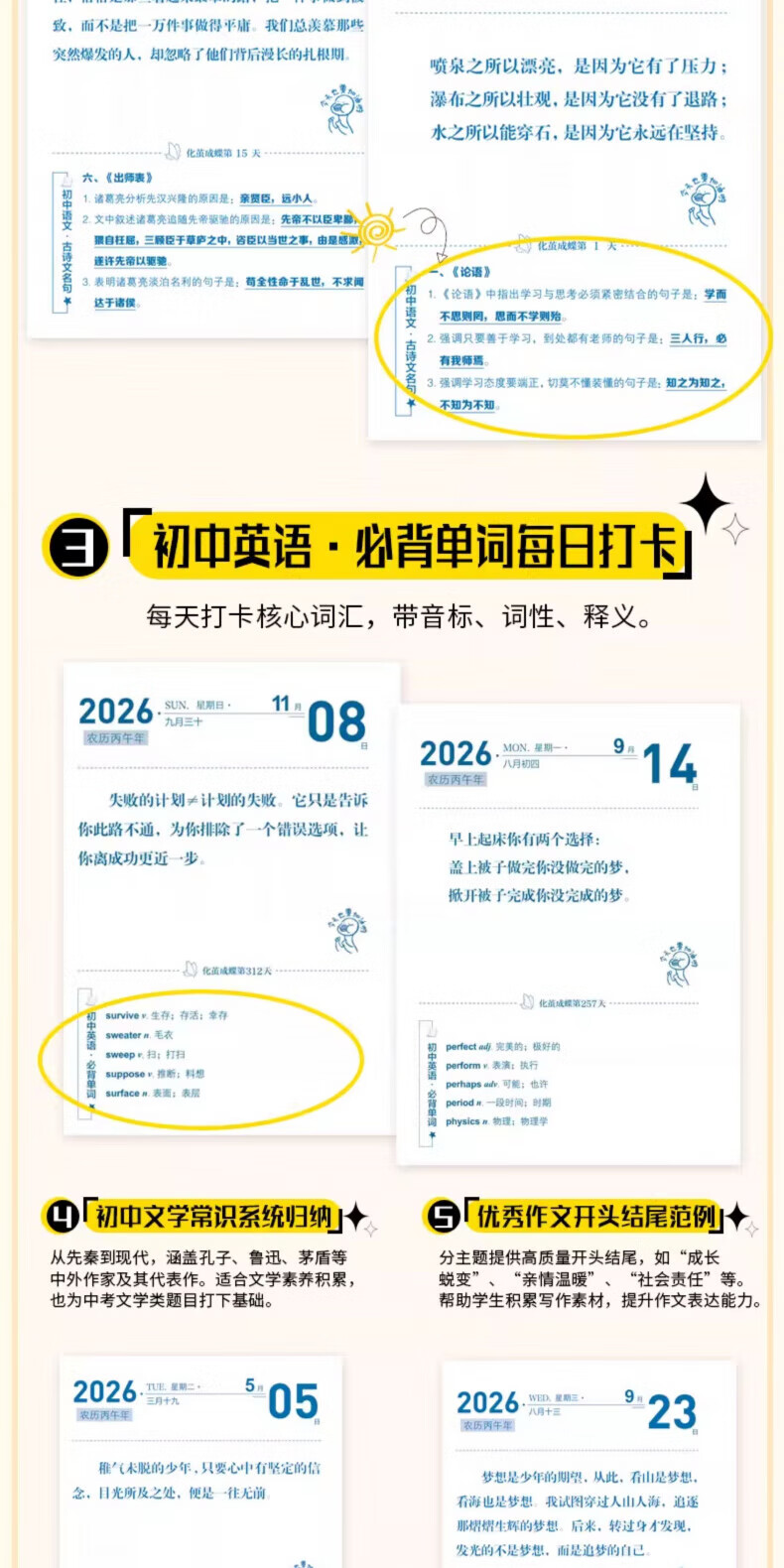 Official Genuine - Spot Speed Dating Turning Cocoon into Butterfly Inspirational Calendar for Junior High School Students 2026 New High-Looking 2026 Horse Junior High School Desktop Decoration Check-in Original Calendar 26-year Desk Calendar High School Entrance Examination New Year Knowledge Desk Calendar 365-day New Calendar Fish Leaping over the Dragon Gate 2026 High School Student Inspirational Calendar