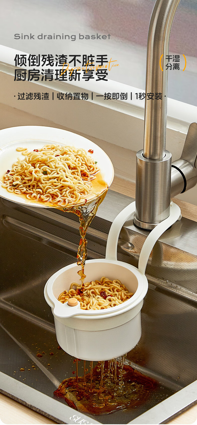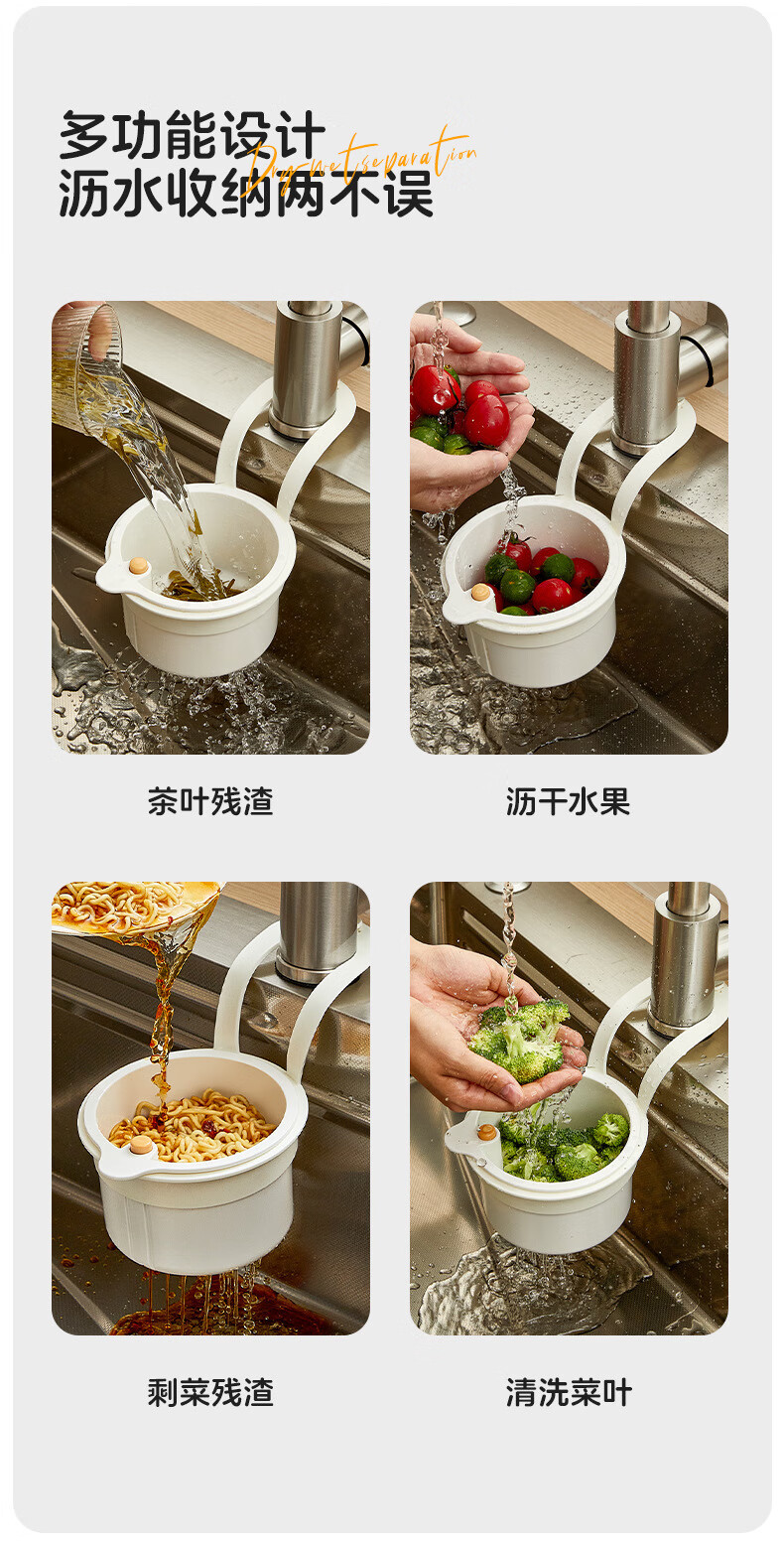Skingcond hangable sink drain basket household kitchen sink separates food residue filter basket fruit cleaning drain basket white