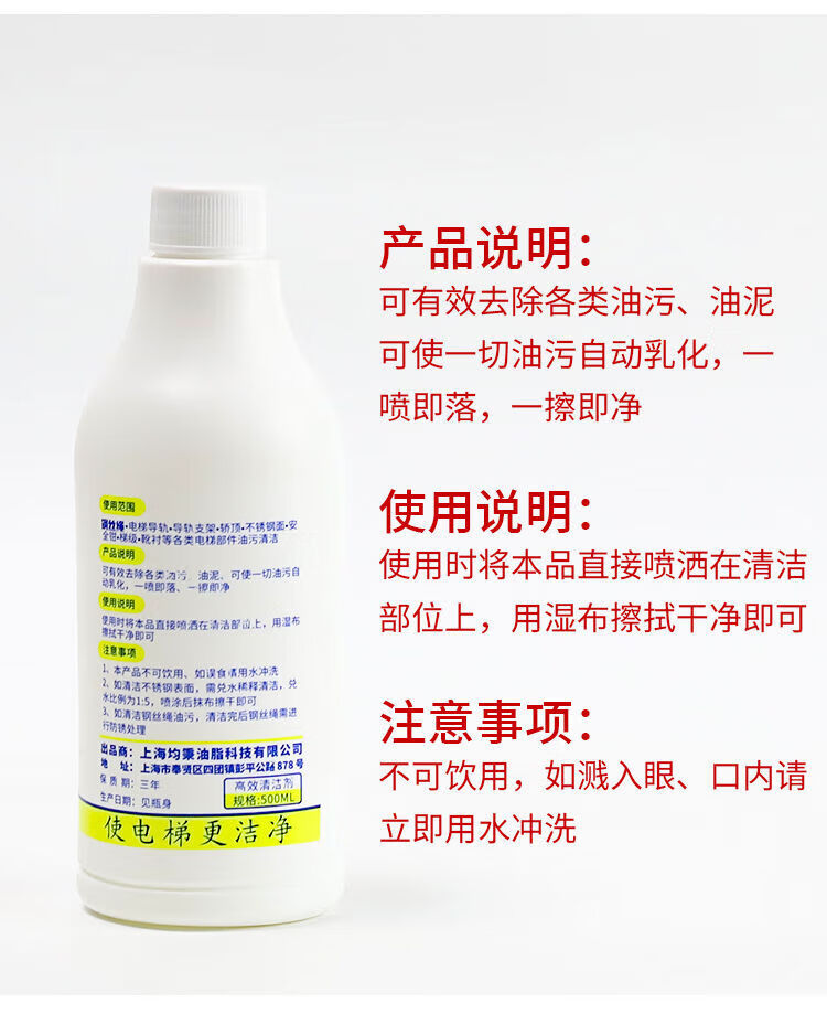 Elevator shaft oil cleaning agent cleans emulsified oil dirt and sludge to remove greasy artifact 500ML ladder cleaning accessories others 25 bottles (one box)