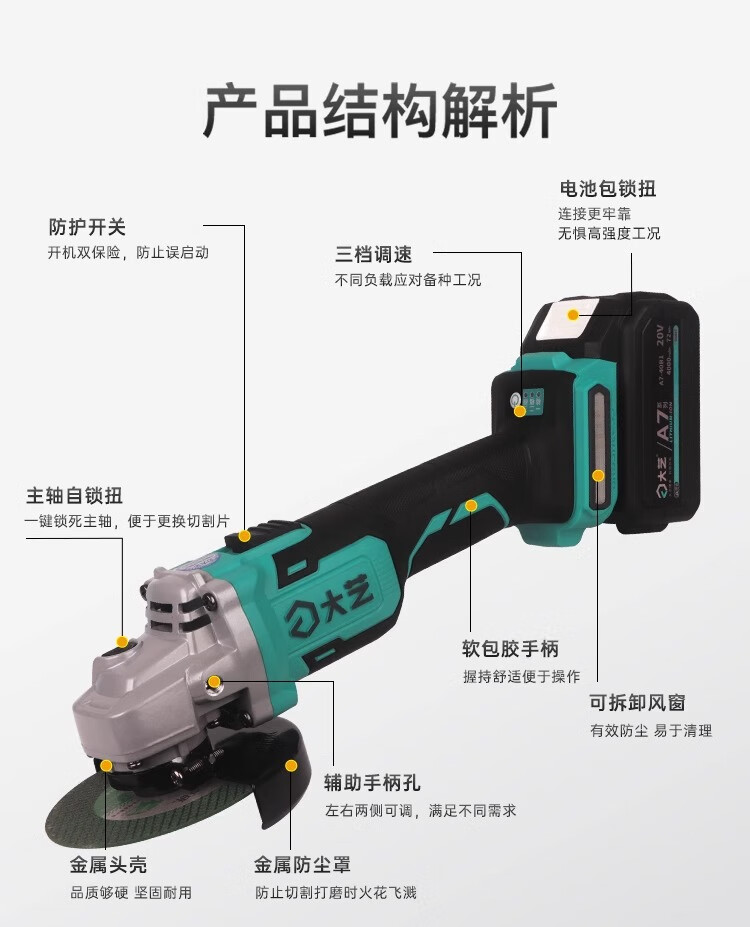 Dayi A7C5819 lithium electric angle grinder brushless three-speed speed regulation 5801G machine head (three-speed speed regulation 10500 high speed