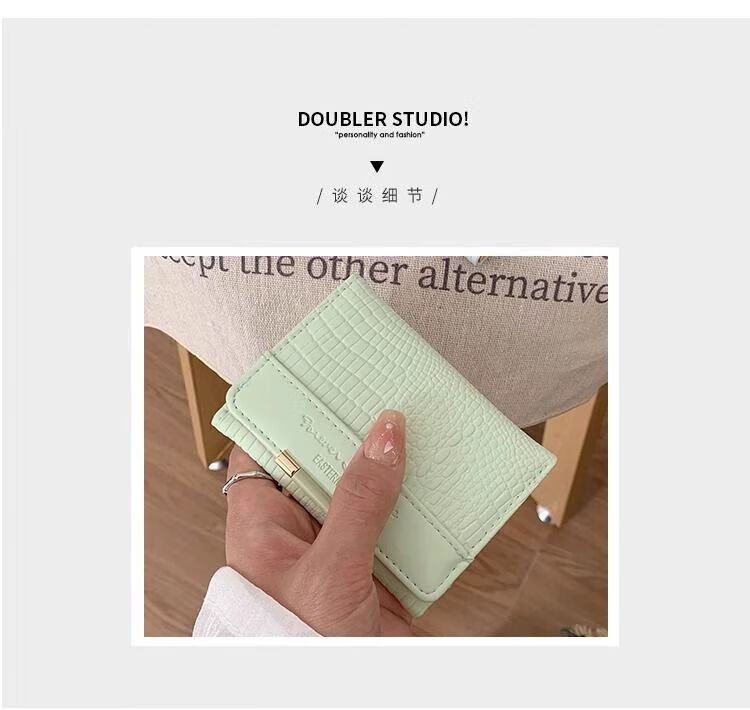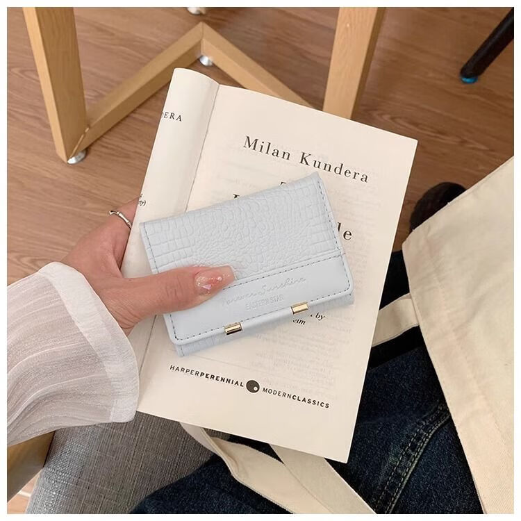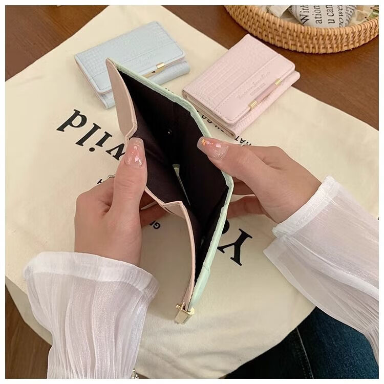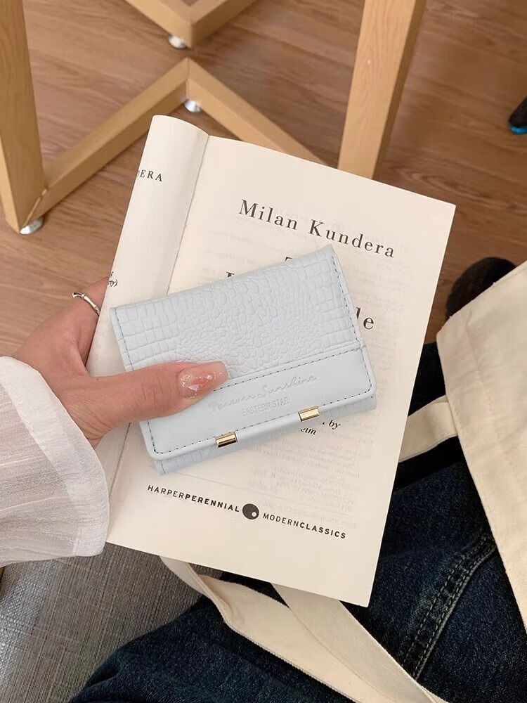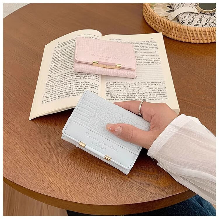 Ye Yu's good-looking crocodile pattern short PU wallet for women ins niche classic fashion exquisite multi-card slot card holder small wallet blue regular version
