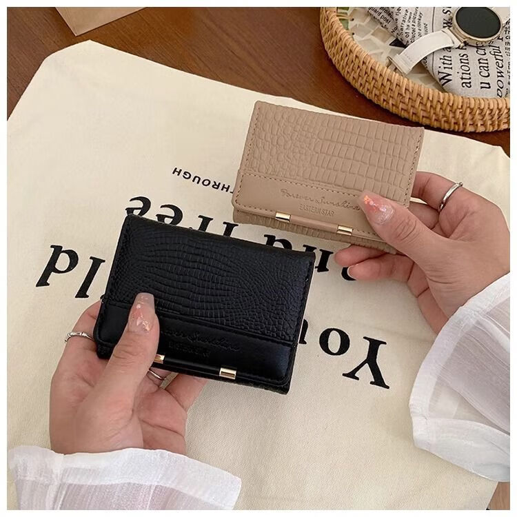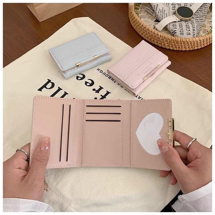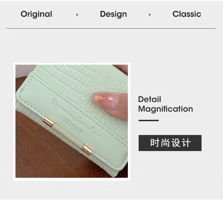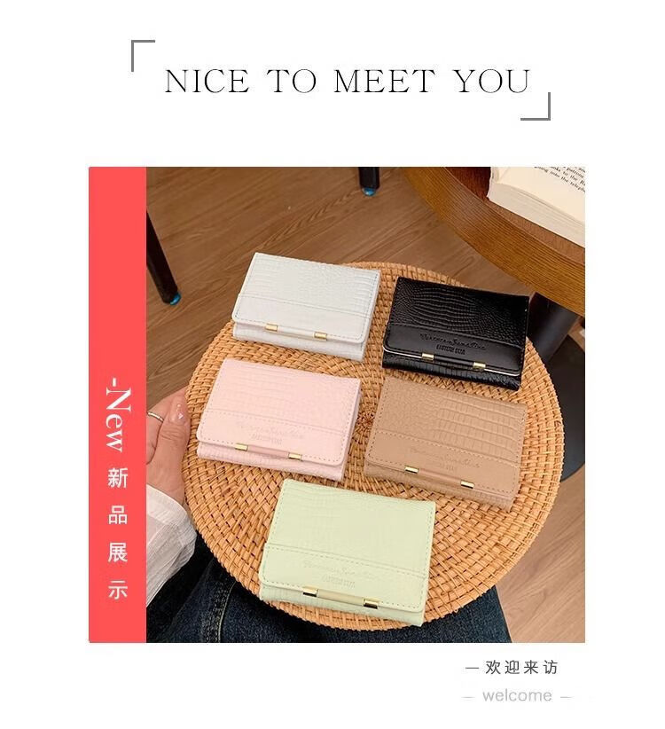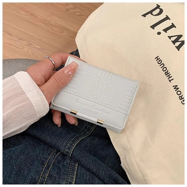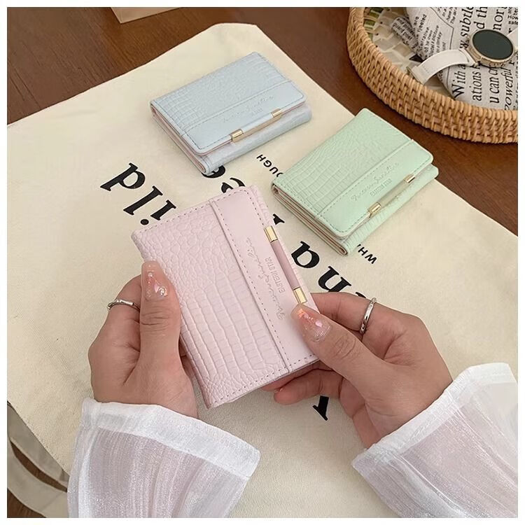 Ye Yu's good-looking crocodile pattern short PU wallet for women ins niche classic fashion exquisite multi-card slot card holder small wallet blue regular version
