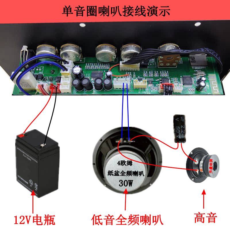 Bluetooth speaker amplifier motherboard 12V battery 26*10 suitable for Xinke Jinzhengxianke pull rod audio amplifier board package 5 amplifier board + battery pack 12V battery + charger + 5