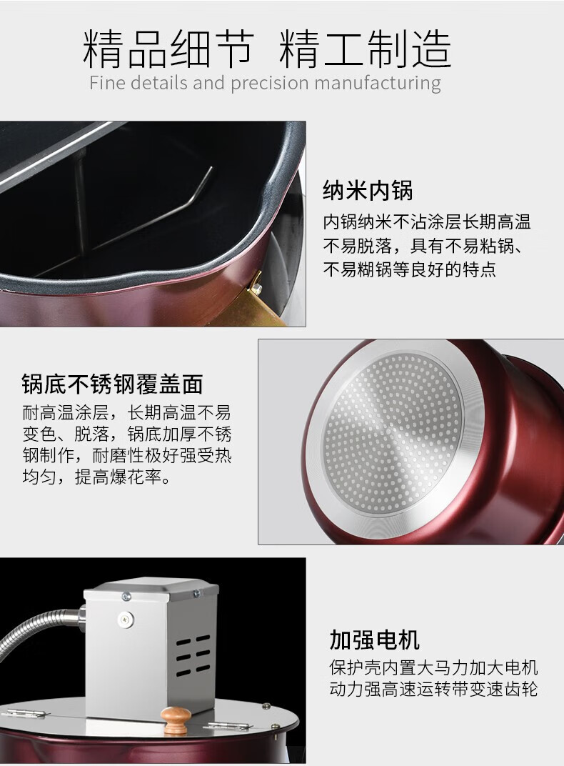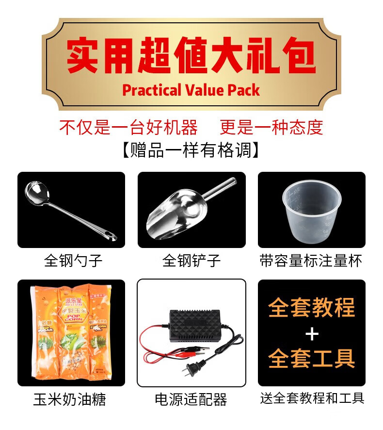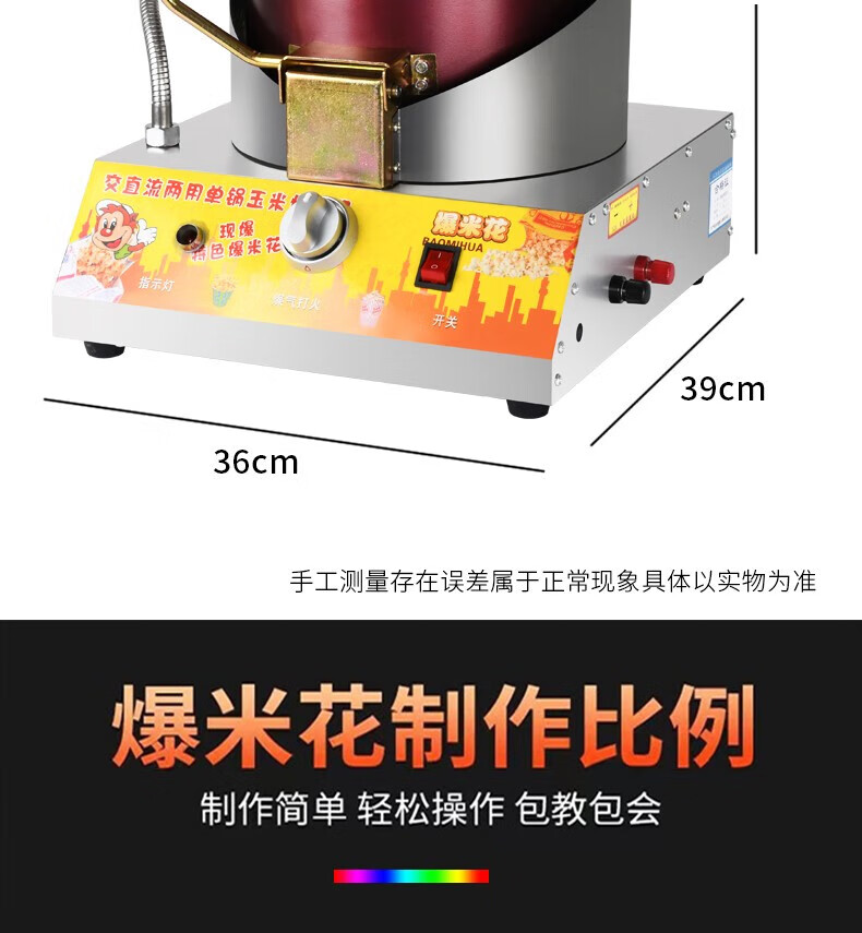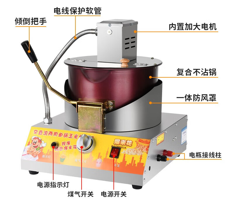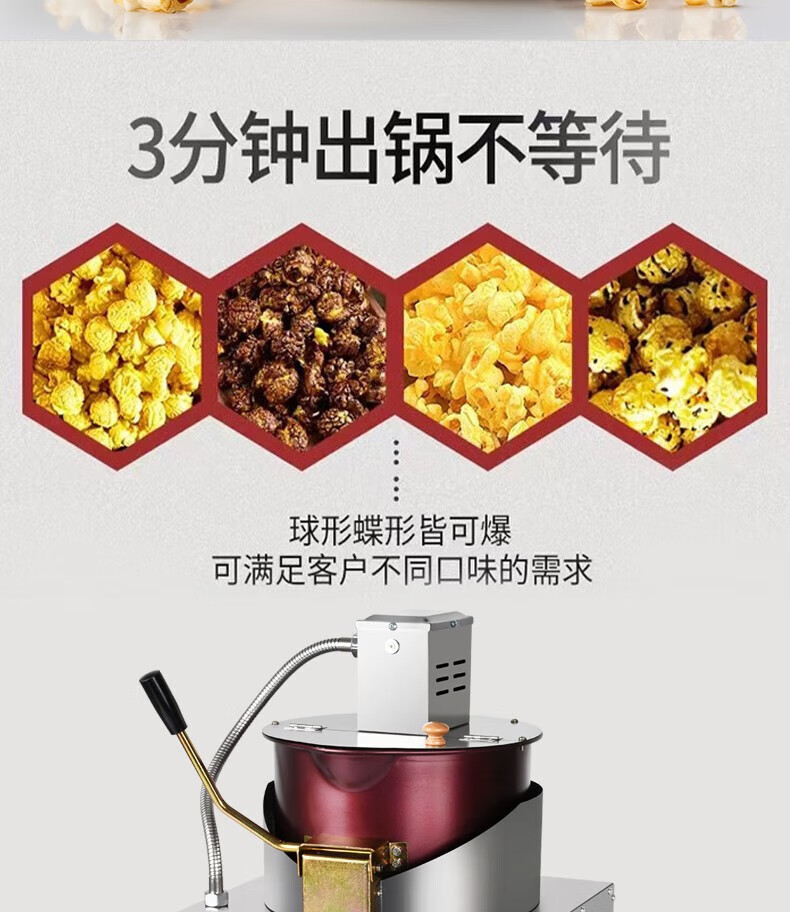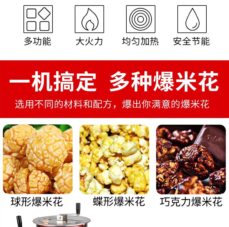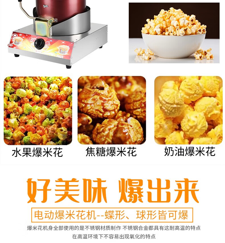 RSRDDY popcorn machine stall commercial popcorn machine gas dual electric small popcorn butterfly spherical three-in-one material package (20 packages shipped)