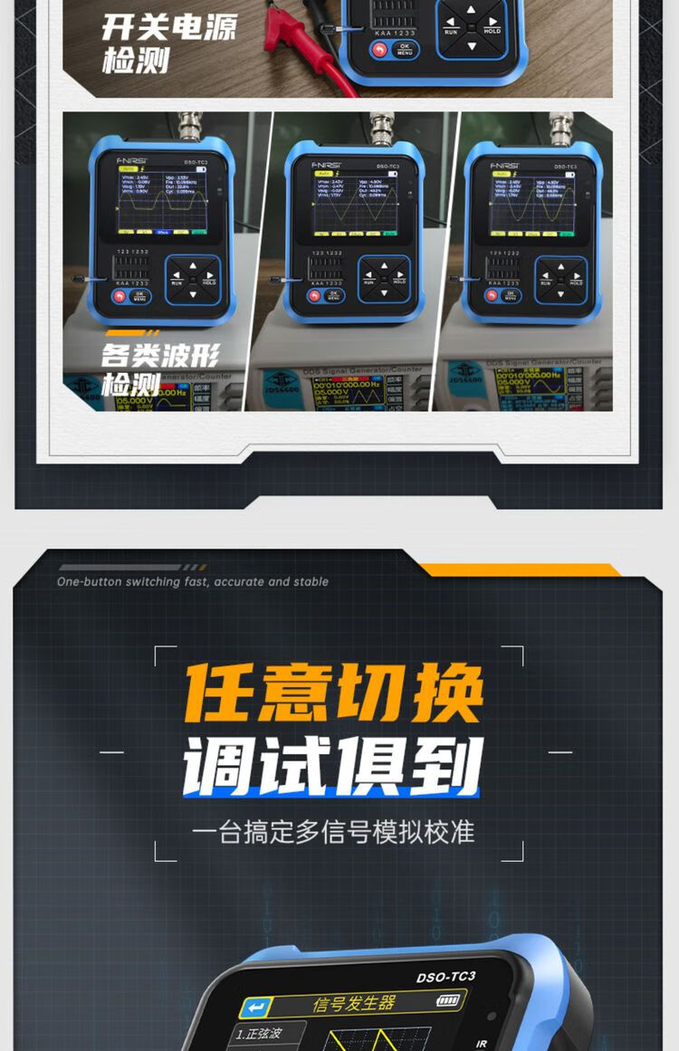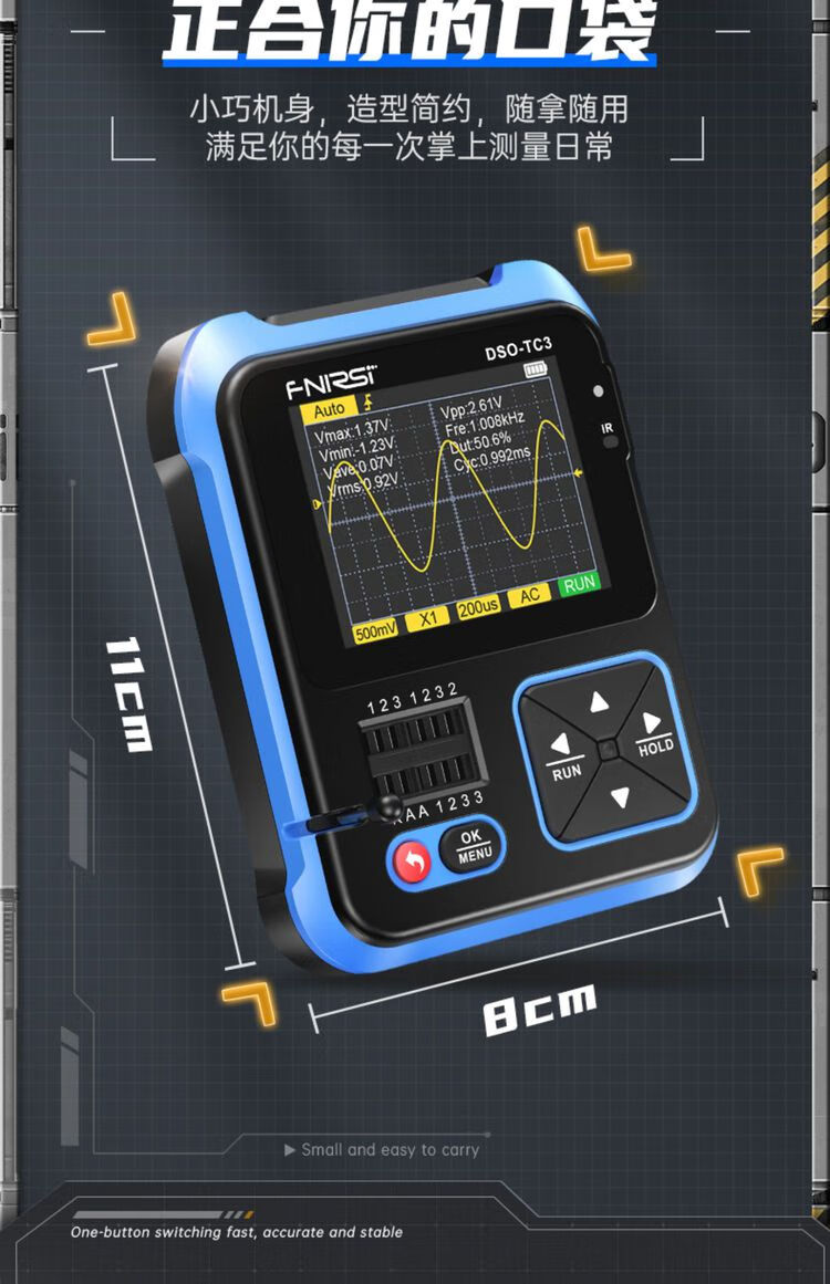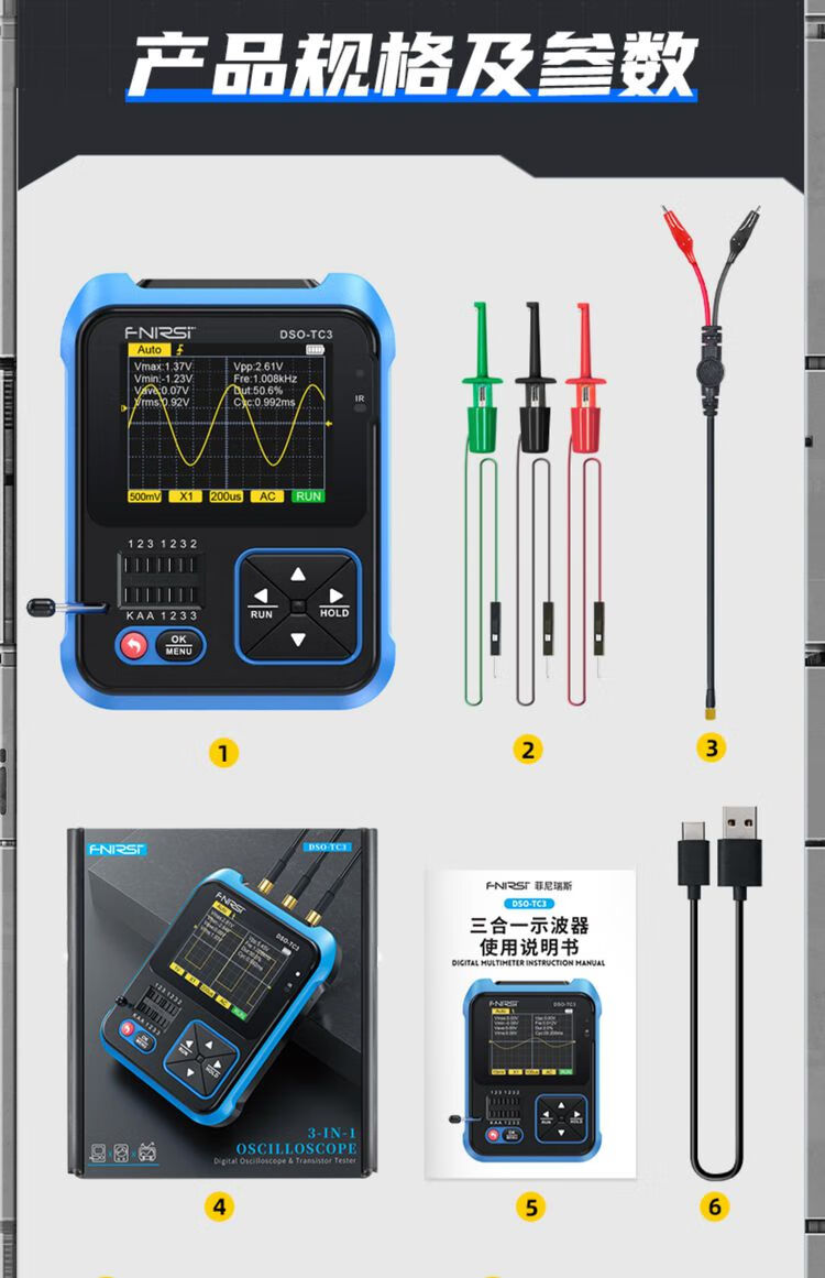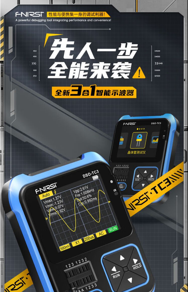 FNIRSI three-in-one multi-function oscilloscope DSOTC3 handheld small transistor detection signal generator three-in-one TC3 high-end version Follow the store and send SF Express