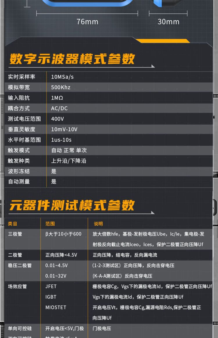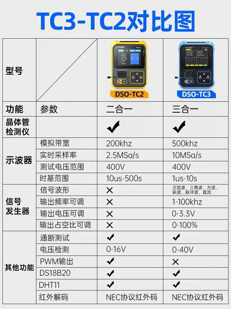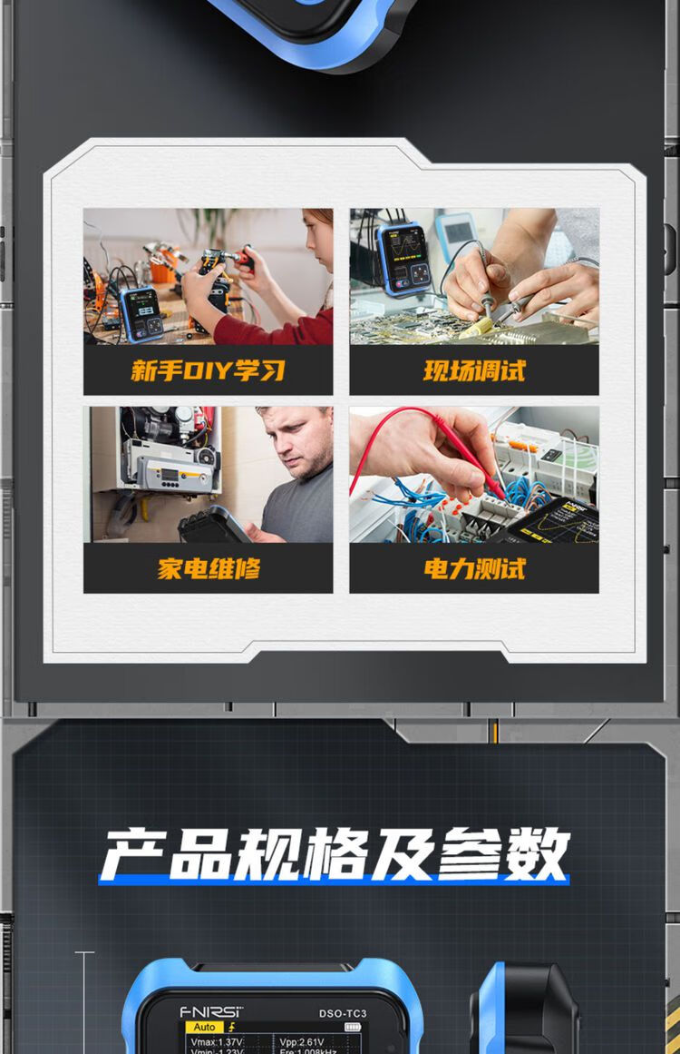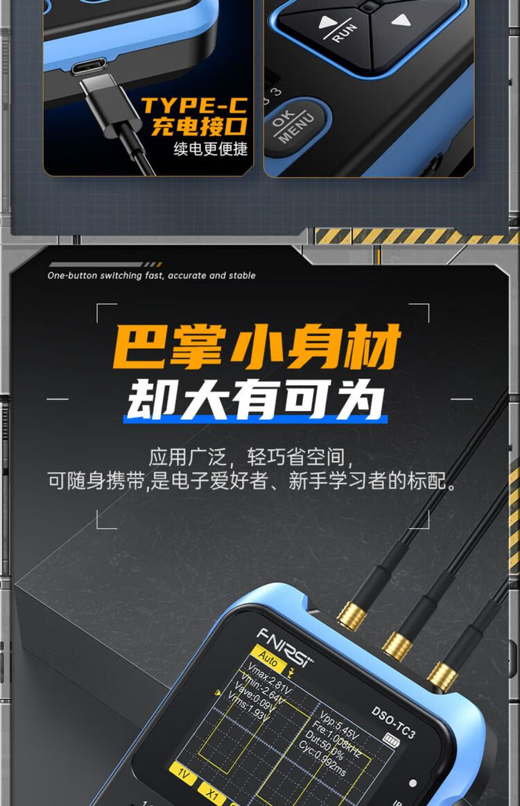 FNIRSI three-in-one multi-function oscilloscope DSOTC3 handheld small transistor detection signal generator three-in-one TC3 high-end version Follow the store and send SF Express