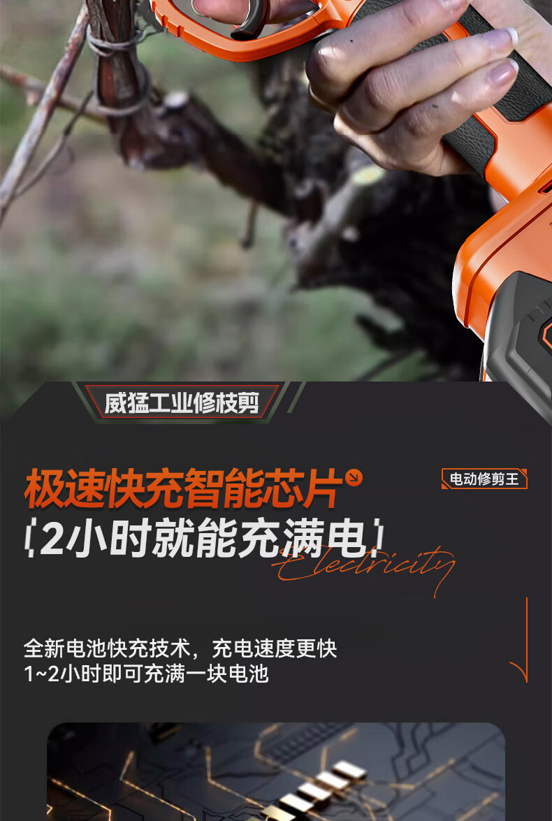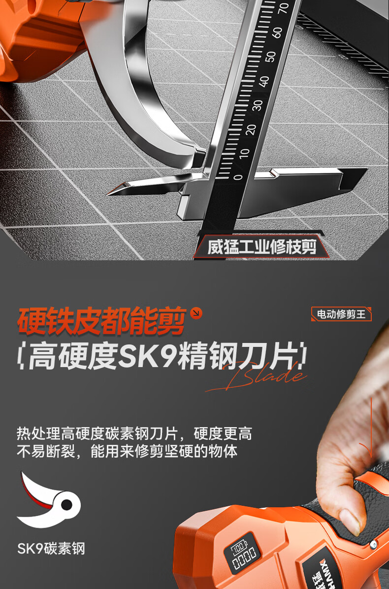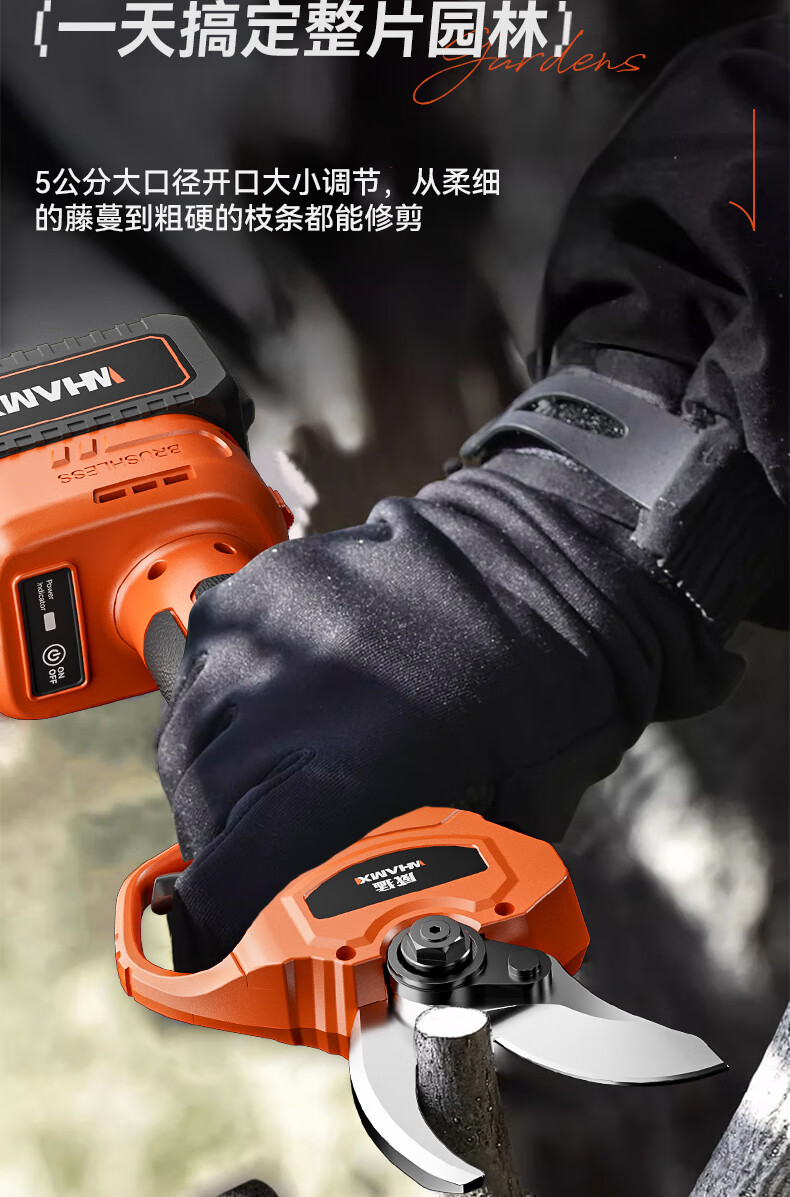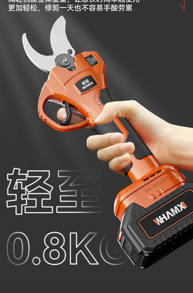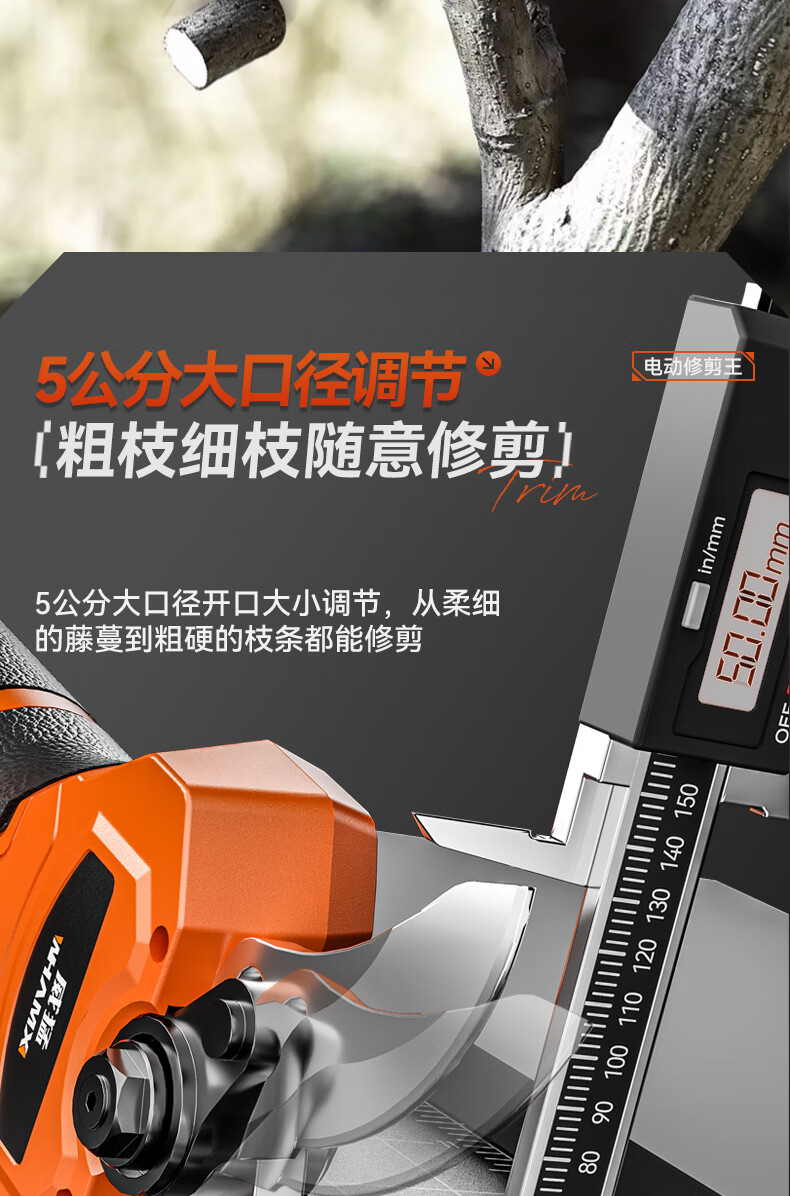 Powerful electric scissors for cutting branches, rechargeable fruit tree garden pruning scissors, pruning scissors, gardening scissors, opening 5CM, two batteries and one charger