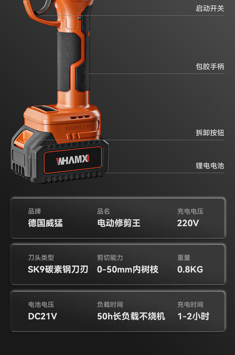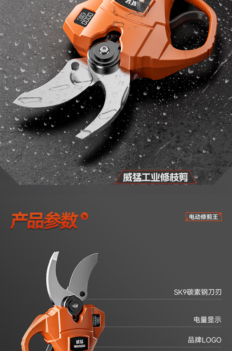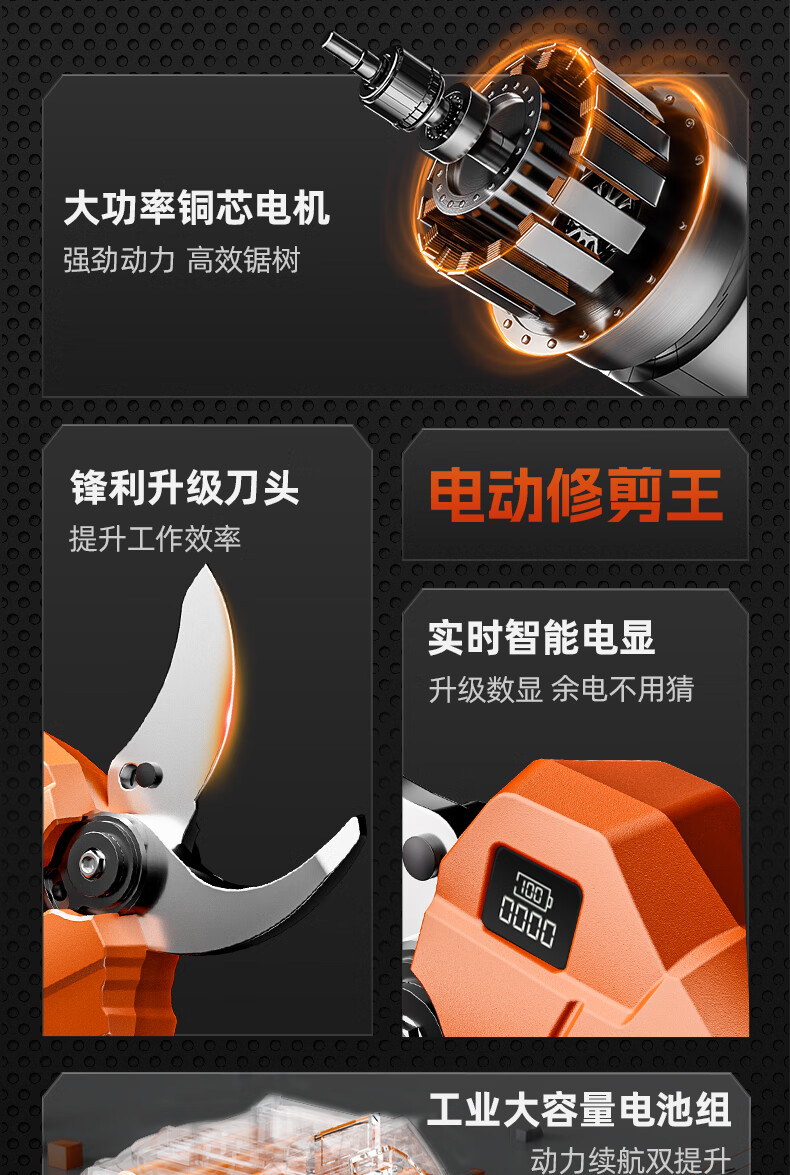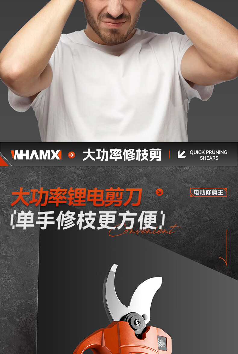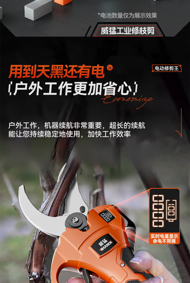 Powerful electric scissors for cutting branches, rechargeable fruit tree garden pruning scissors, pruning scissors, gardening scissors, opening 5CM, two batteries and one charger