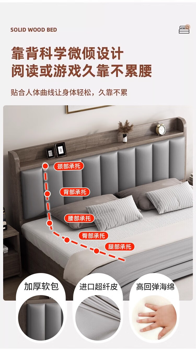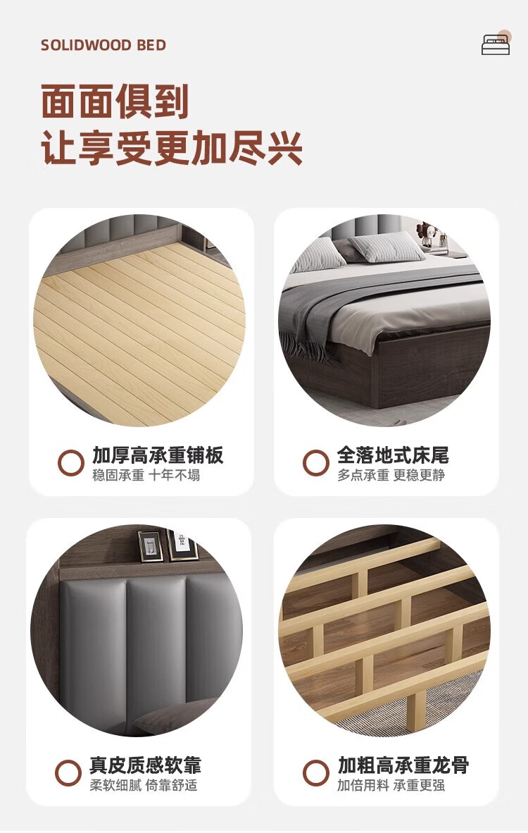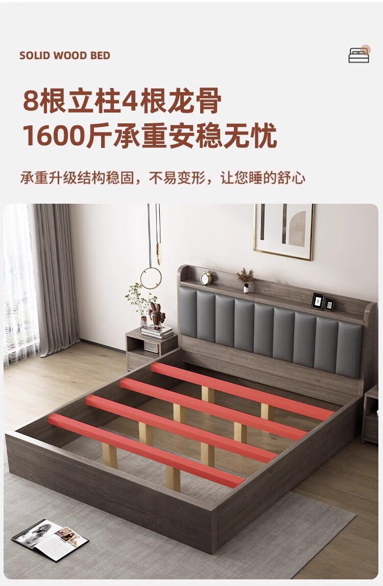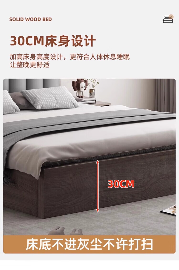 Xiaomi Sunshine Solid Wood Bed Double 1.8x2m Modern Simple Bedroom King Bed 1.5m Simple Economical 1.2m Rental House Thickened Gray Full-bed Bed Delivery Upstairs 1800mm*2000mm Box Frame Structure