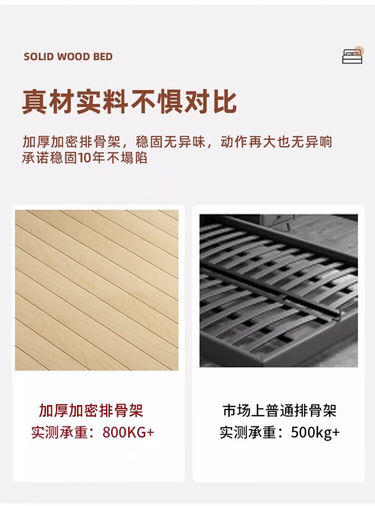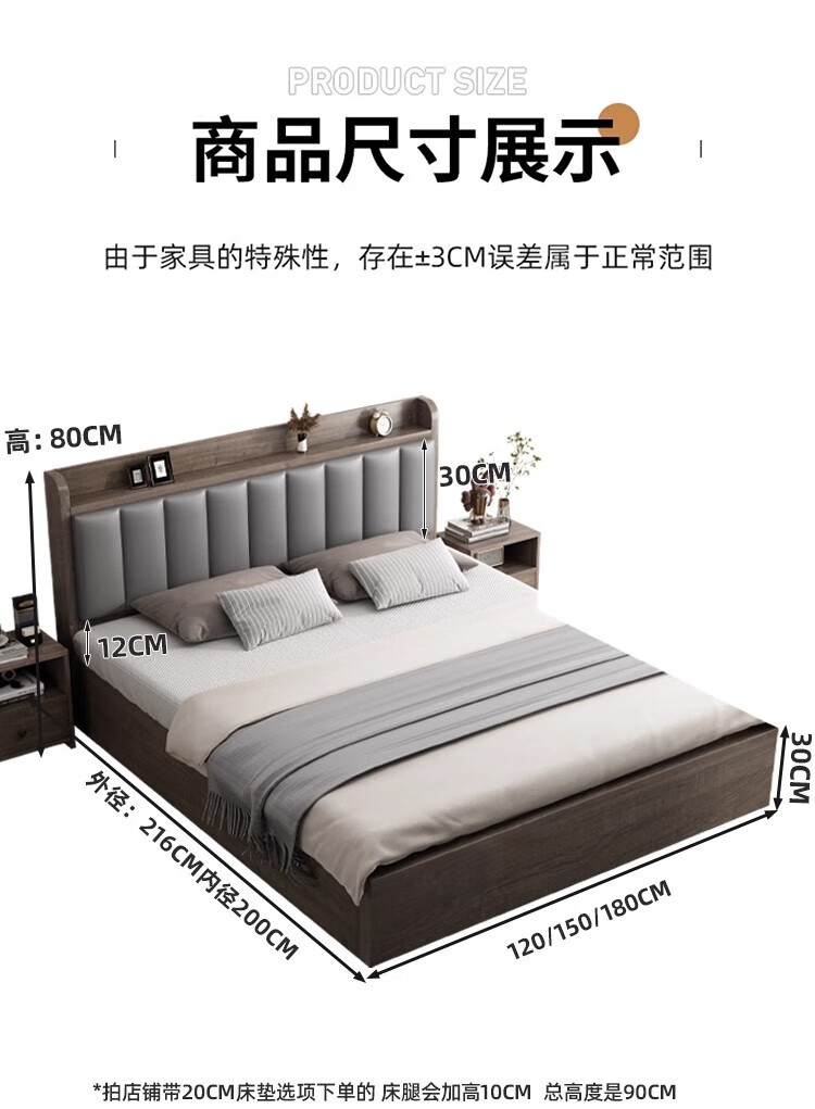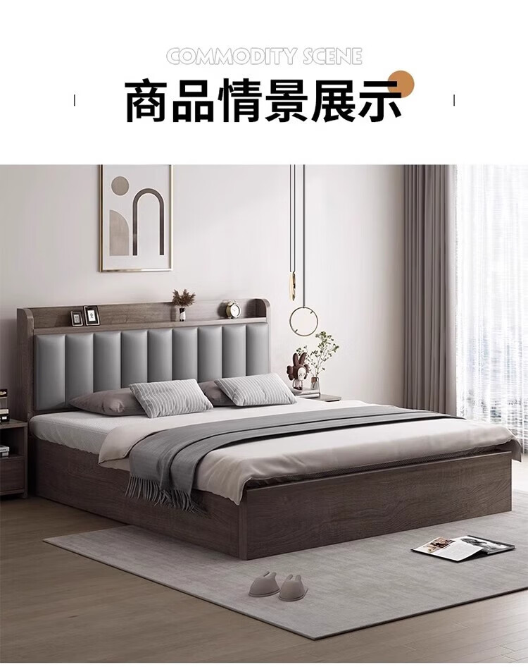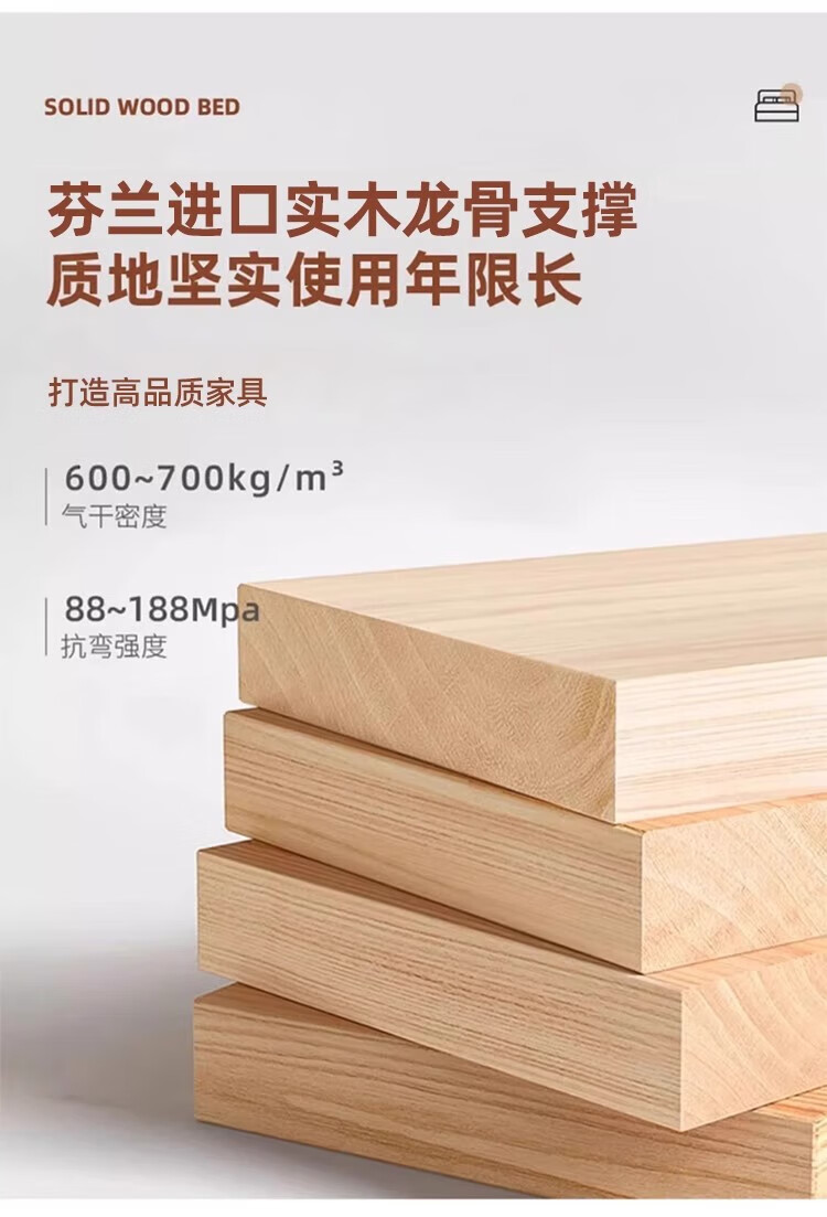 Xiaomi Sunshine Solid Wood Bed Double 1.8x2m Modern Simple Bedroom King Bed 1.5m Simple Economical 1.2m Rental House Thickened Gray Full-bed Bed Delivery Upstairs 1800mm*2000mm Box Frame Structure