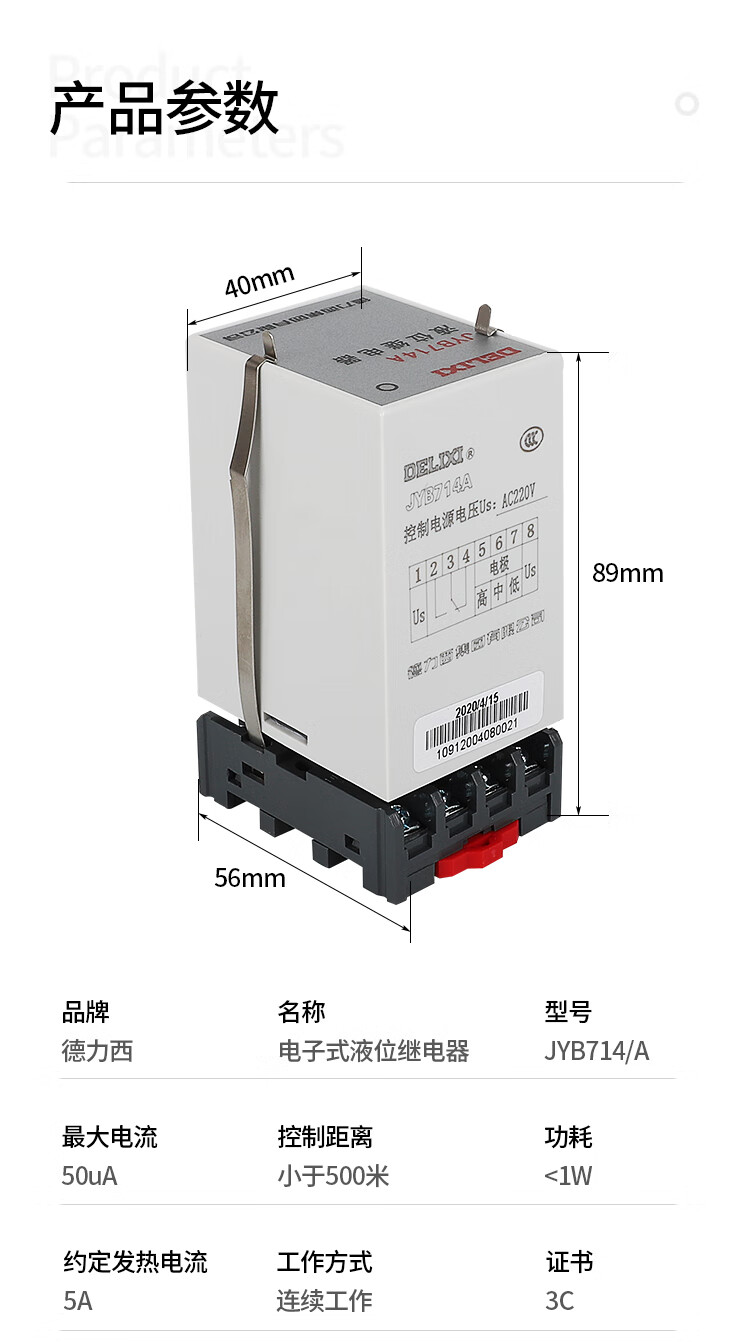 Delixi JYB714 electronic liquid level relay 380V220V AC fully automatic water level controller liquid level probe 2 meters probe