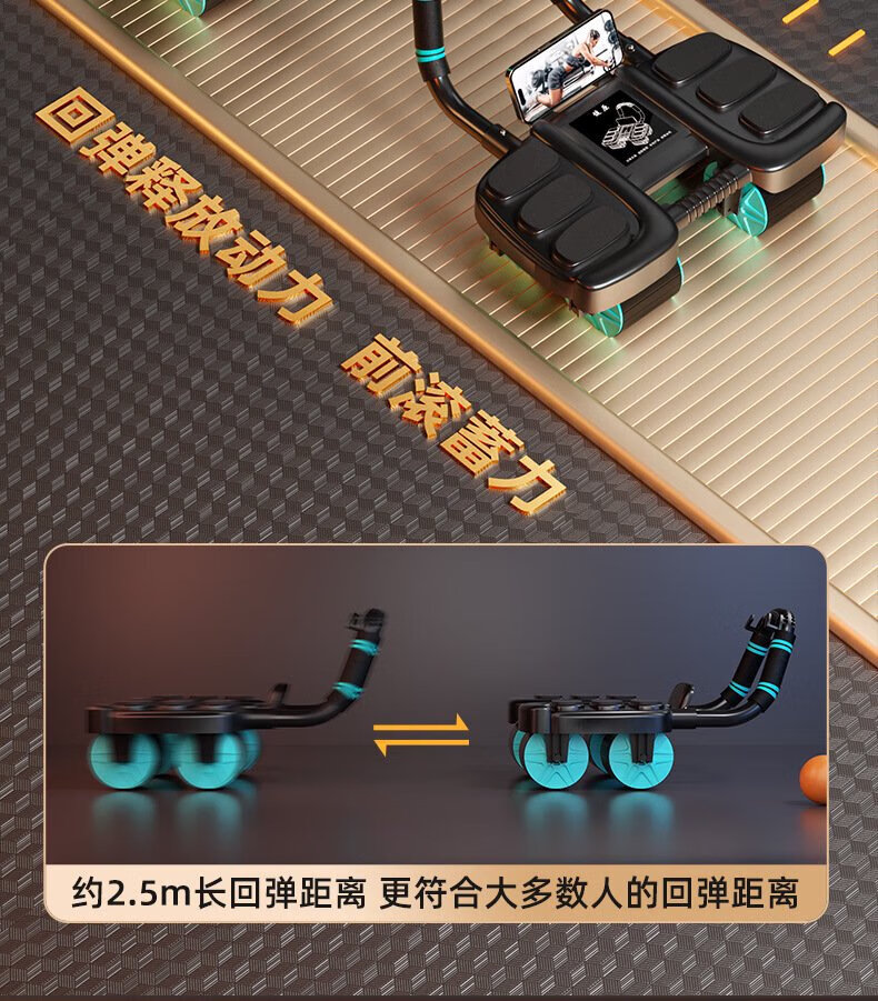 Intelligent abdominal wheel, automatic rebound, four-wheel home slimming belly roll, abdominal muscle training tool, sports fitness equipment, blue smart APP, interconnected timing and counting, six-elbow support