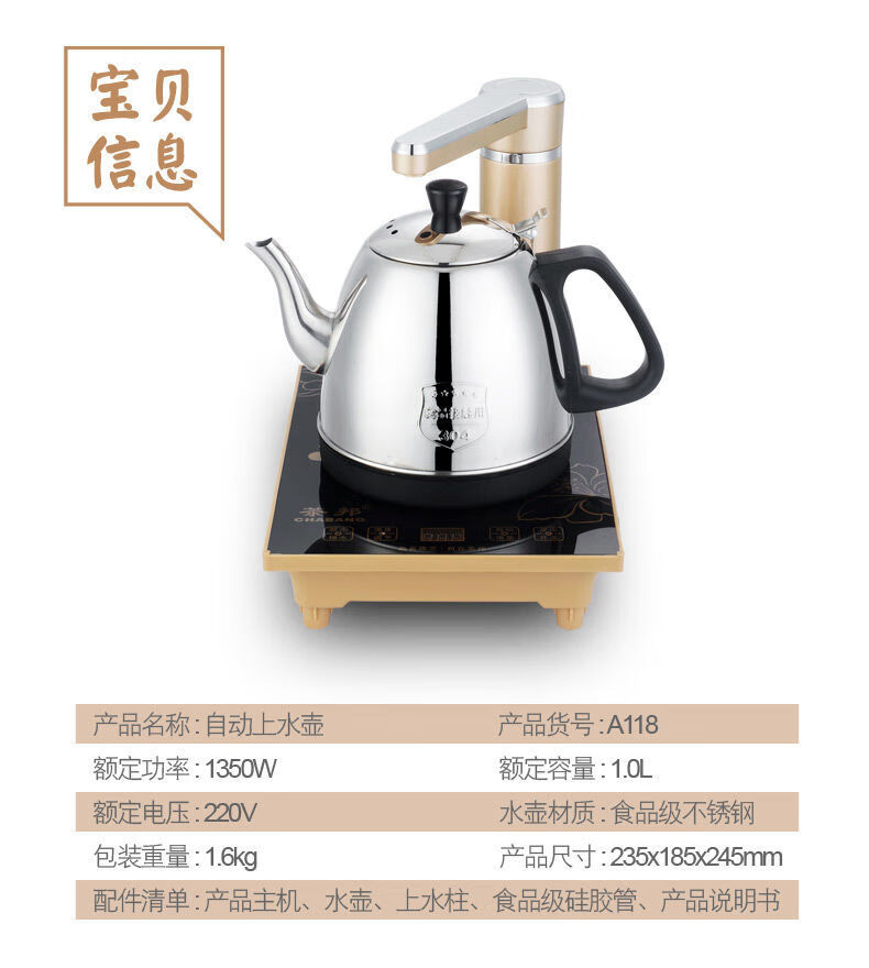 Automatic water supply household electric 304 stainless steel kettle small tea stove 1ml A118 black semi-automatic 201 stainless steel