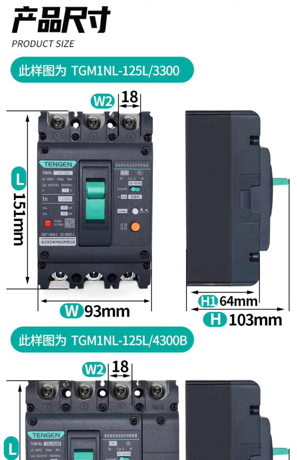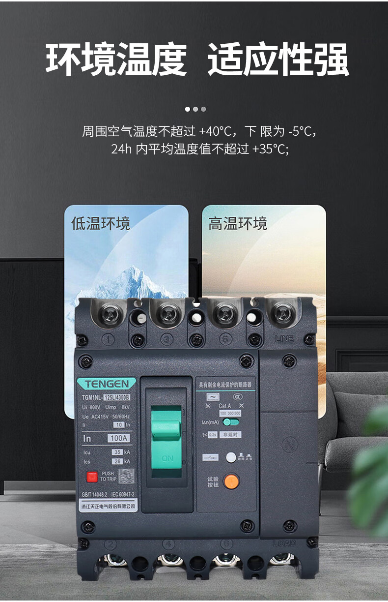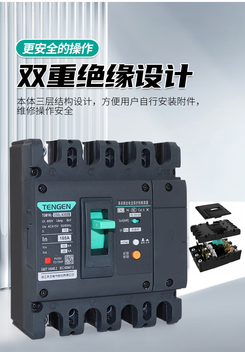 Tianzheng Electric Tianzheng plastic case leakage protection circuit breaker 100A250400A leakage protection switch 4P three-phase four-wire 380 4300B4P 100A