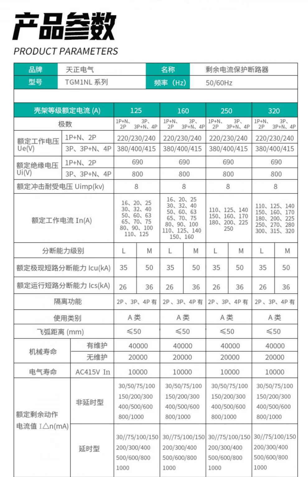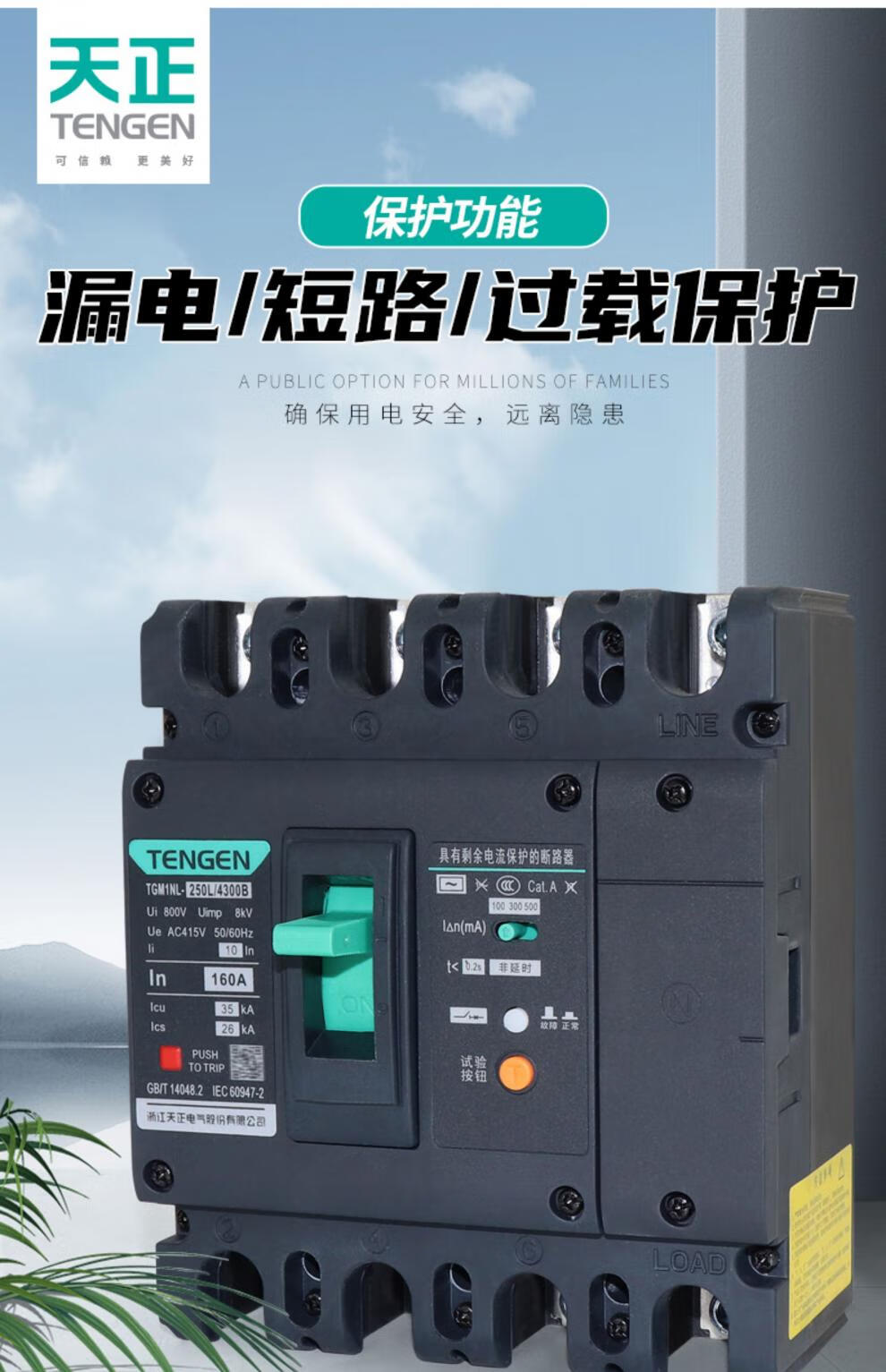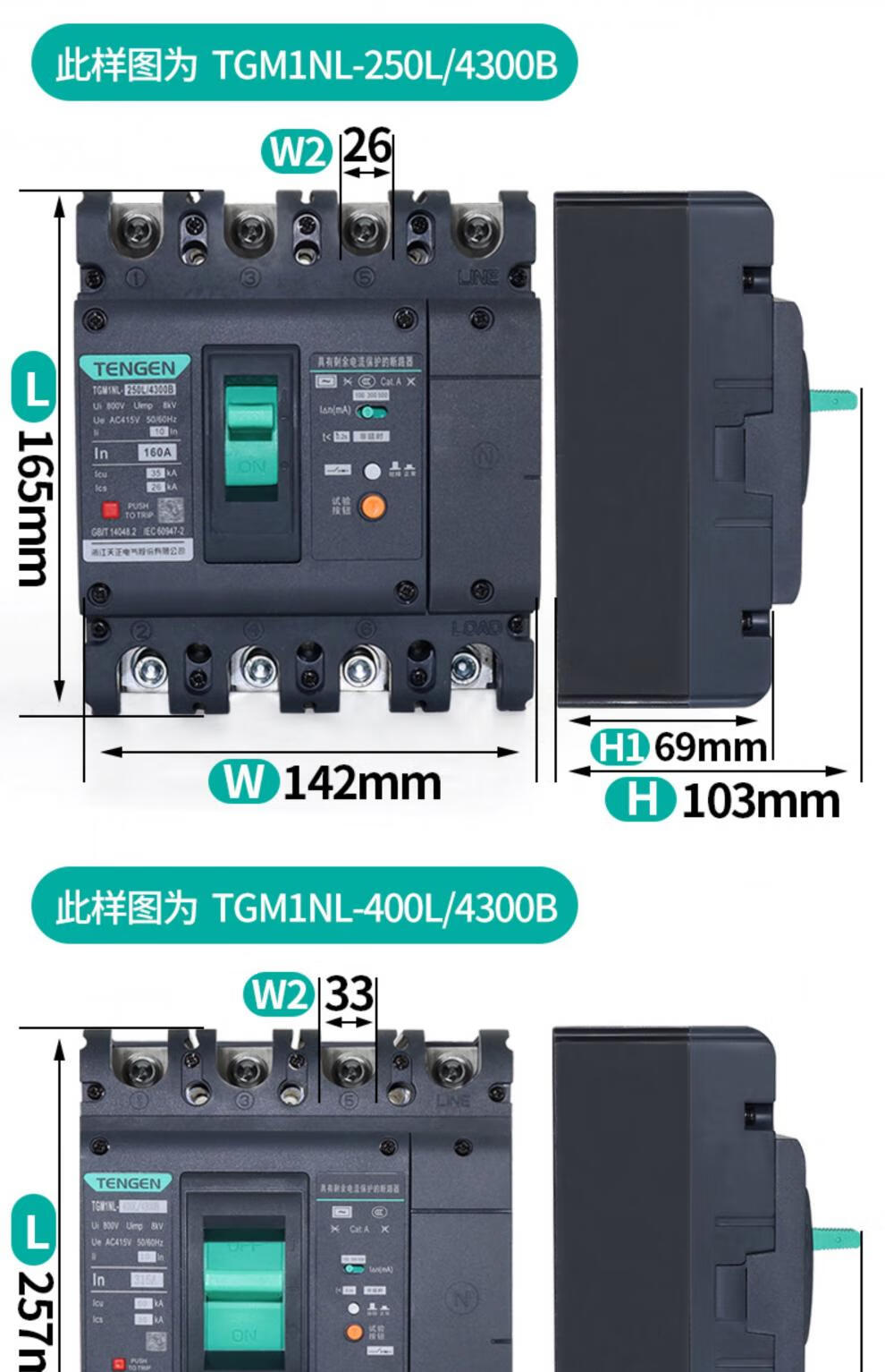 Tianzheng Electric Tianzheng plastic case leakage protection circuit breaker 100A250400A leakage protection switch 4P three-phase four-wire 380 4300B4P 100A