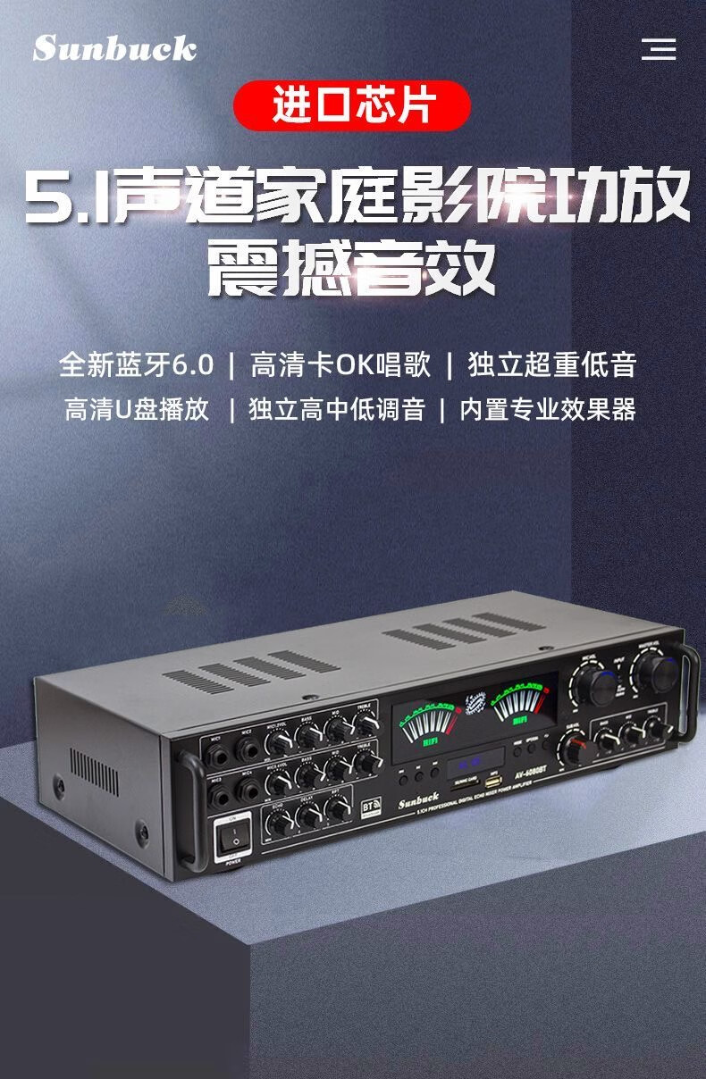 Shanyu SUNBUCK new 5.1 channel Bluetooth 6.0 AV amplifier home theater grade fiber optic coaxial decoding U disk SD card playback amplifier player 6080-5.1 theater amplifier