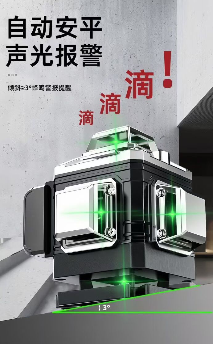 Chuangxinzhiguang infrared level meter high-precision strong light laser water level meter 12 lines automatic leveling for outdoor use white first-line brand green light 8 lines Yidian without accessories