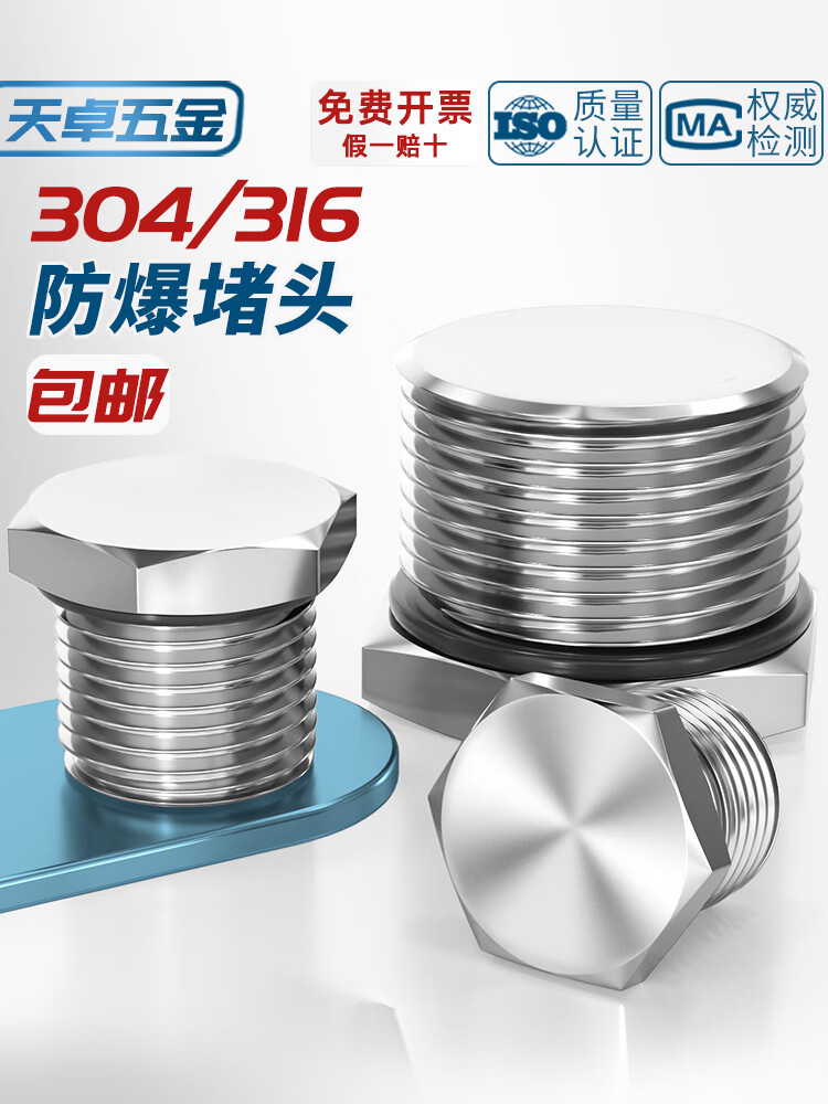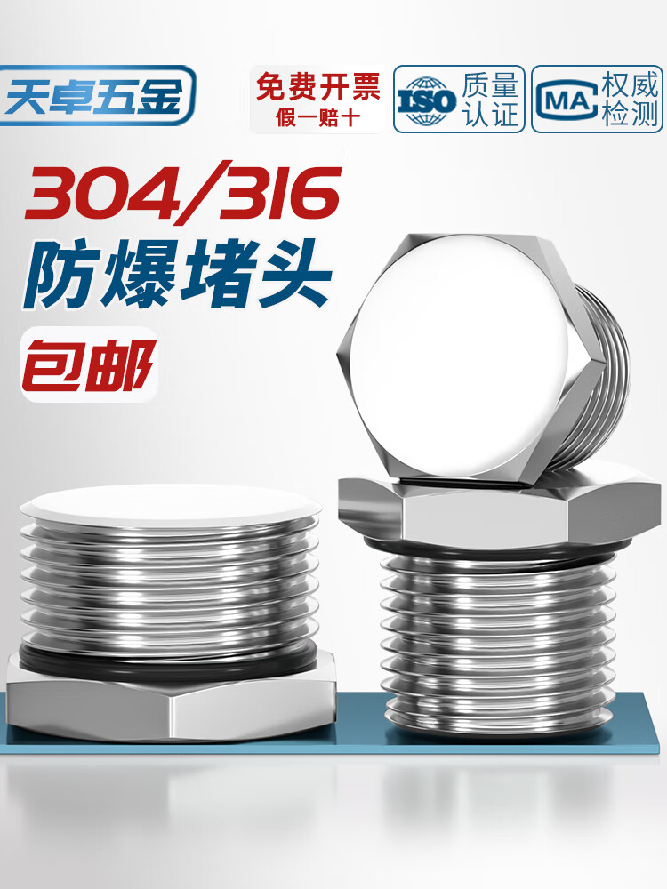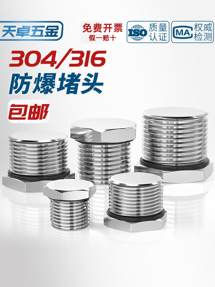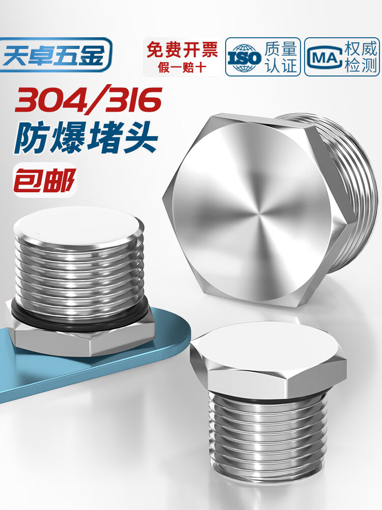 Tianzhuo Hardware 304 stainless steel external thread plug M-G-NPT metal solid joint explosion-proof waterproof dustproof plug cover G1/2 (4 points DN15) 304 material