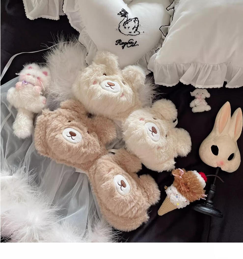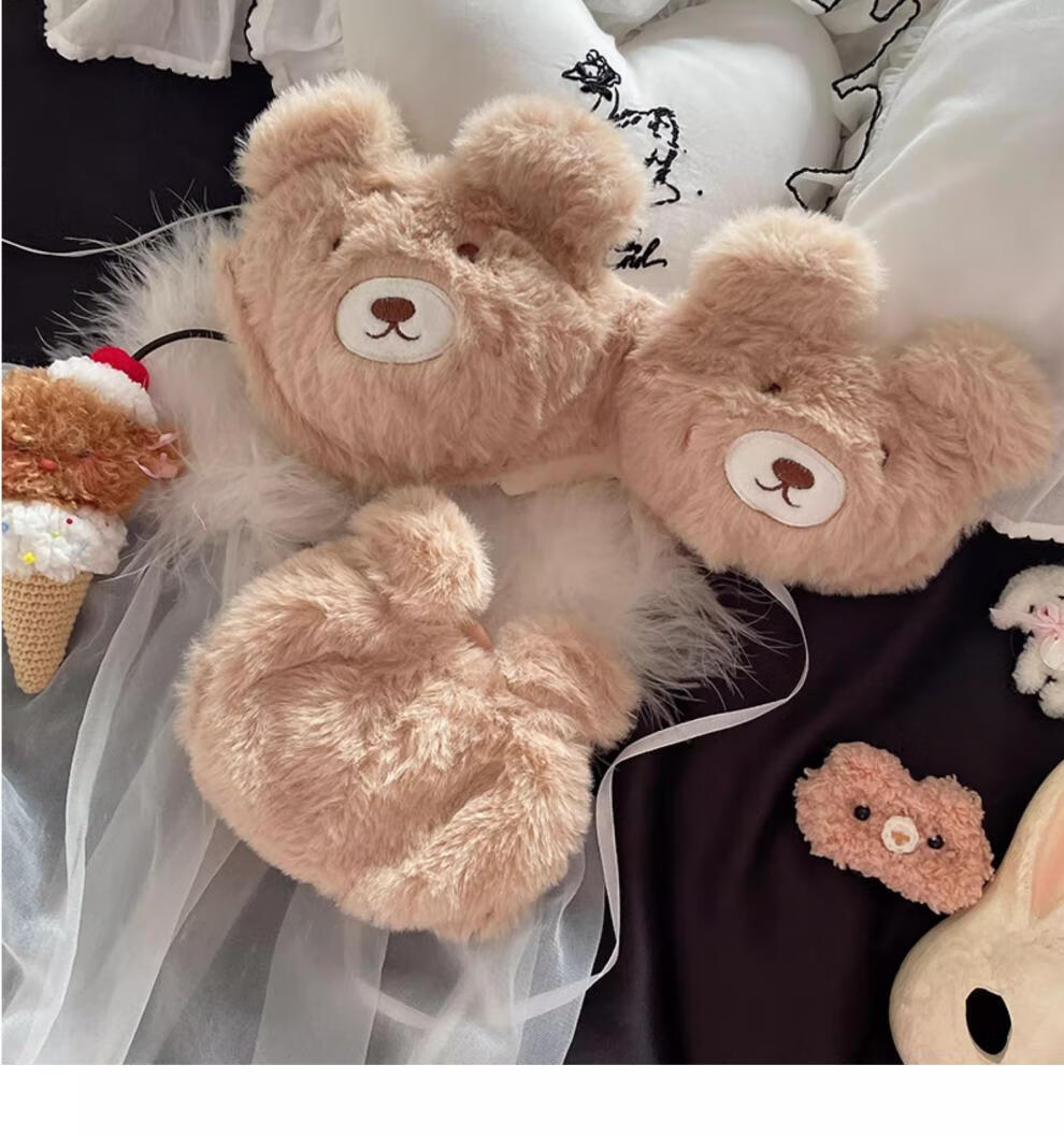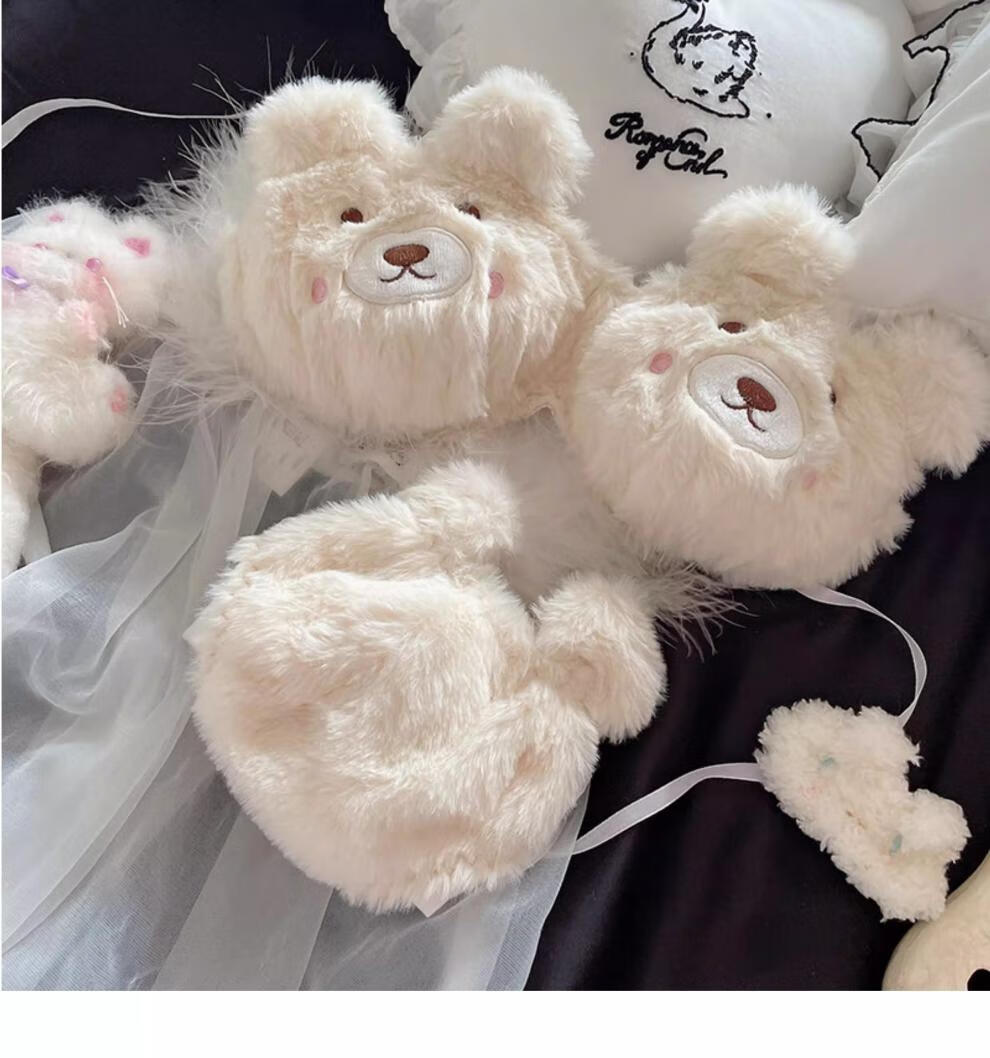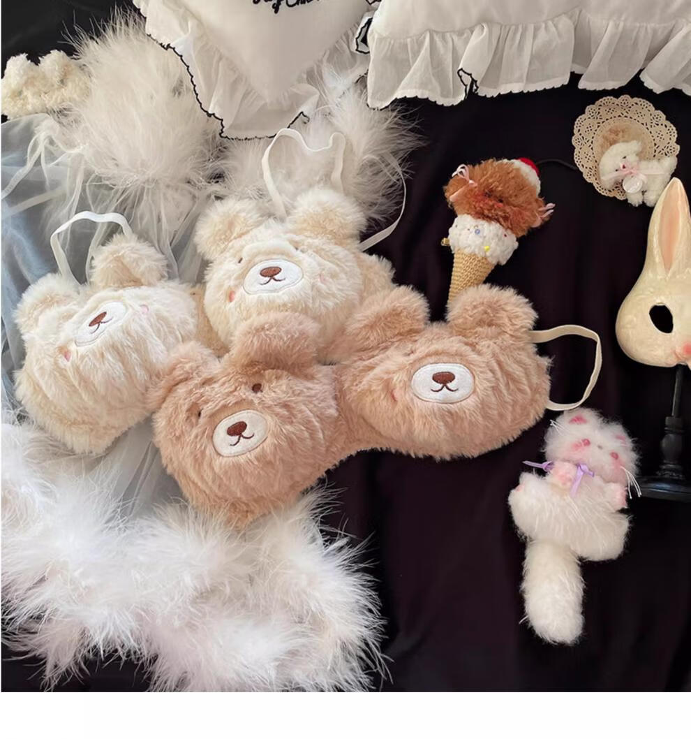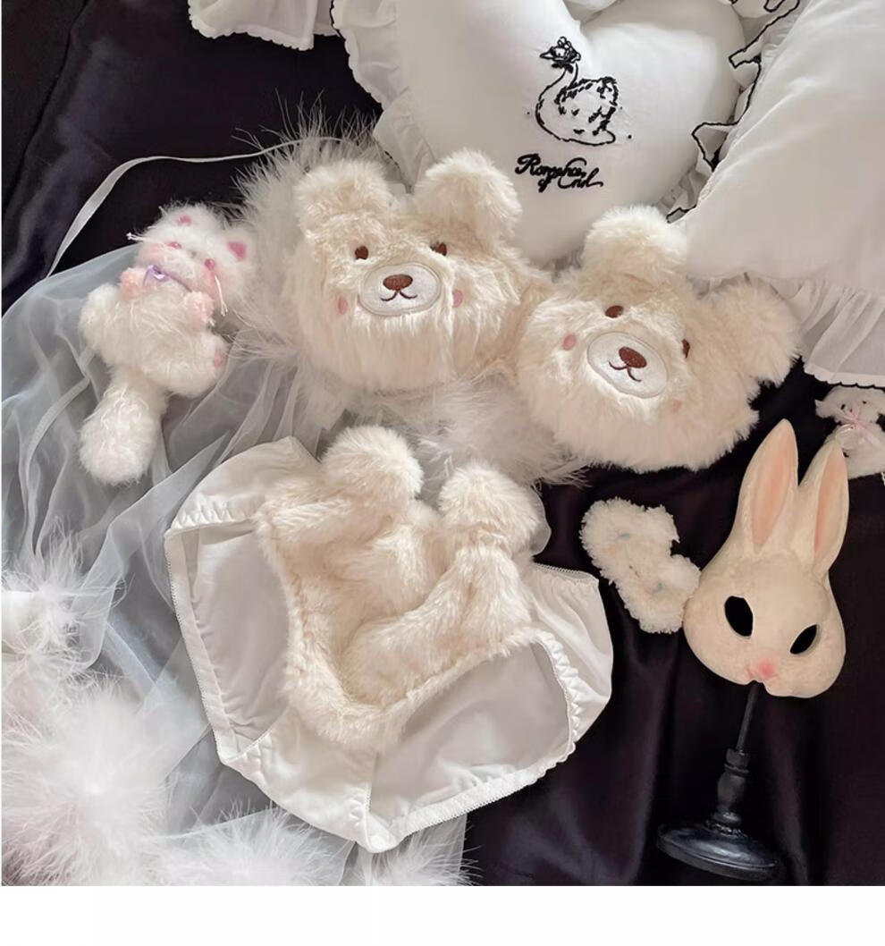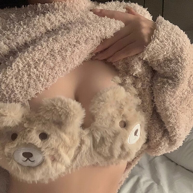 Yalu Japanese Love Bear Pure Desire Plush Underwear Set Autumn and Winter Comfortable Wireless College Student Bra Set Xiaoka Bear Underwear M Suitable for 34ABC