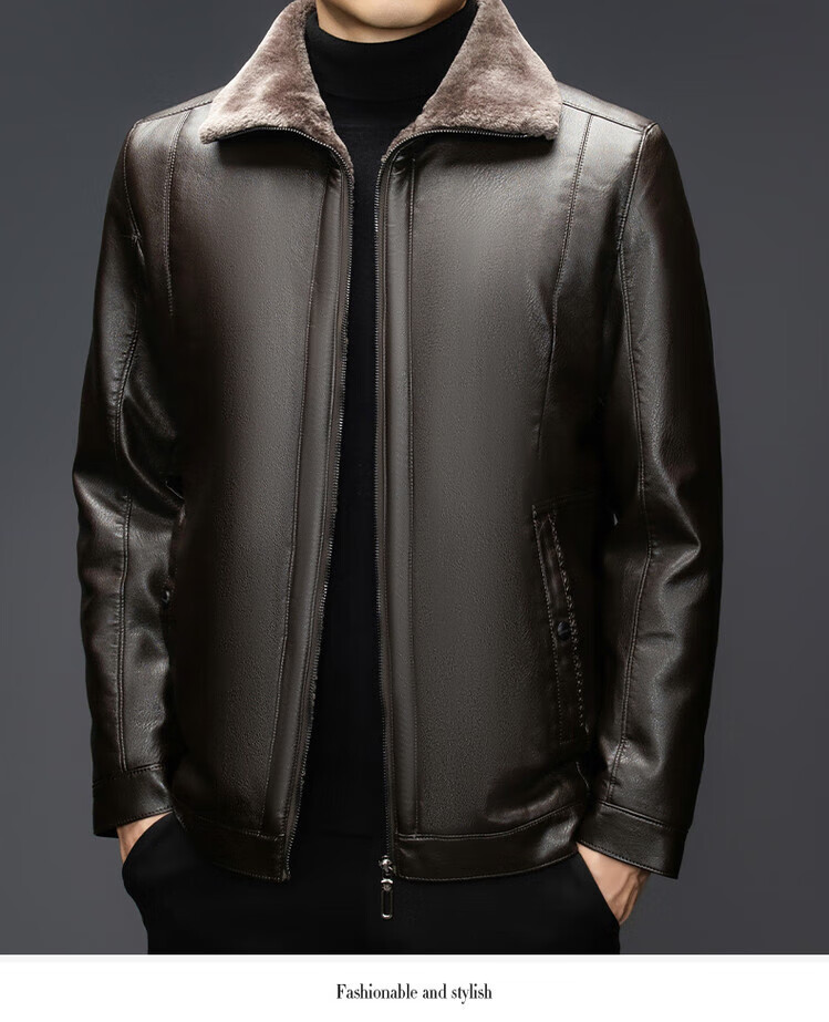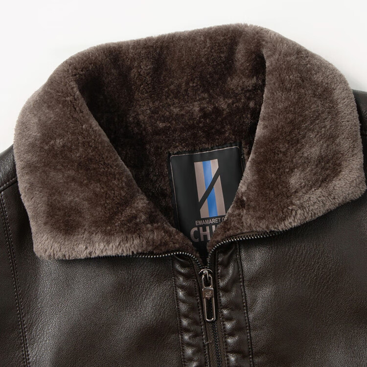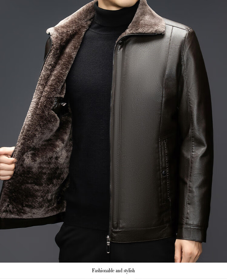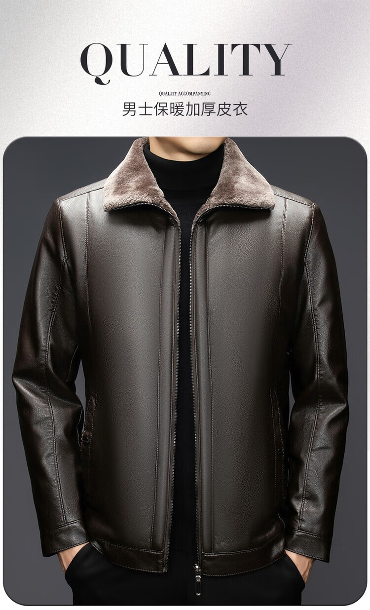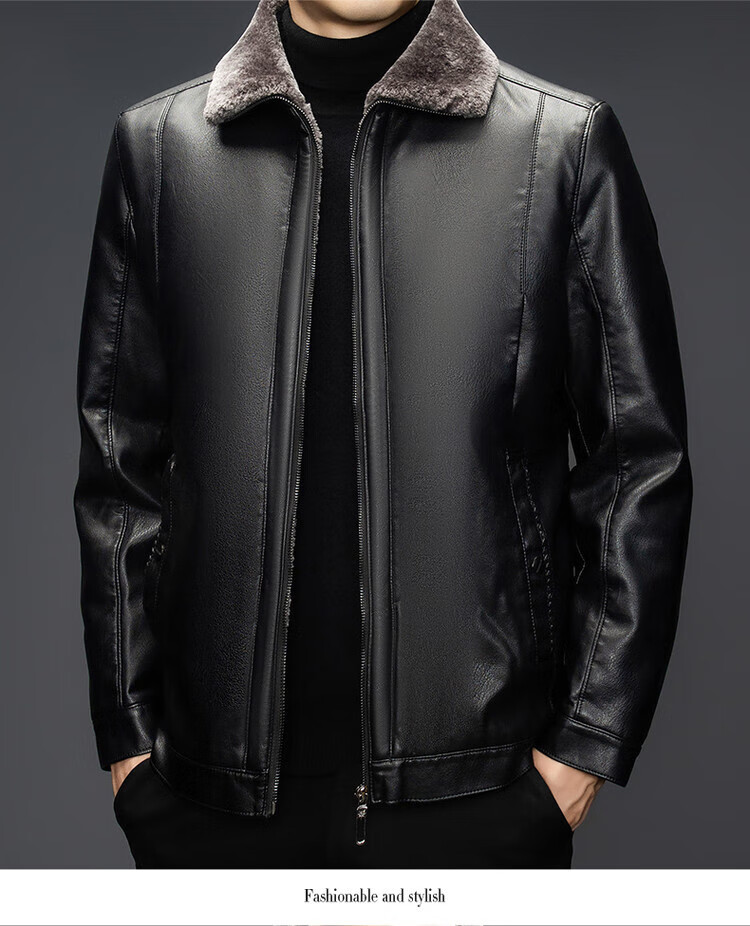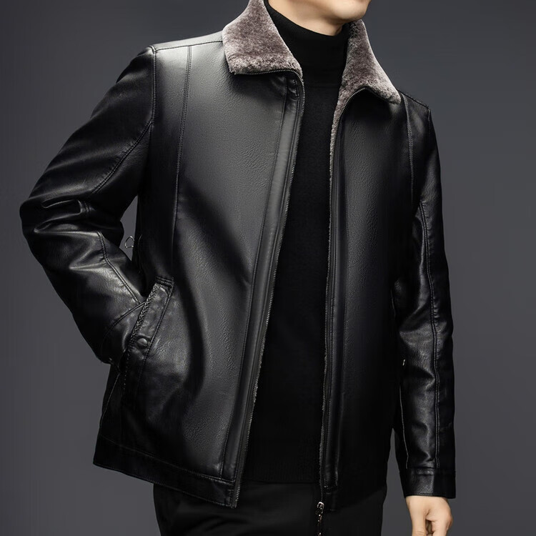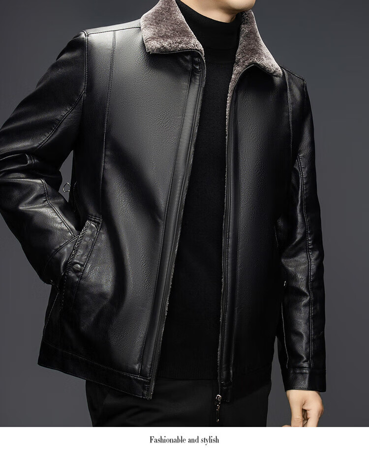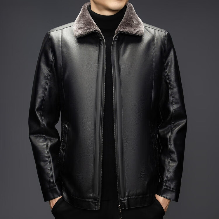 The same leather jacket for men in winter plus velvet and thickened lamb fur all-in-one leather jacket for men black 3XL 190