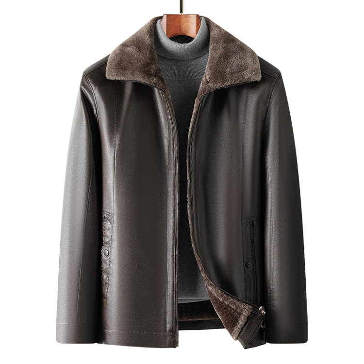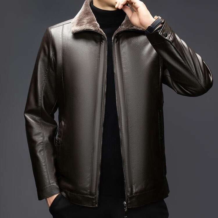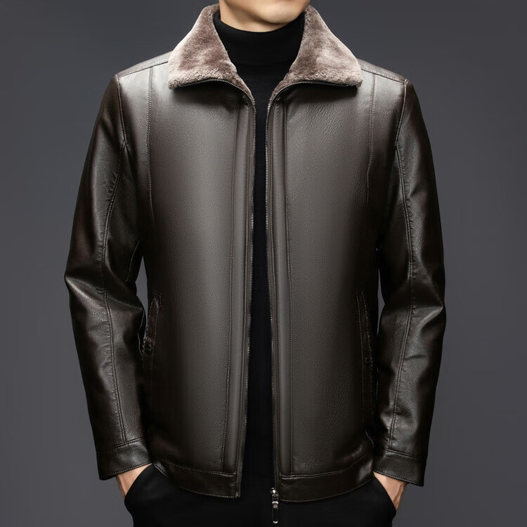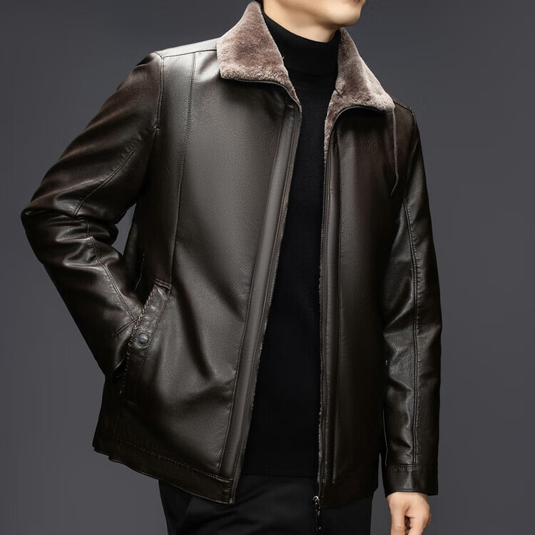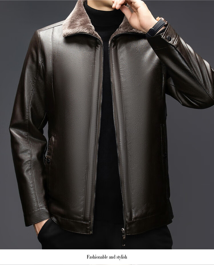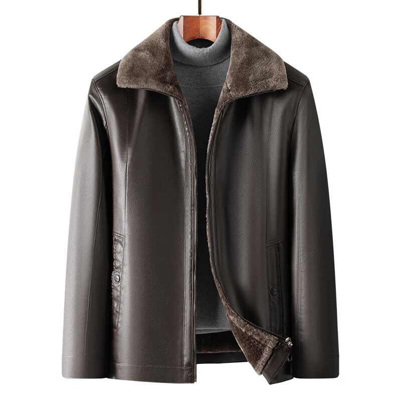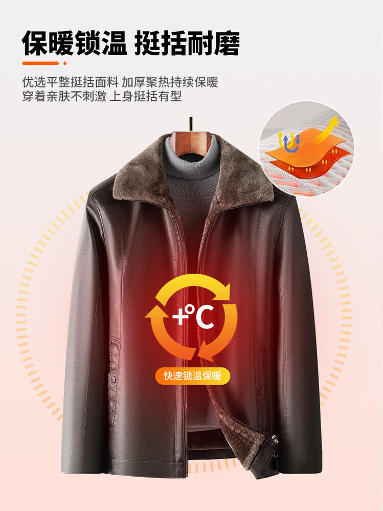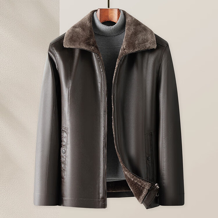 The same leather jacket for men in winter plus velvet and thickened lamb fur all-in-one leather jacket for men black 3XL 190