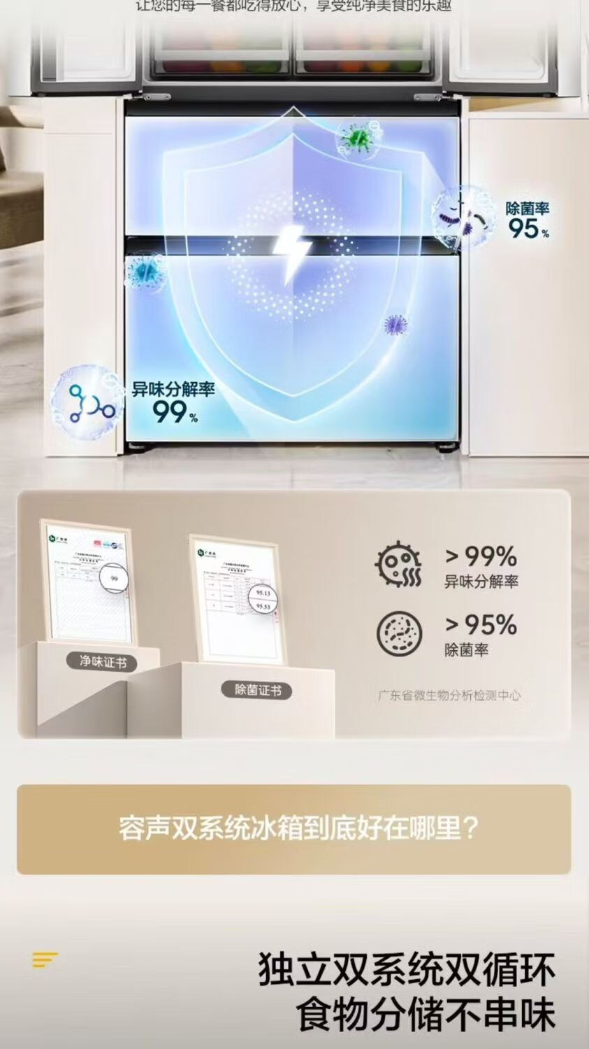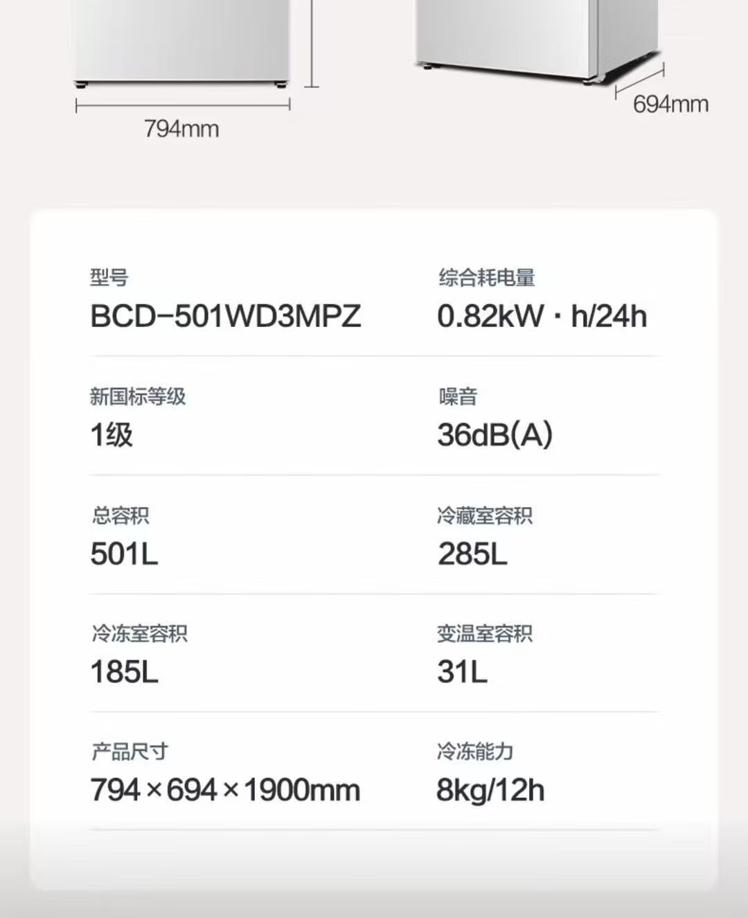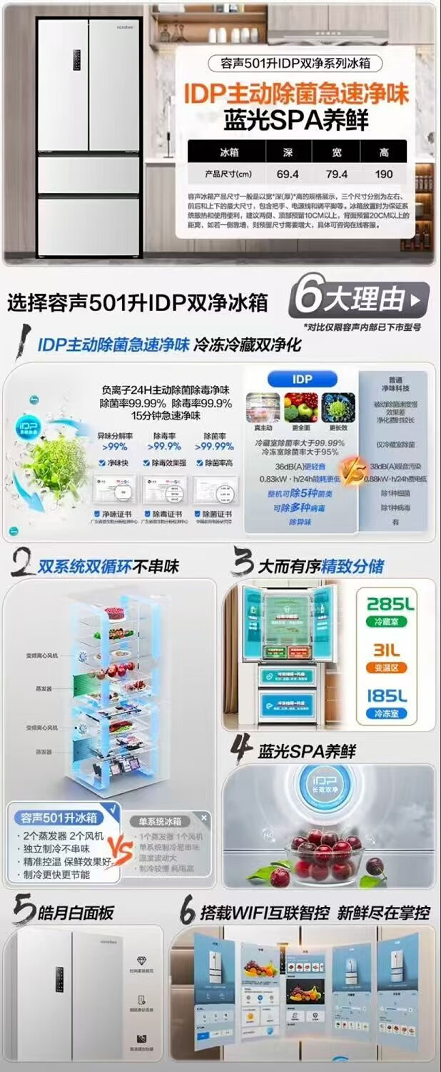 Rongsheng grade machine | Rongsheng 501 liter pro French door refrigerator IDP active sterilization blue light dual system dual cycle white BCD-501WD3MPZ almost flawless
