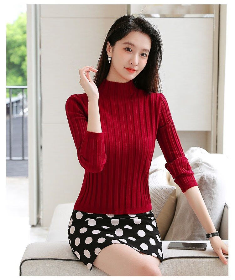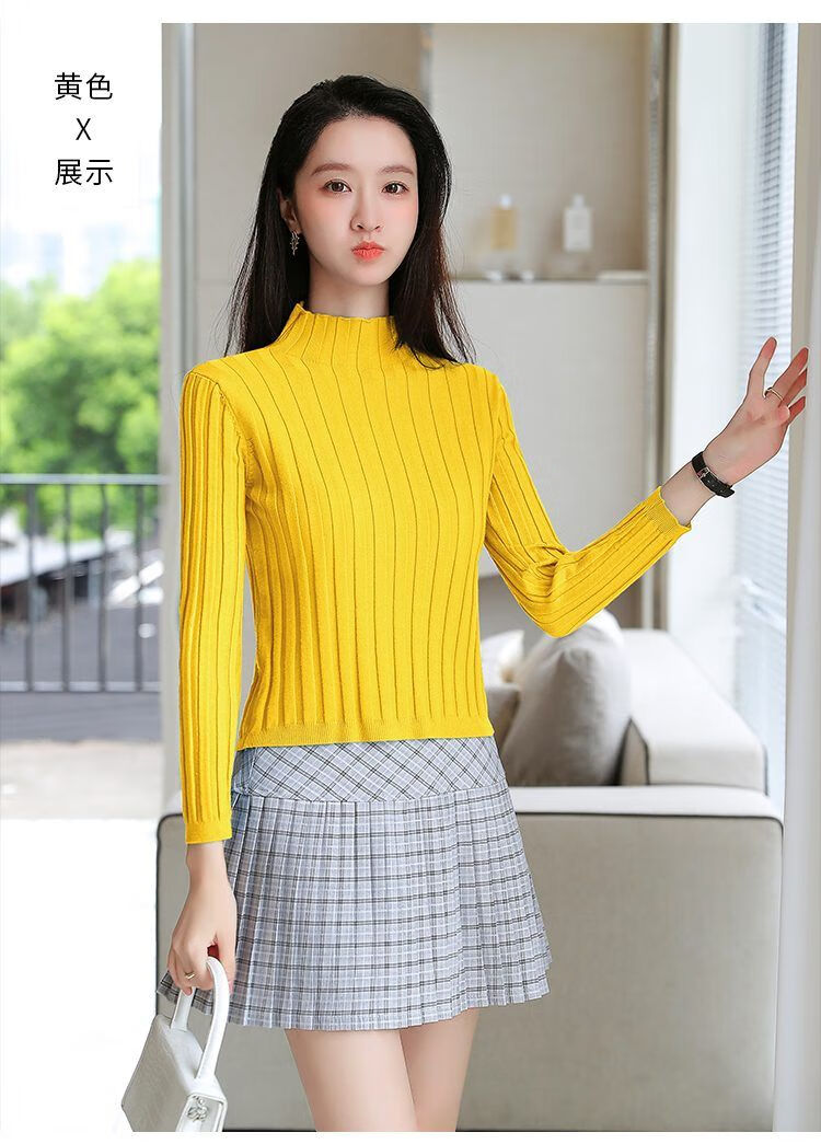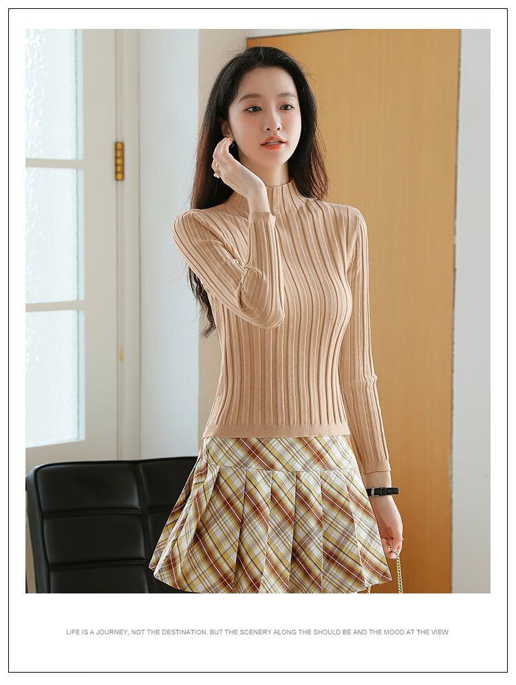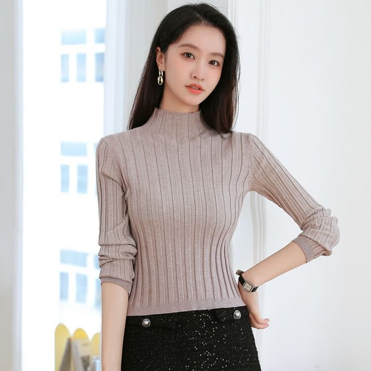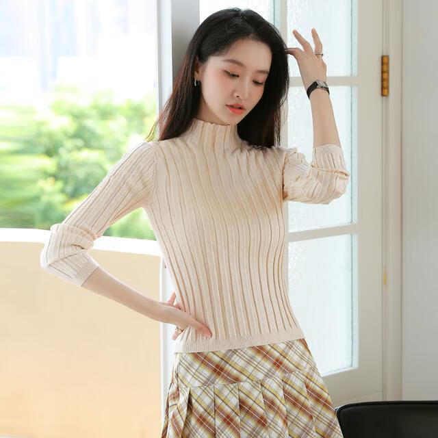 Pierre Cardin simple half turtleneck sweater women's pullover sweater autumn and winter new solid color bottoming shirt long-sleeved inner sweater top apricot XL