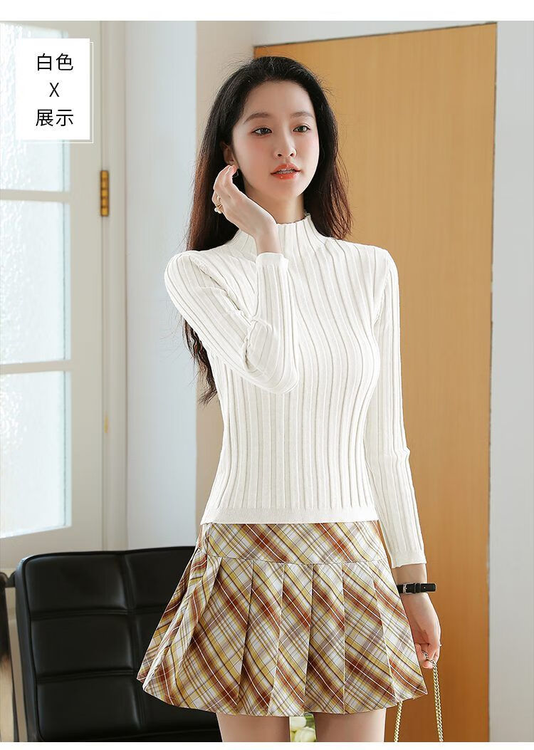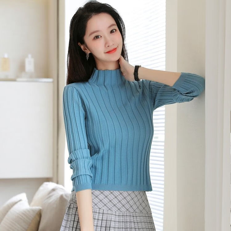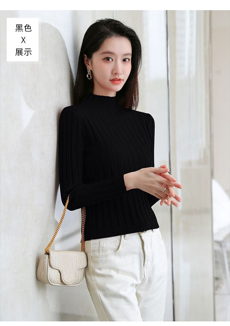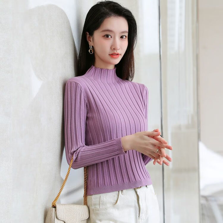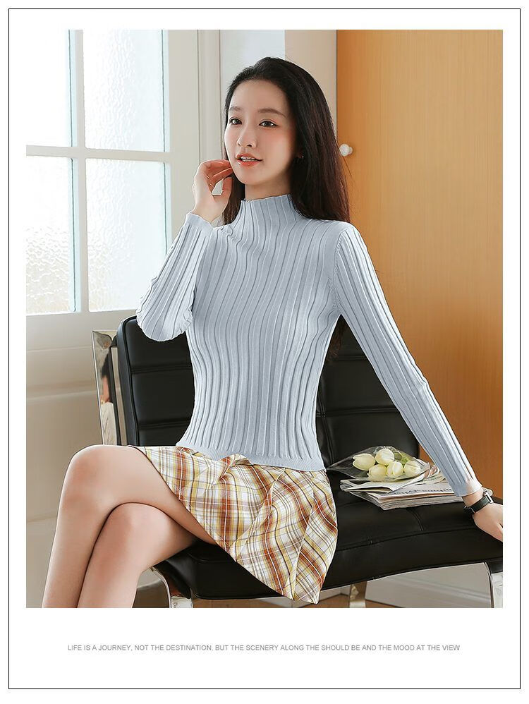 Pierre Cardin simple half turtleneck sweater women's pullover sweater autumn and winter new solid color bottoming shirt long-sleeved inner sweater top apricot XL
