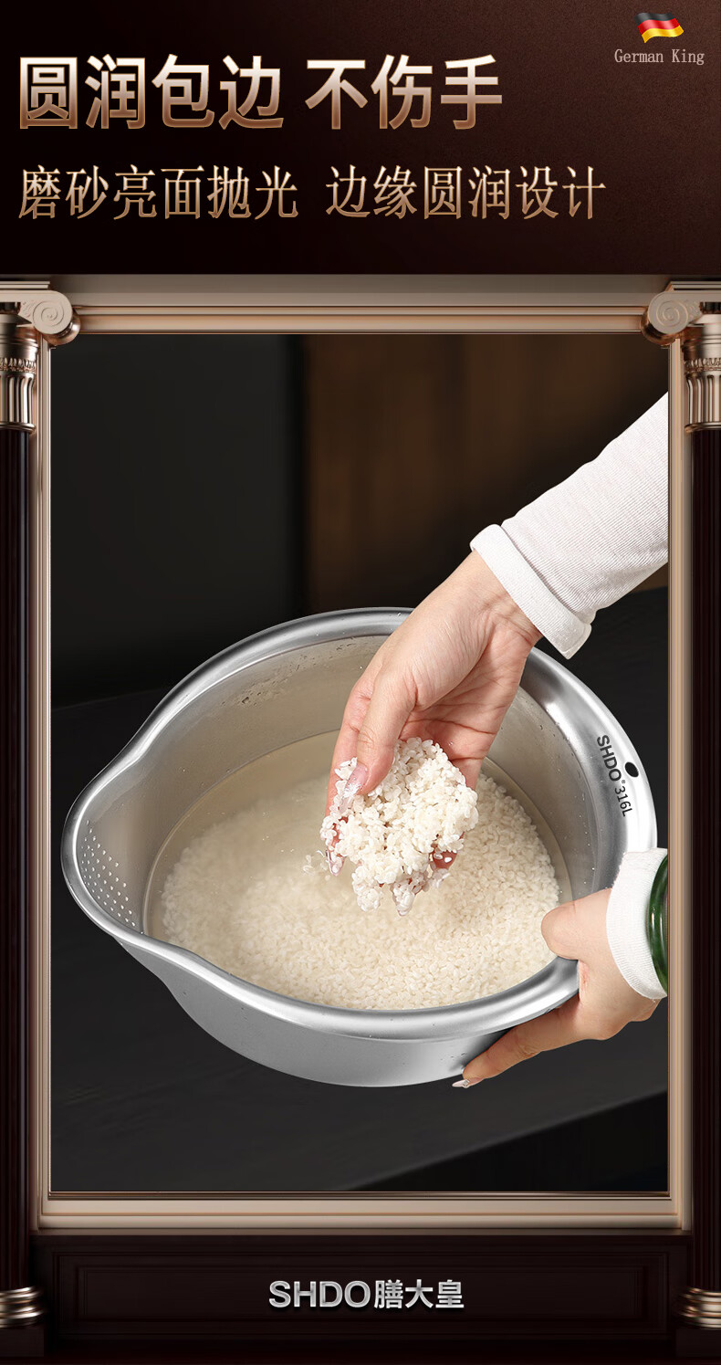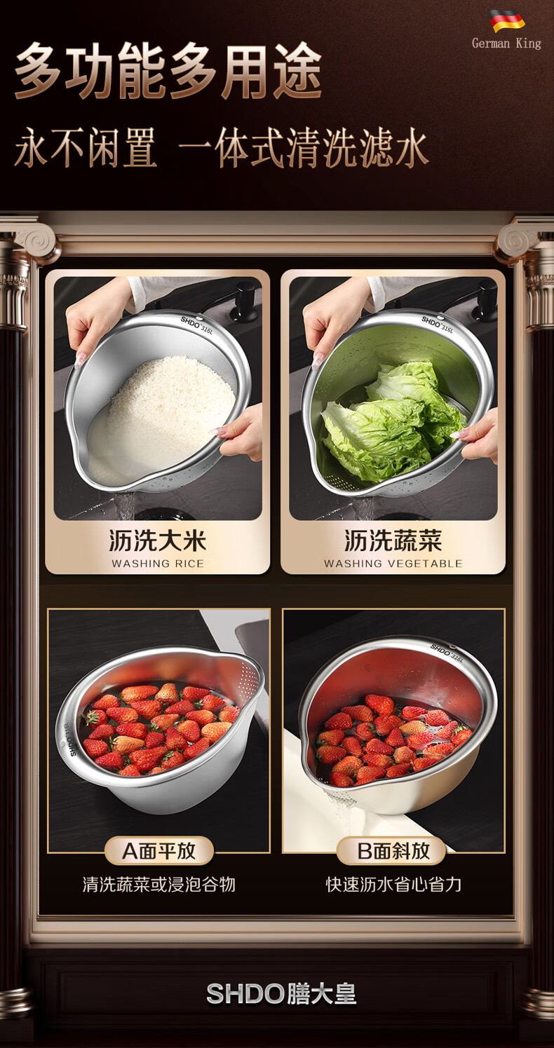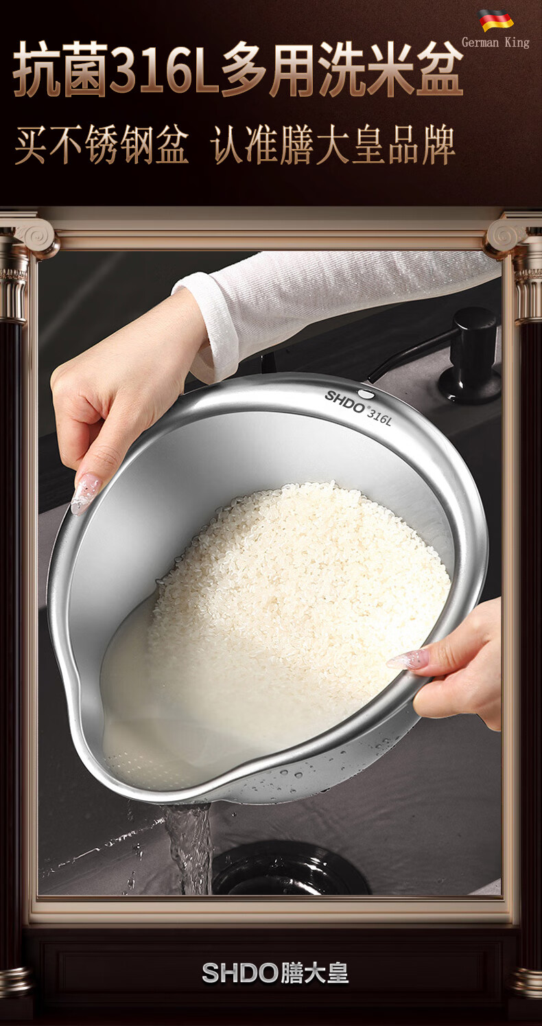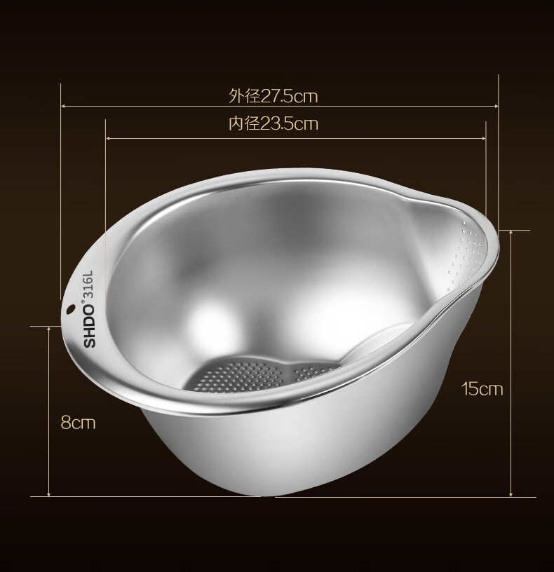 Shanda Huang (SHDO) German 316 stainless steel drain basket rice basin household drain basin rice cleaning artifact dishwashing basin antibacterial 316L 27.5cm 2 pieces with hooks