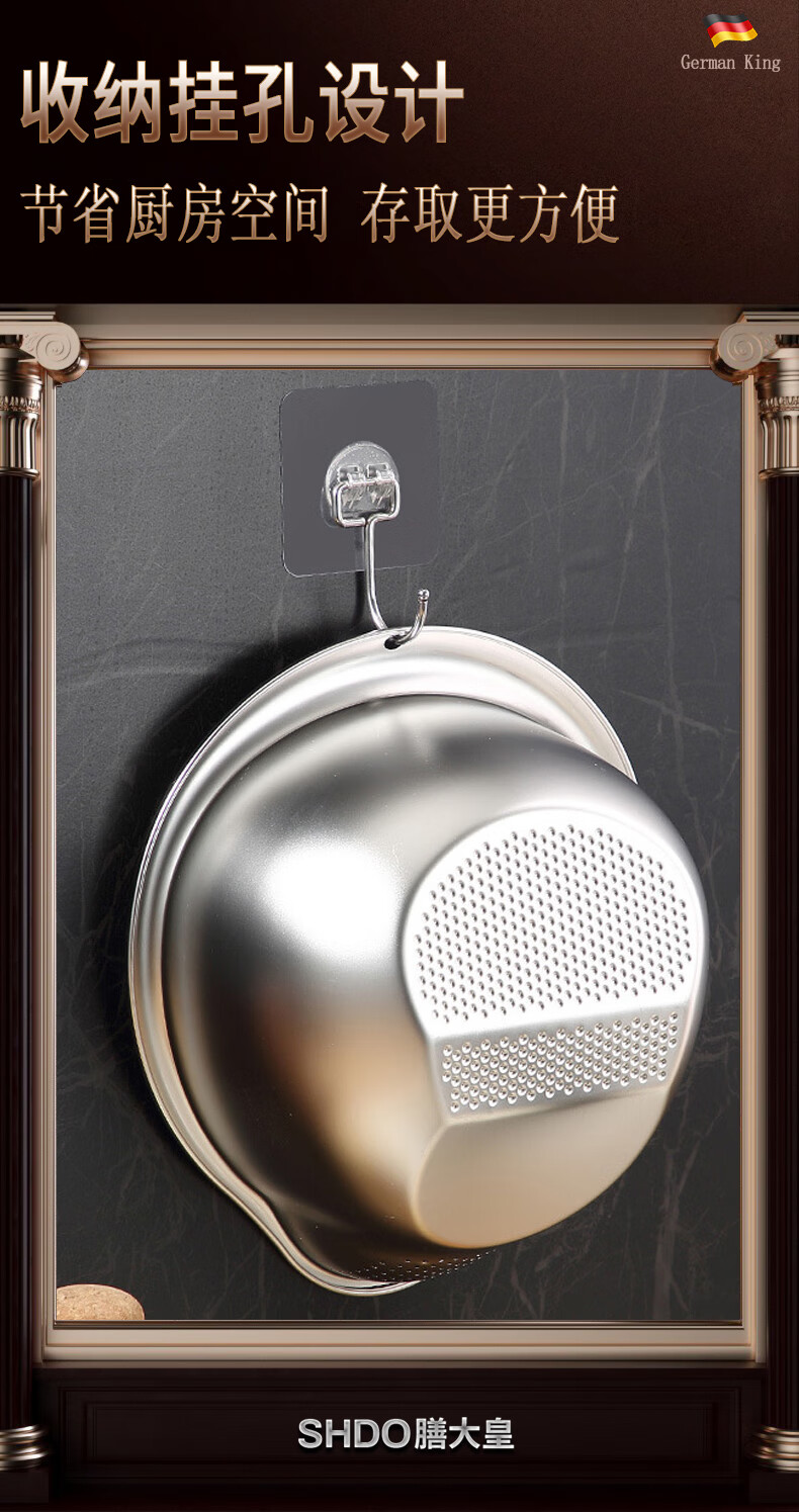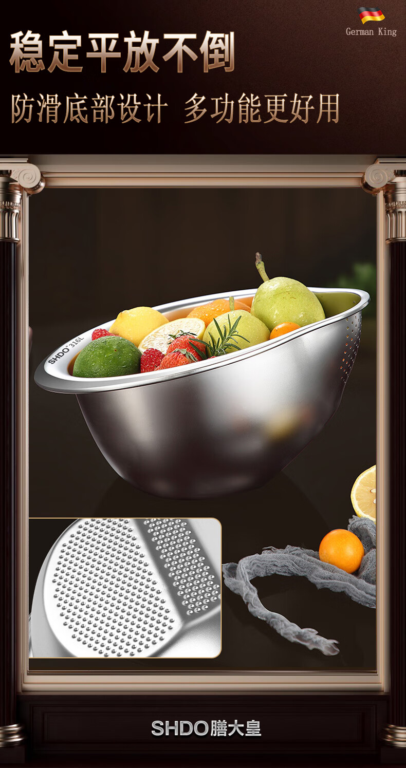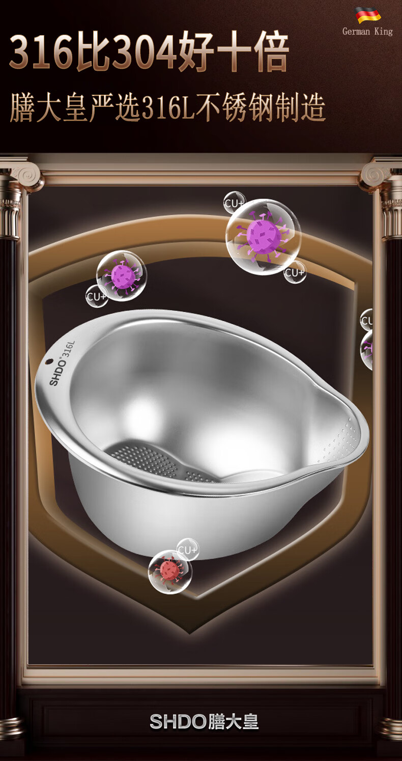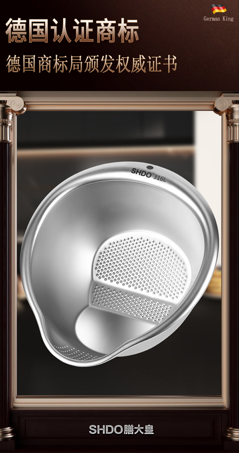 Shanda Huang (SHDO) German 316 stainless steel drain basket rice basin household drain basin rice cleaning artifact dishwashing basin antibacterial 316L 27.5cm 2 pieces with hooks