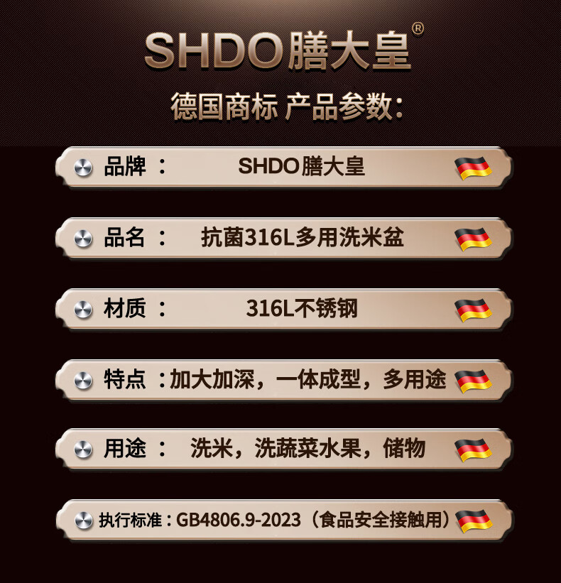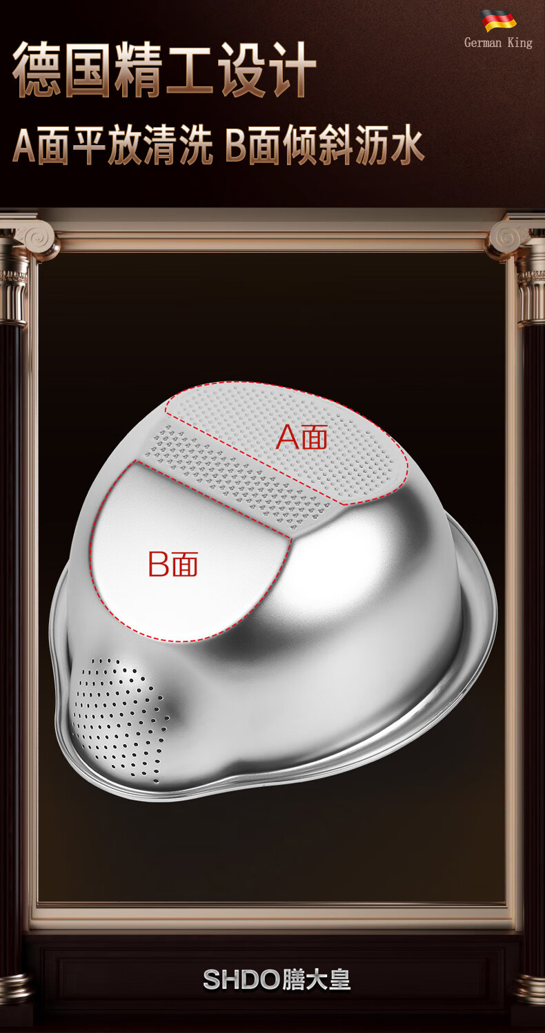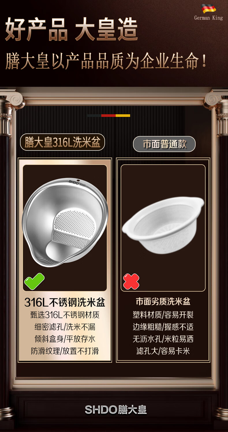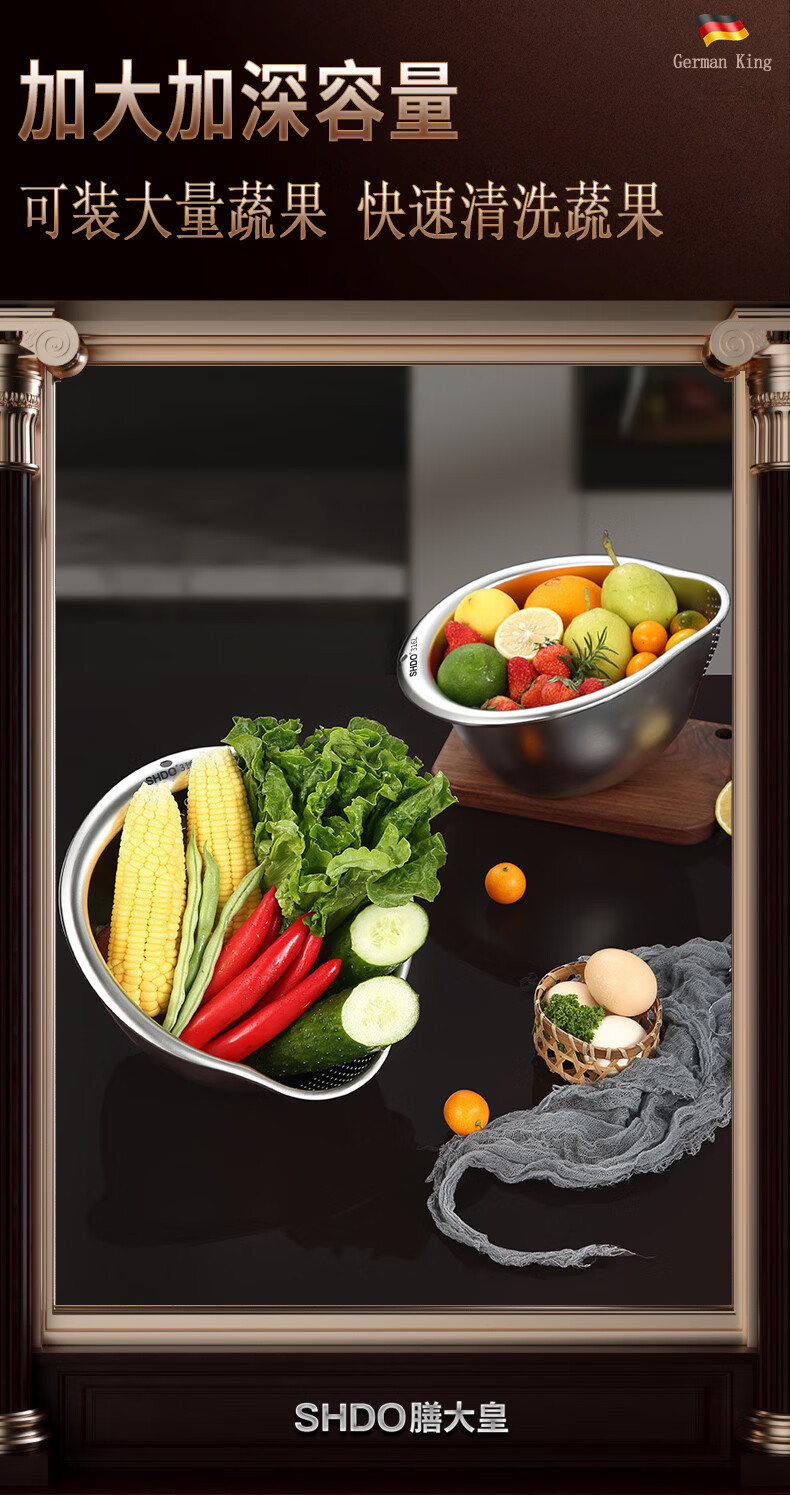 Shanda Huang (SHDO) German 316 stainless steel drain basket rice basin household drain basin rice cleaning artifact dishwashing basin antibacterial 316L 27.5cm 2 pieces with hooks