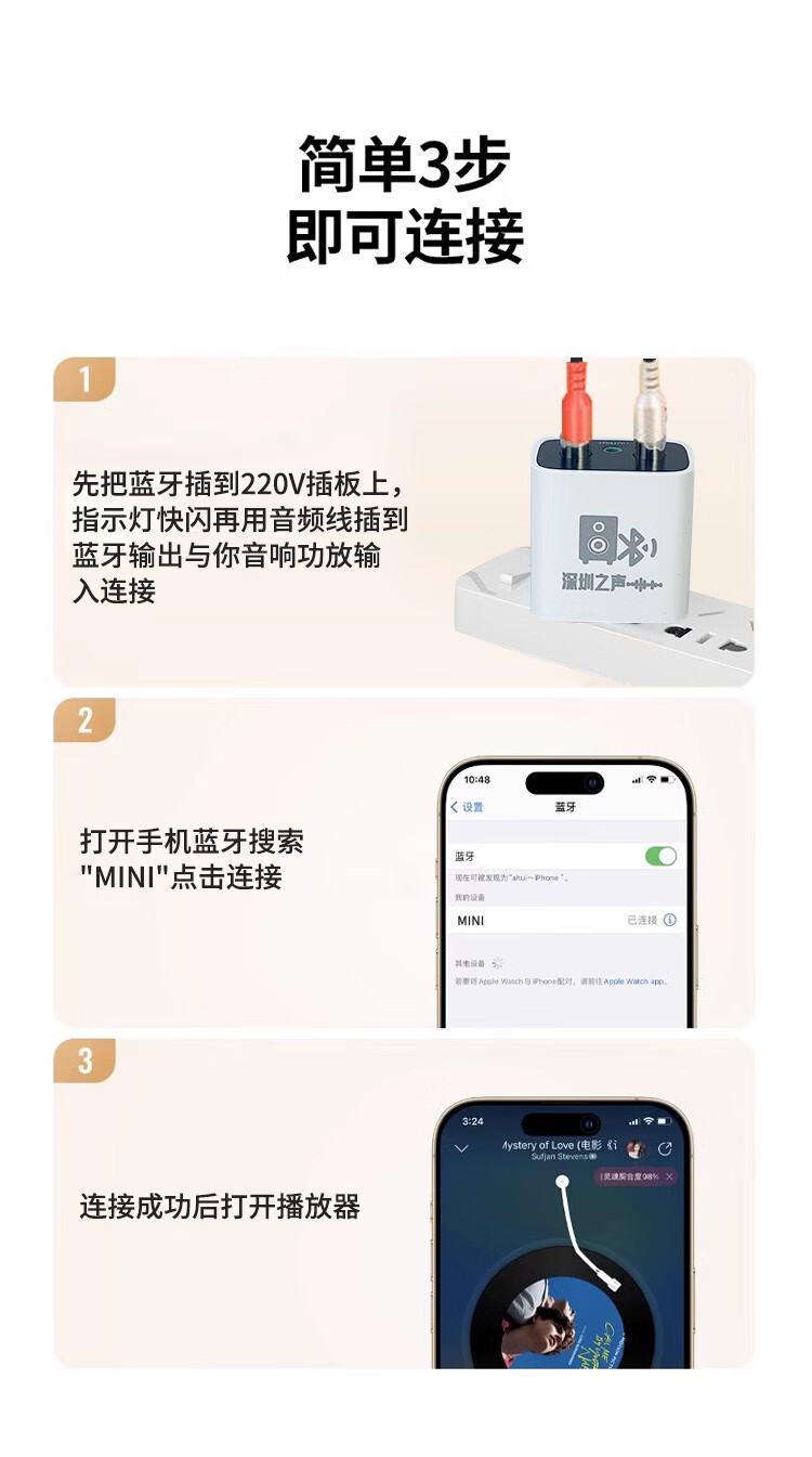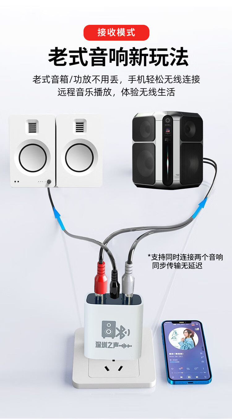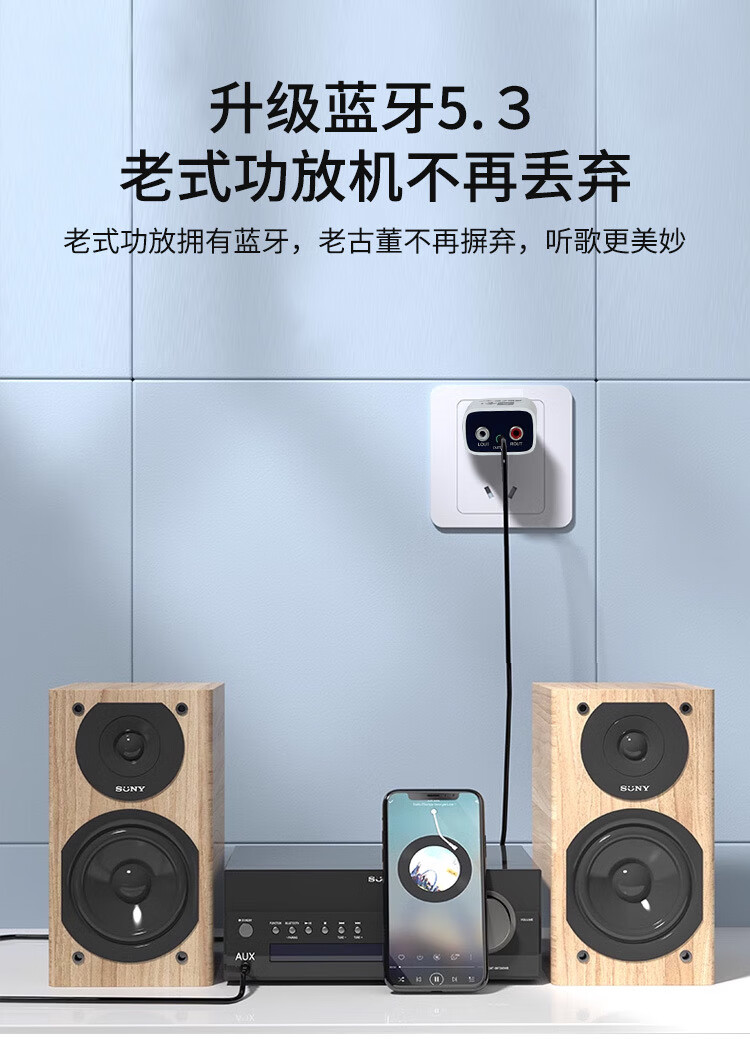 The other half (Other Half) audio Bluetooth receiver 5.3 adapter to audio amplifier stereo distortion-free HIFI wireless module modification Bluetooth audio receiver host with 1.5m one-to-two audio input cable